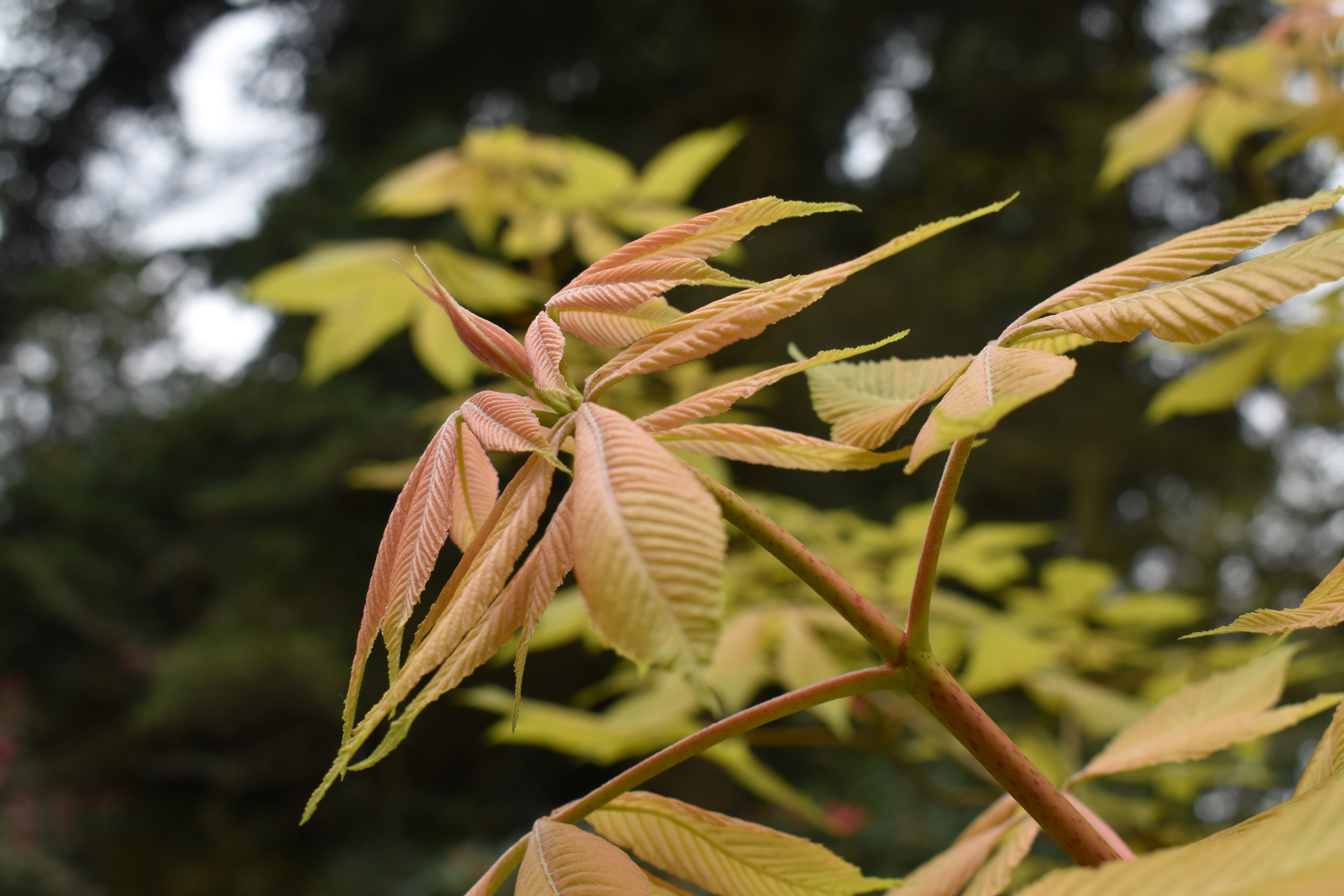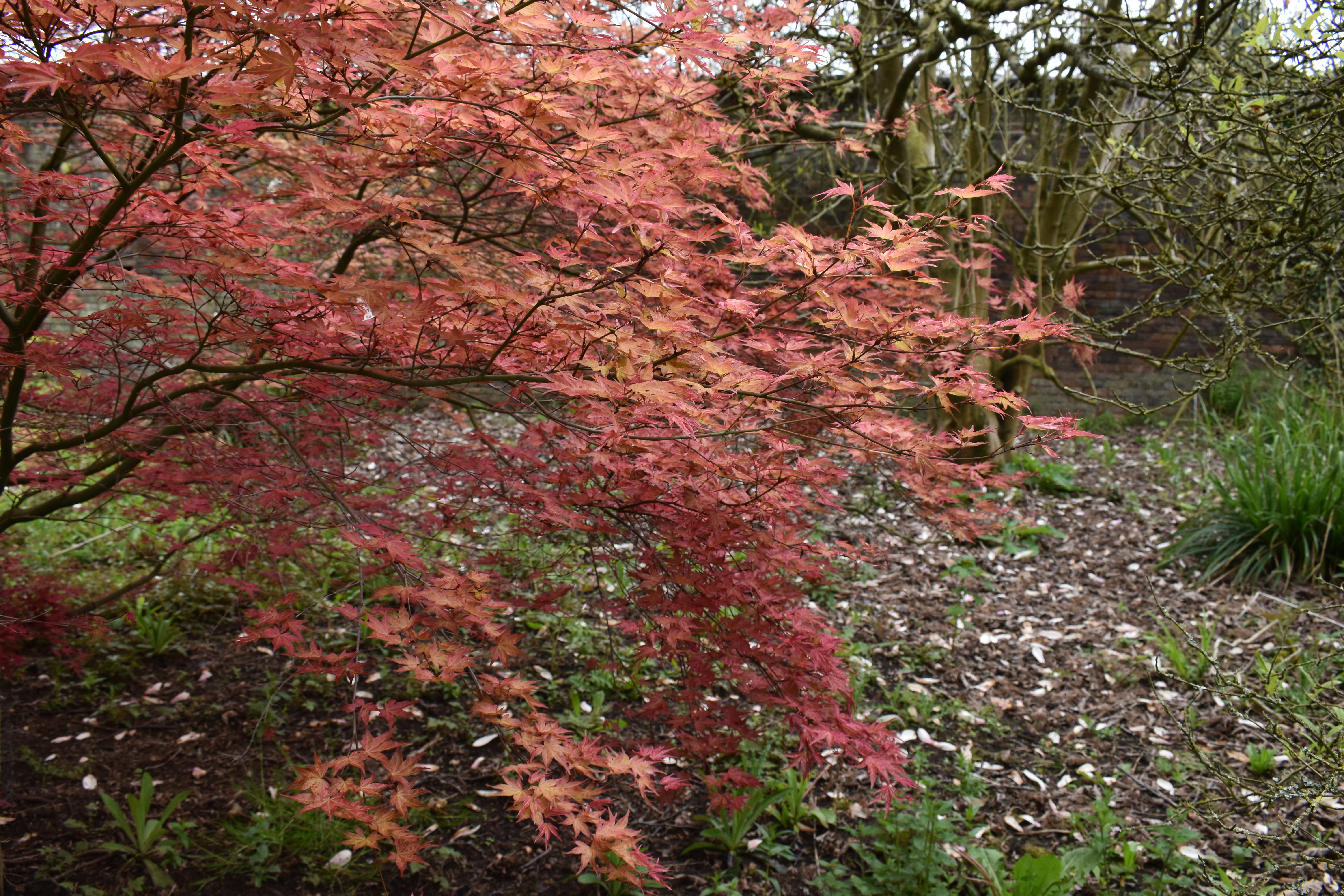 The spring colour of the fresh foliage of Acer brilliantissima gave little brightness to the dull day.