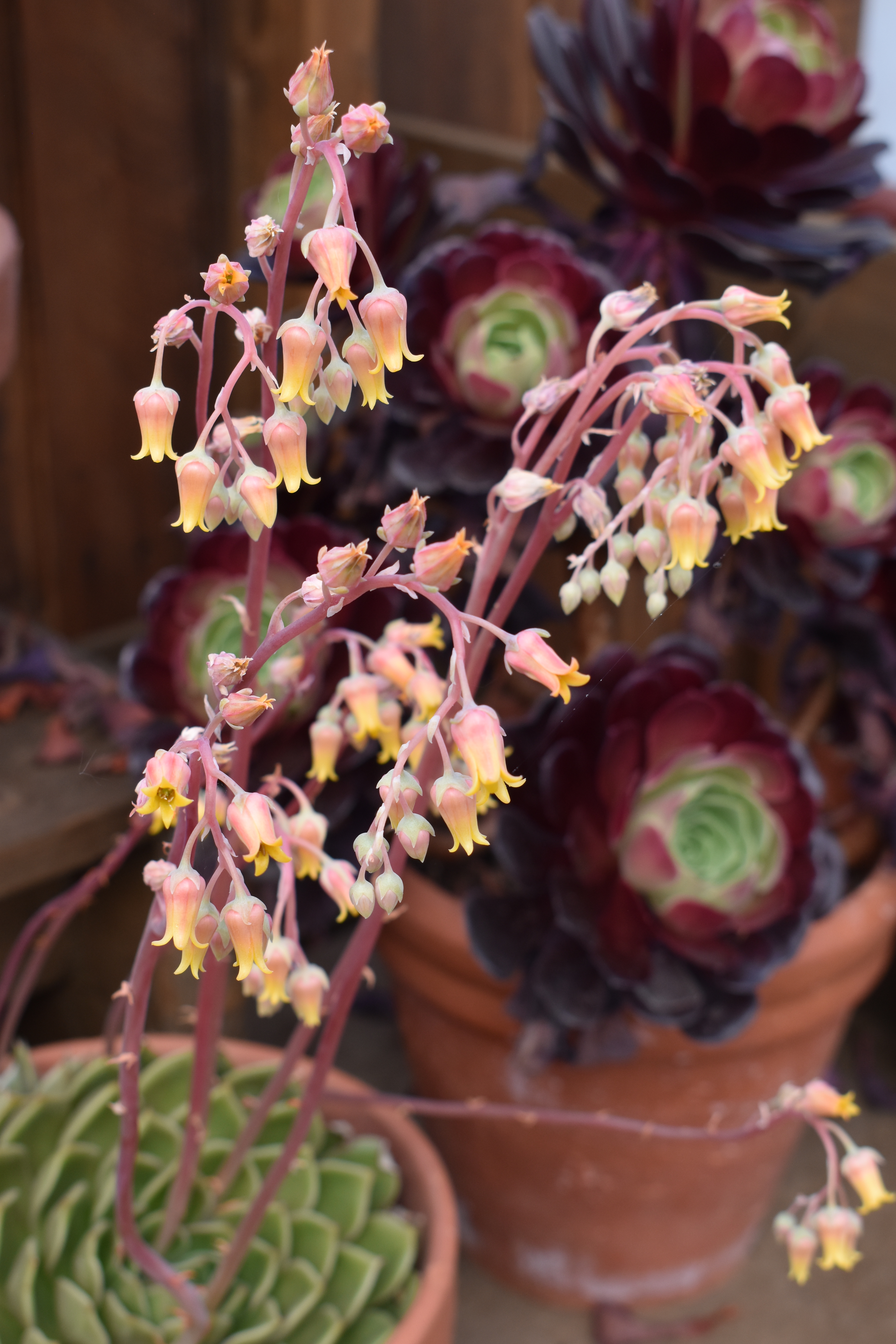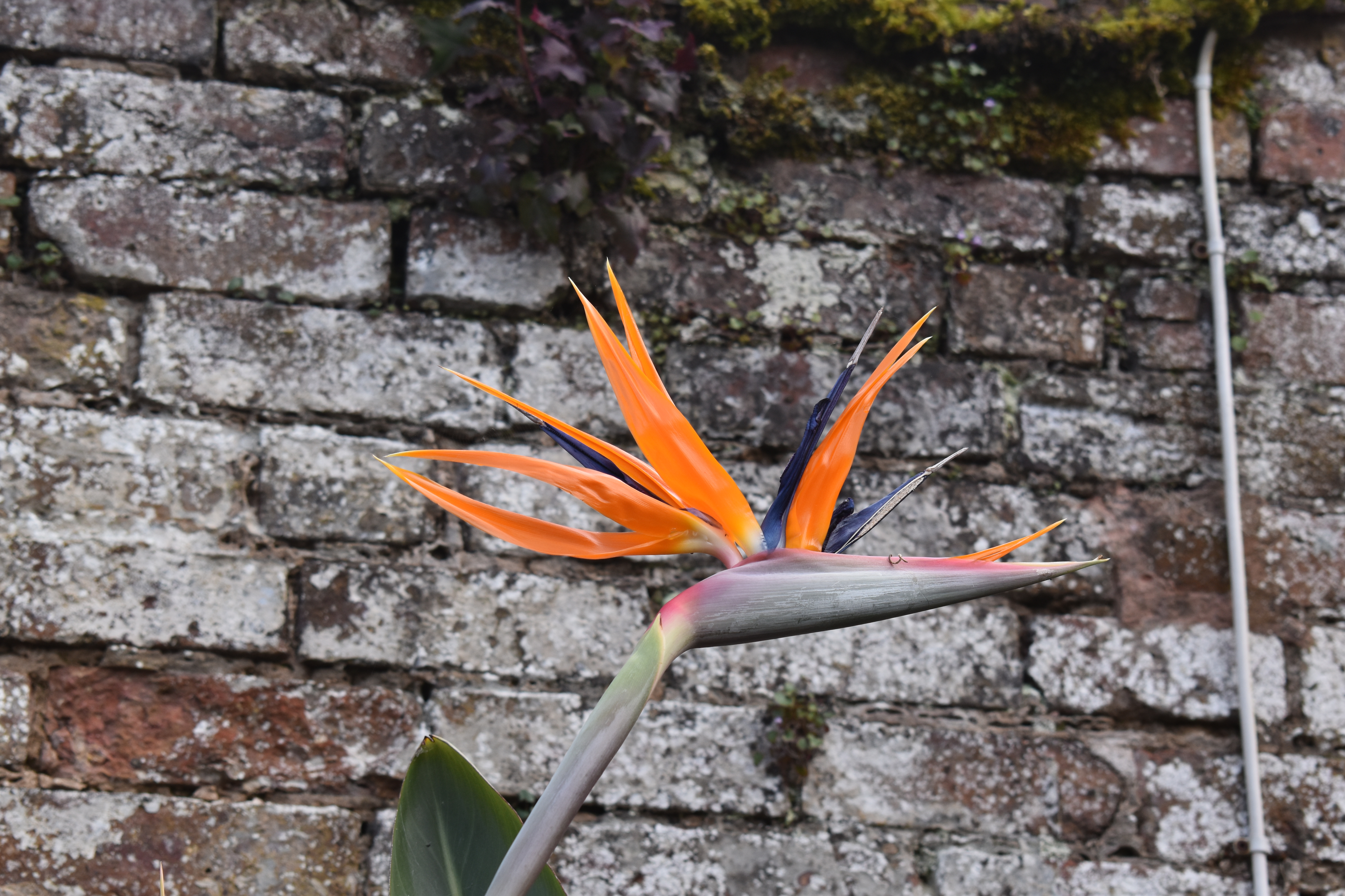 Back near the cafe polytunnels were home to more delicate plants, aeoniums, pelargoniums and echeveria. This oriental bloom livened up an old brick wall and deserved a close up look. We had a very colourful end to our tree orientated day.