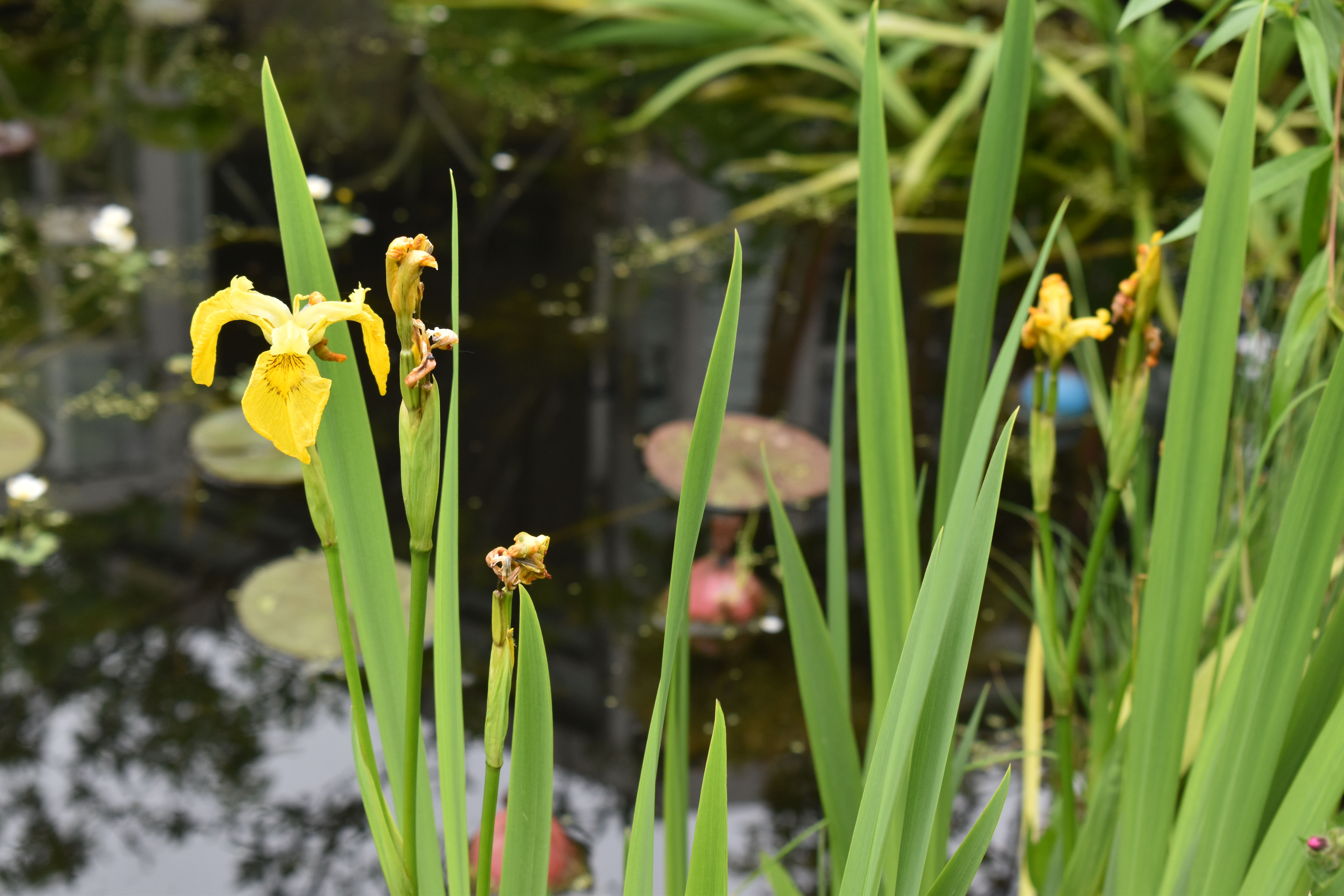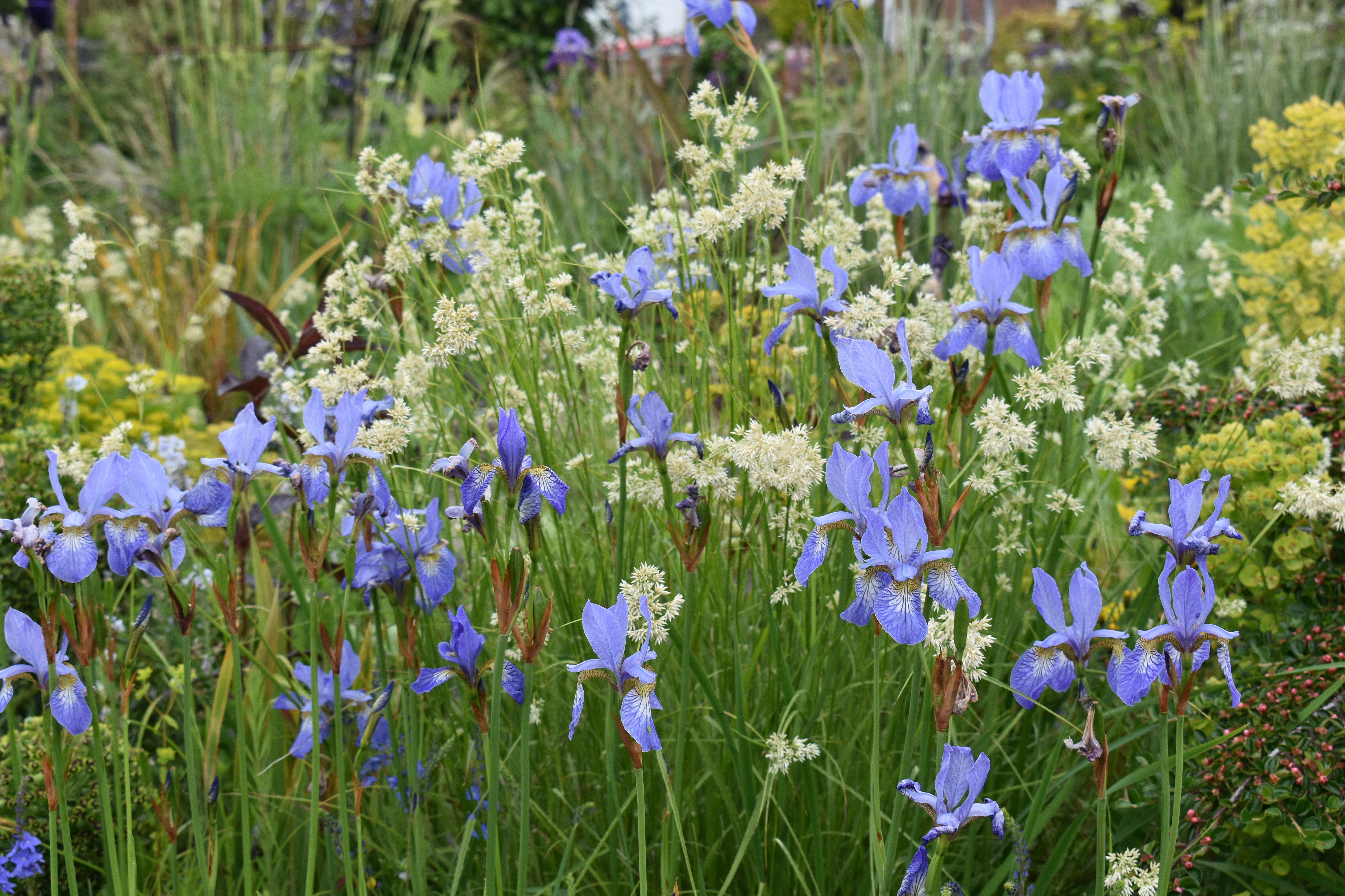 above the first group of nine photos I wrote, “Irises in several forms brighten up the garden from the “Chatto Garden” to the ponds and bog garden.”