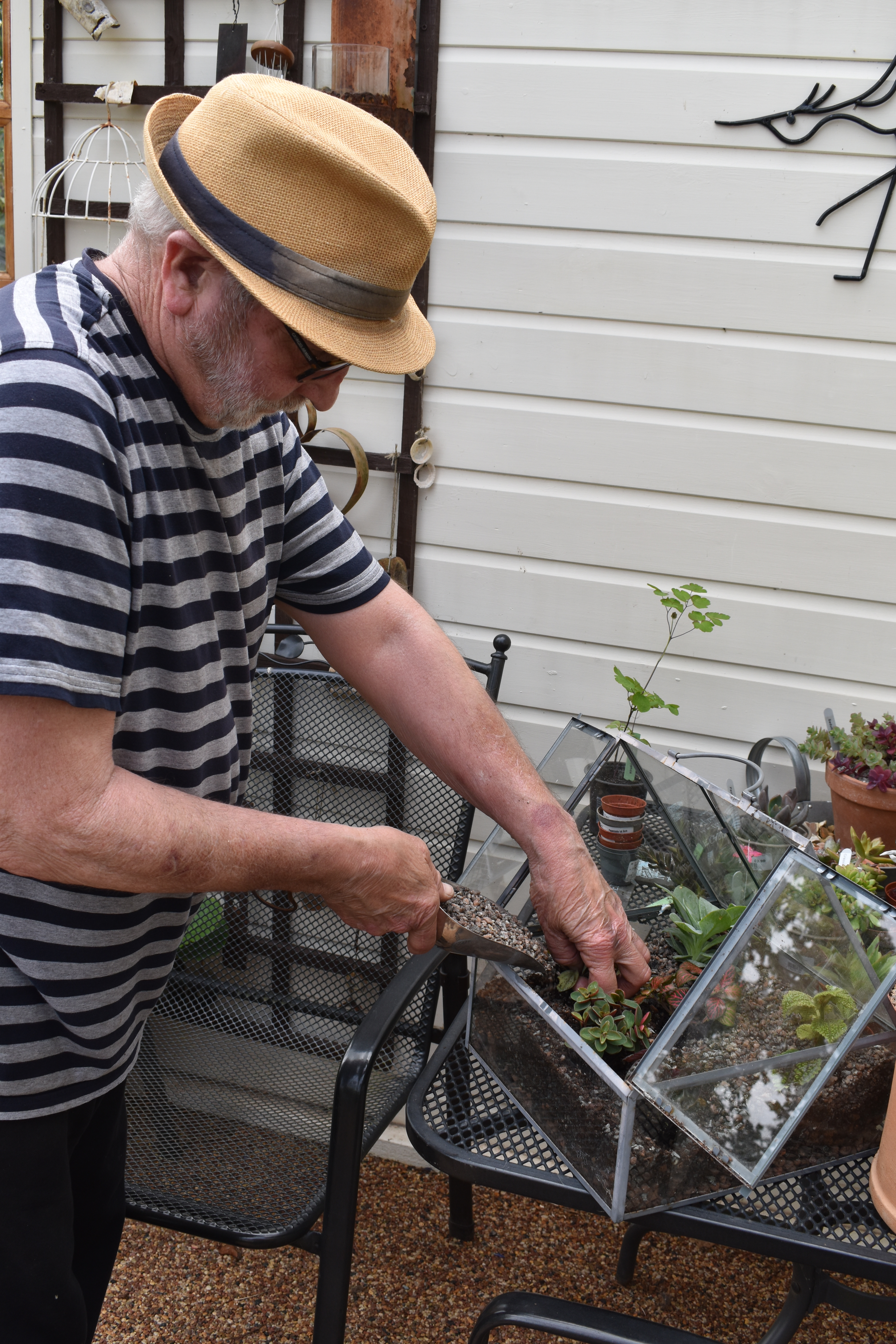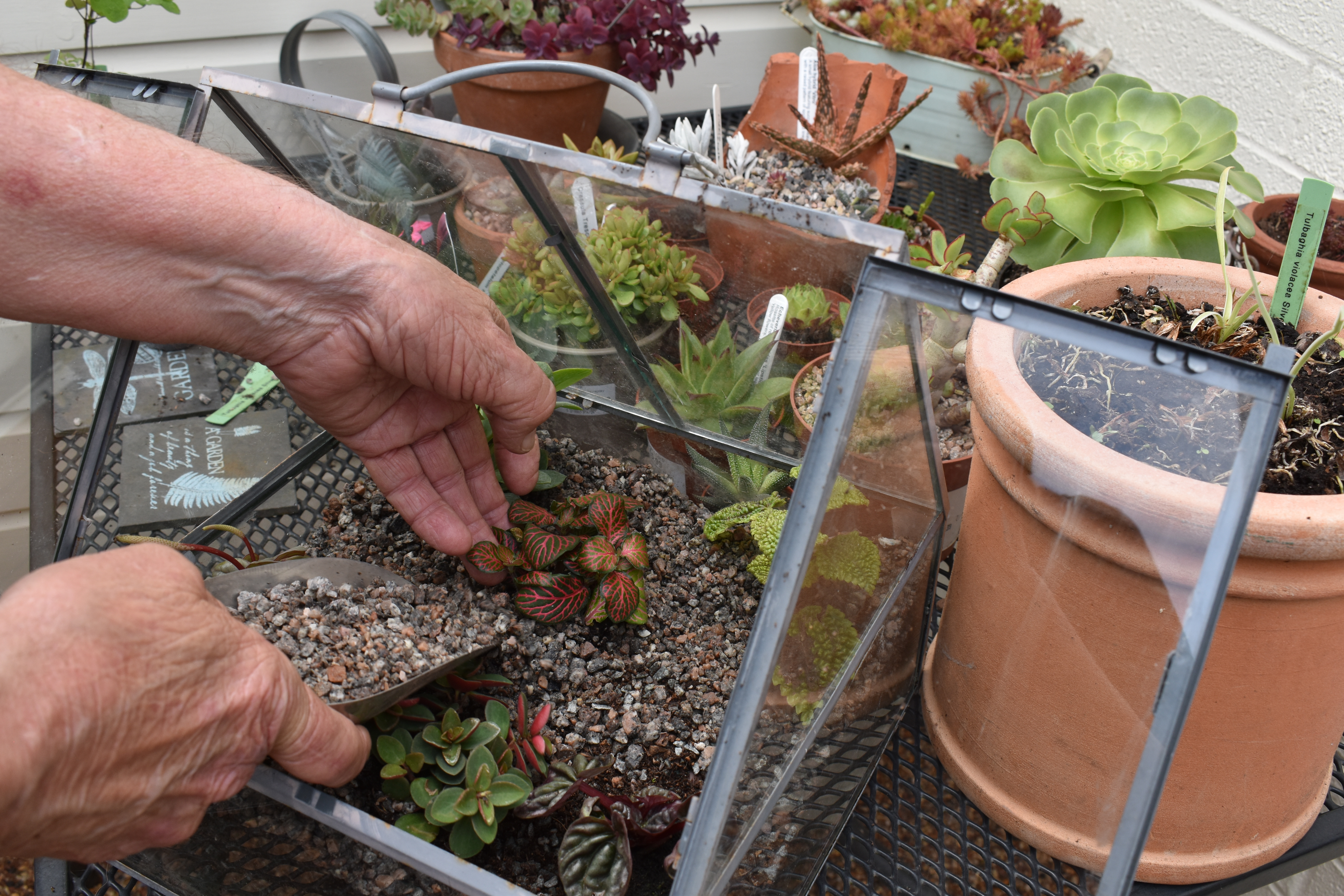“I had fun re-vitalising a failed terrarium for our daughter and son-in-law Jo and Rob. It is strange gardening in a scaled down patch.”