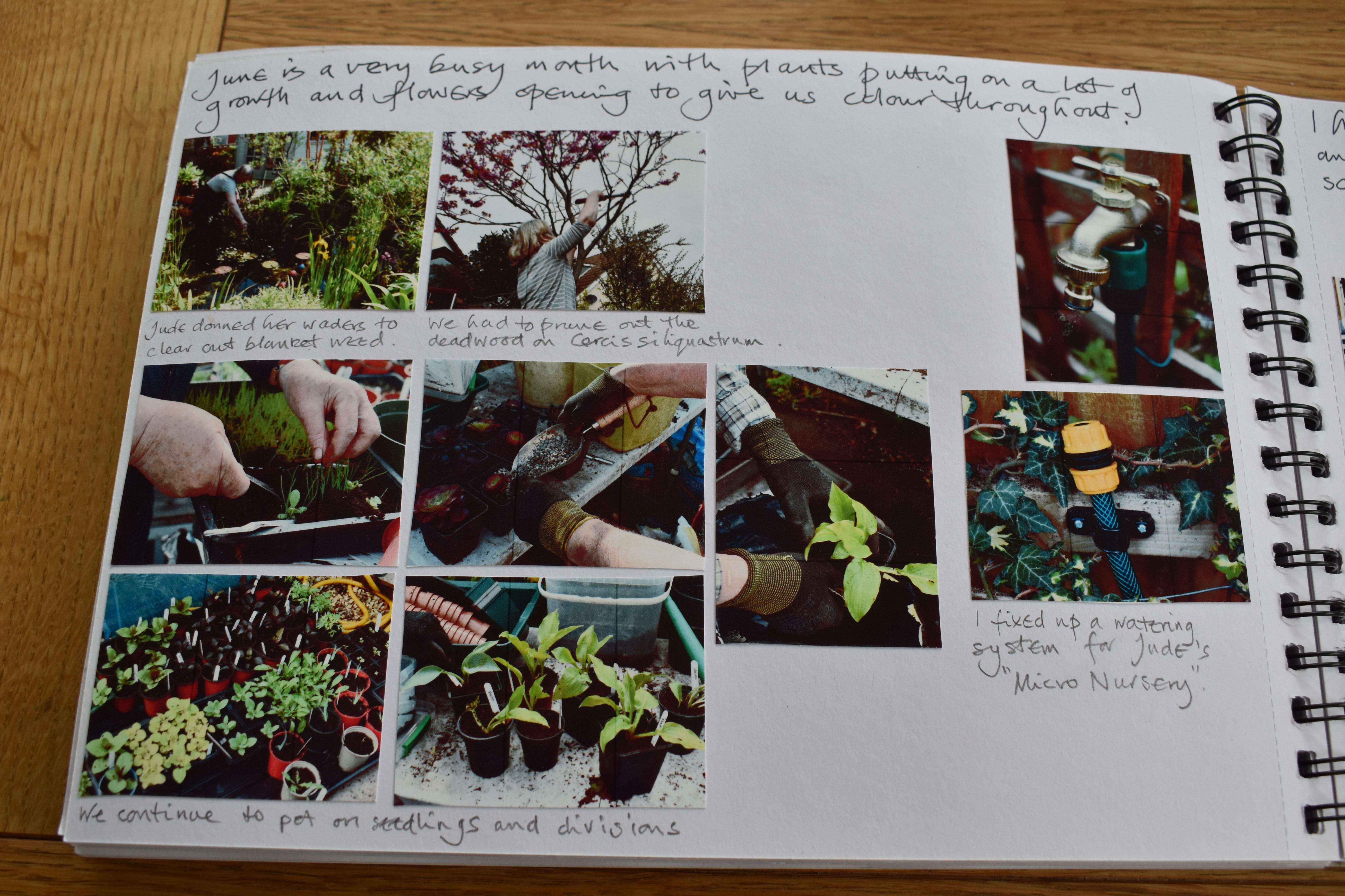 Turning over to the next pair of pages we consider the gardening tasks we do in this busy month. I wrote, “June is a very busy month with plants putting on a lot of growth and flowers opening to give us colour throughout.“