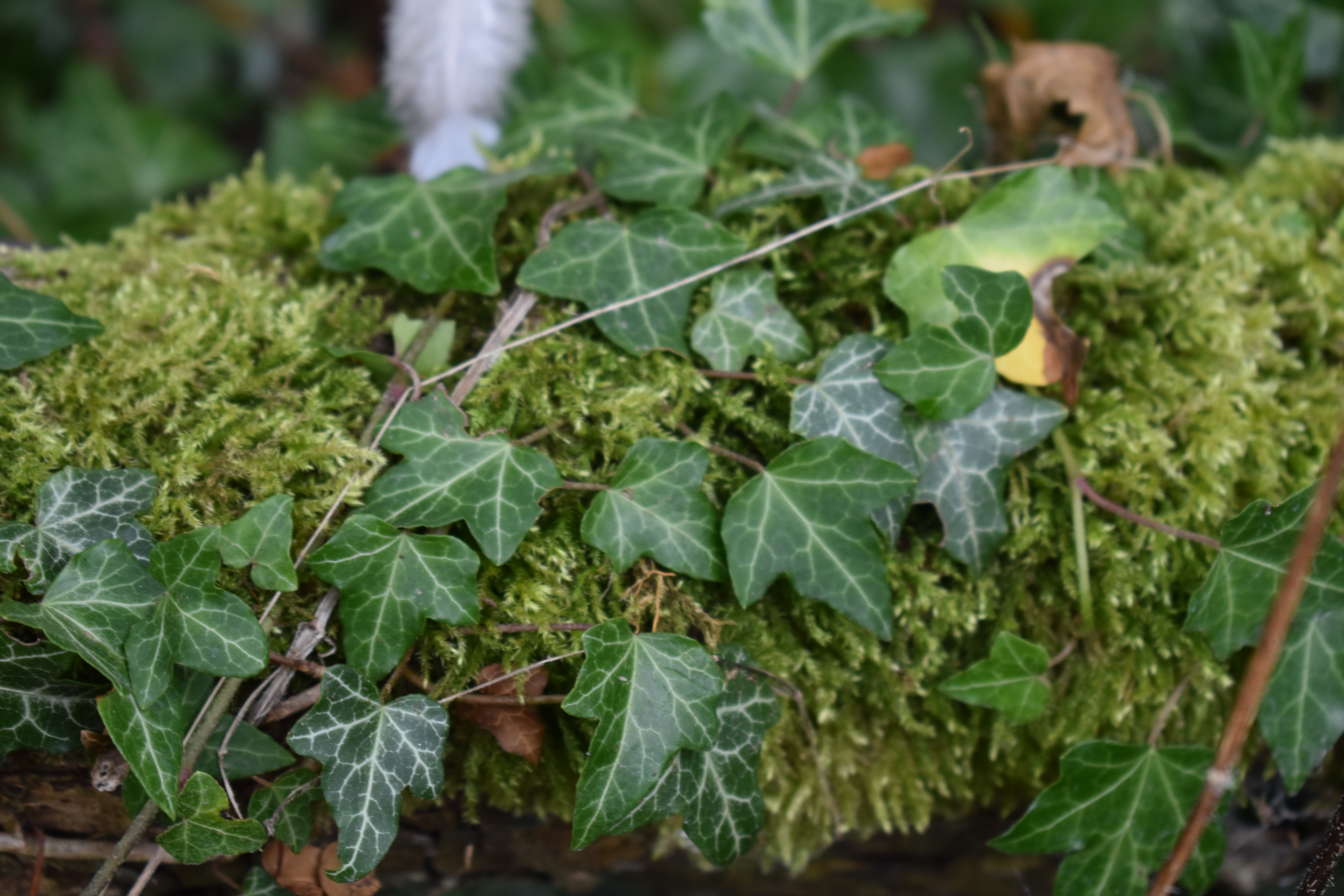 I will finish off with this beautiful moss covered broken branch decorated with strands of ivy.