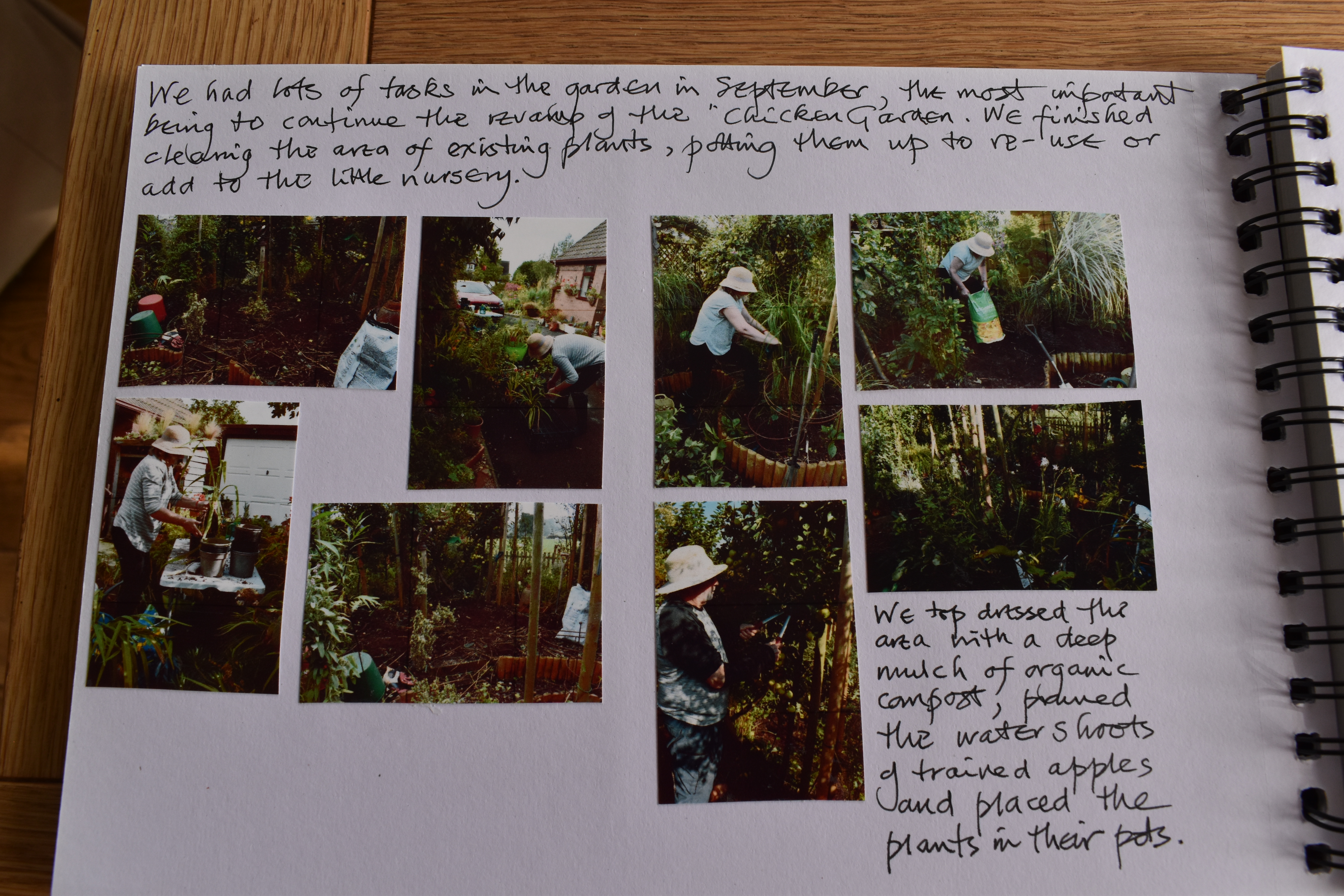 Over the page I share with you the hard but enjoyable work we have been doing transforming existing borders, totally re-inventing them.I wrote ,“We had lots of tasks in the garden in September, the most important being to continue the revamp of the “Chicken Garden”. We finished clearing the area of existing plants, potting them up to re-use or add to our nursery stocks in our little nursery.” and “We top dressed the area with a deep mulch of organic compost, pruned the water shoots from the trained apple trees and potted up displaced plants.”