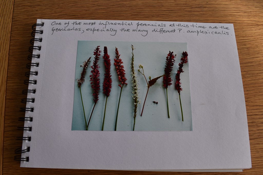 Turning over the page to the next double page spread I feature firstly many of our sedums and opposite selections of perennials that give clumps of flower colour.