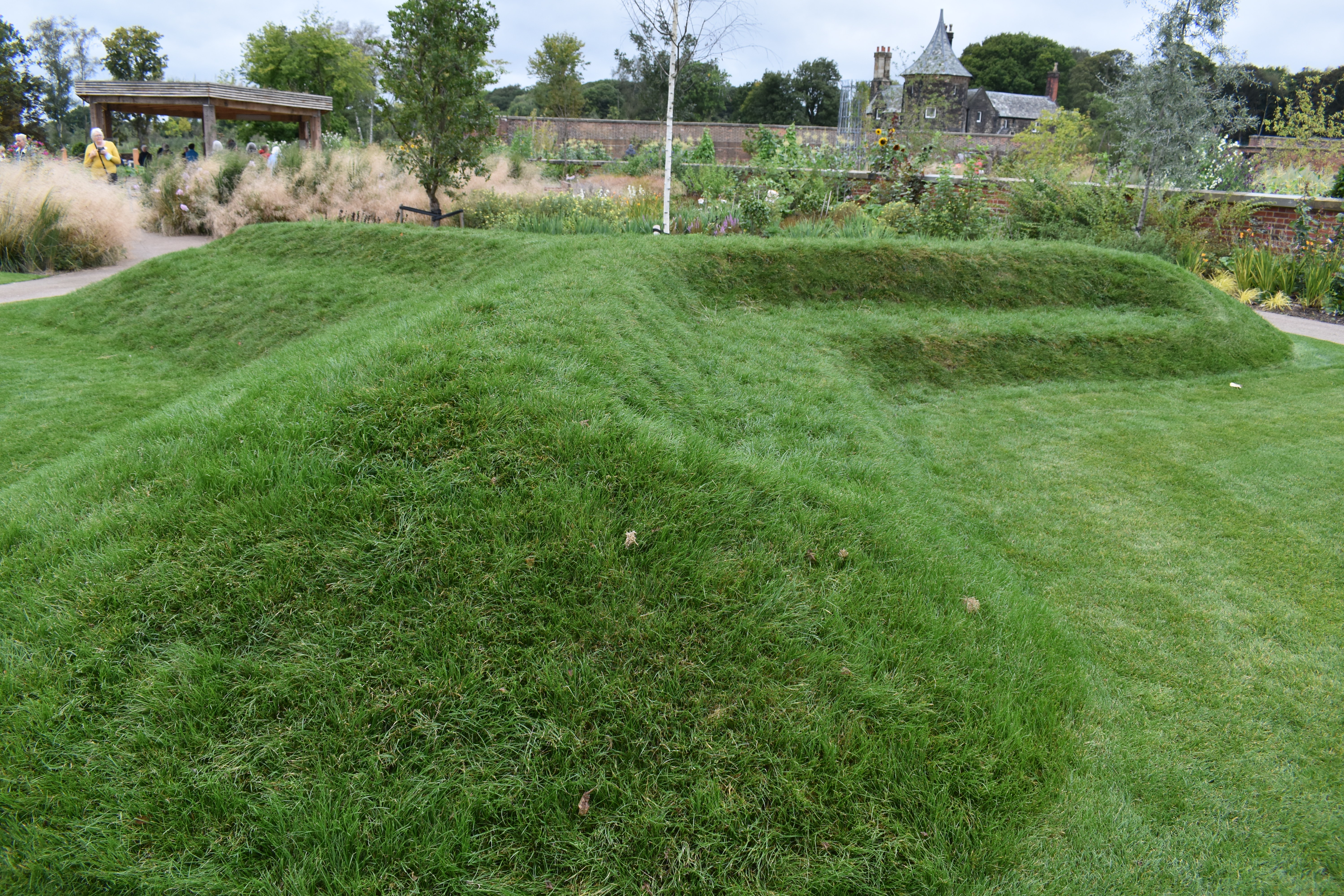 We were fascinated by this propellor shaped turf bench, a design hard to create and no doubt to maintain too!