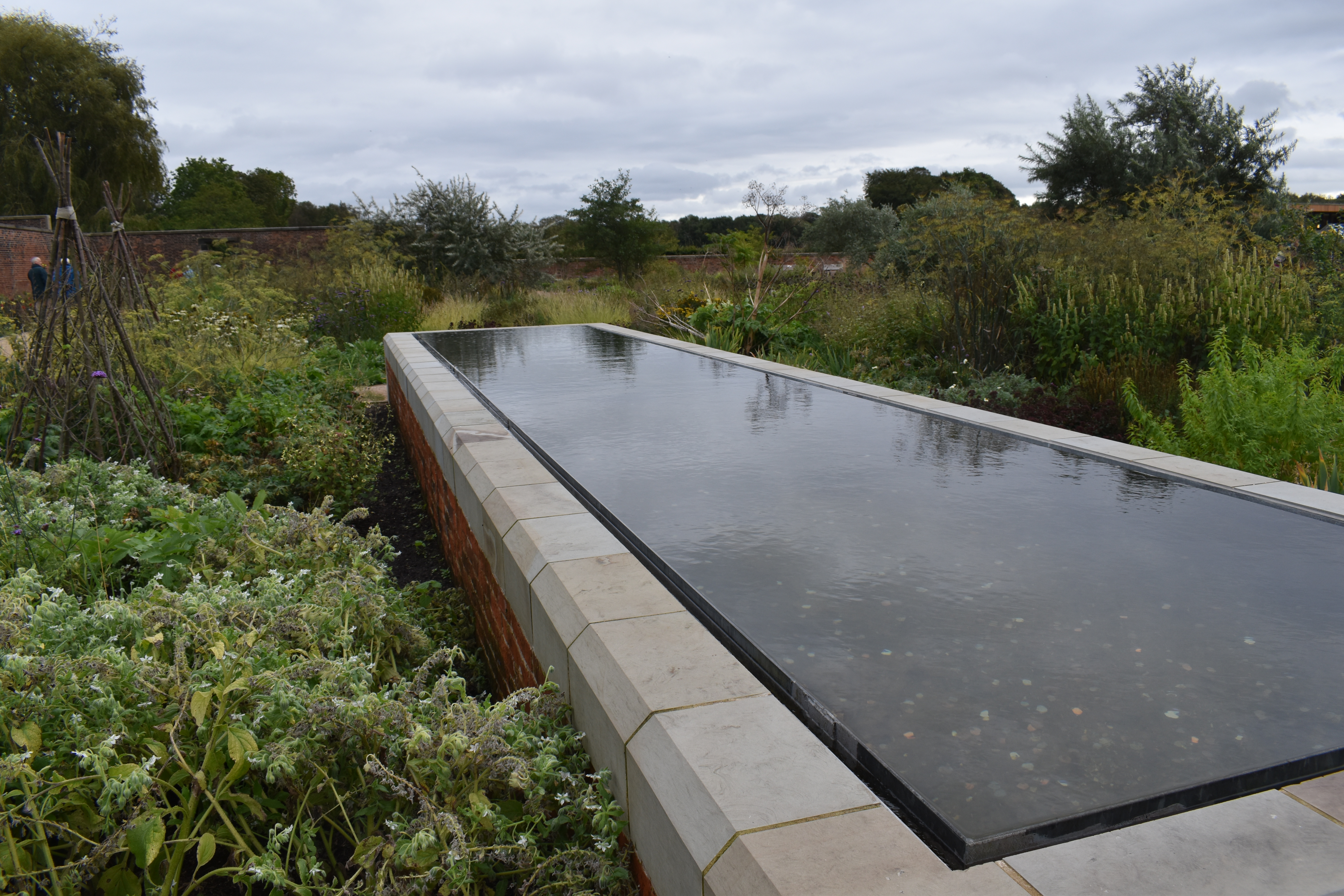 We then wandered into the formal areas within the old walled gardens which must have been so dramatic in their day. The first we reached was the kitchen garden designed by Hugo Bugg and Charlotte Harris, both winners of RHS Young Designer Awards. The underlying structure is influenced by the areas industrial heritage especially its canal system.