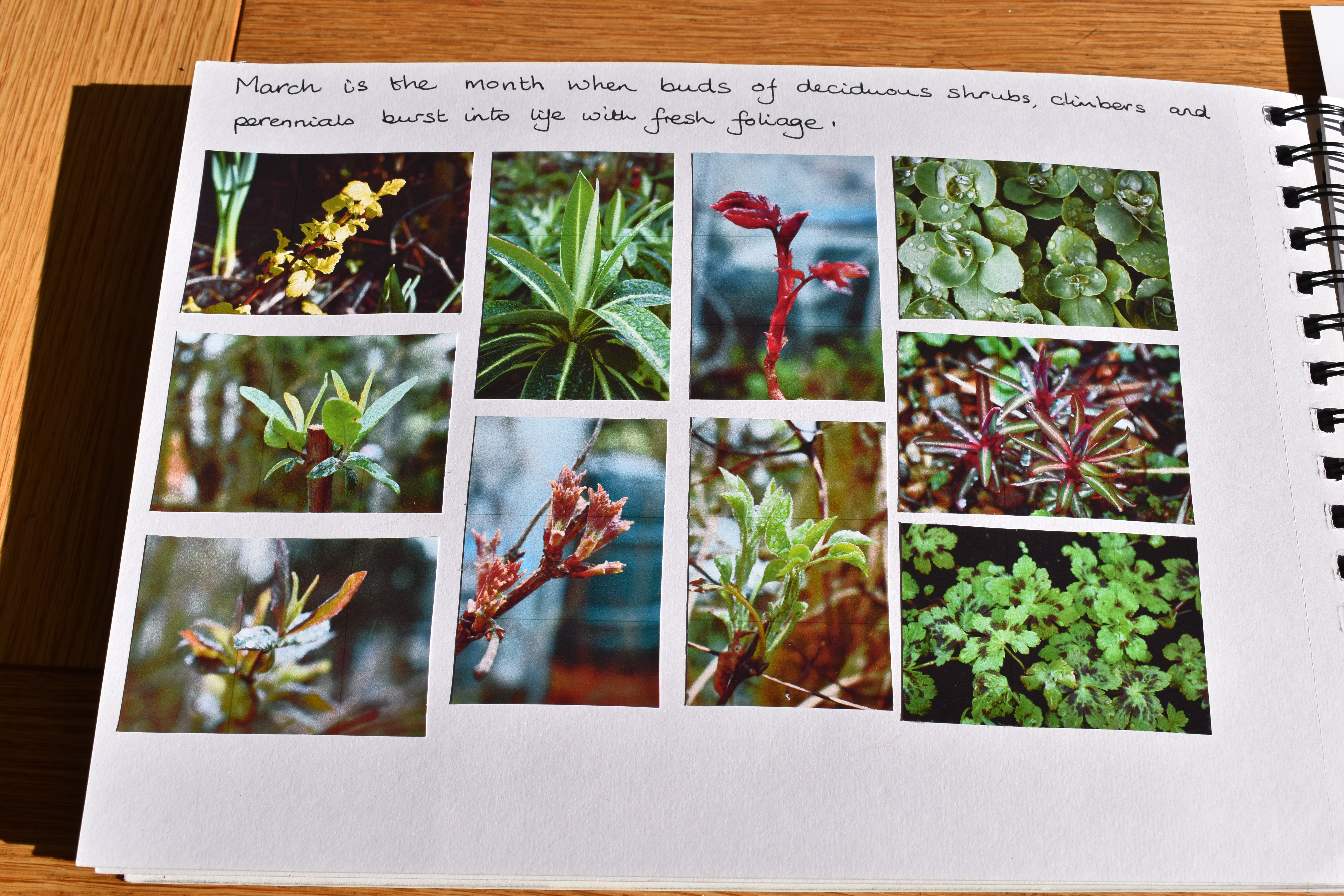 Concerning foliage I noted, “March is the month when buds of deciduous shrubs, climbers and perennials burst into life with fresh foliage.”
