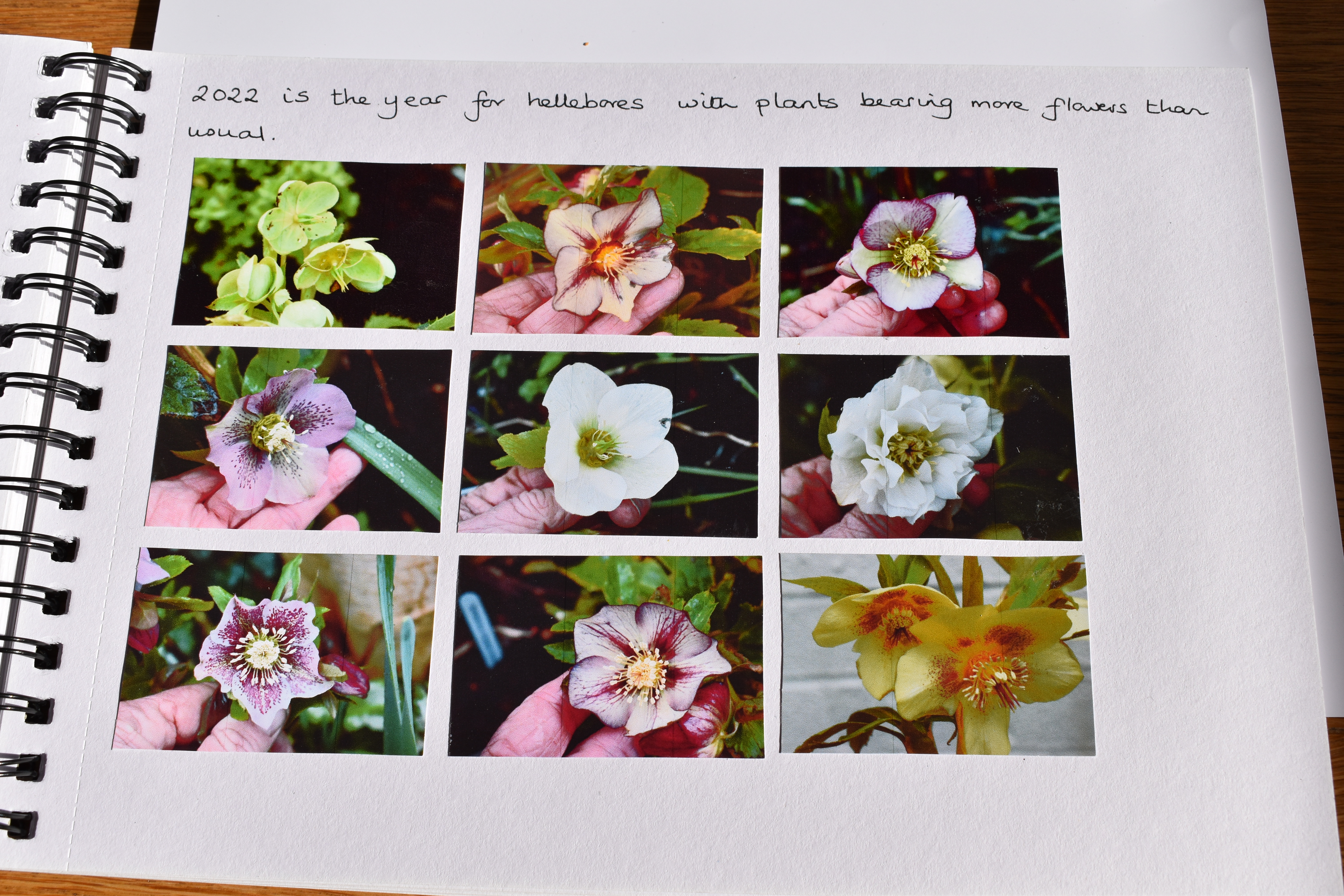 Over onto the next double page I looked firstly at freshly emerged foliage and then at hellebore hybrids.