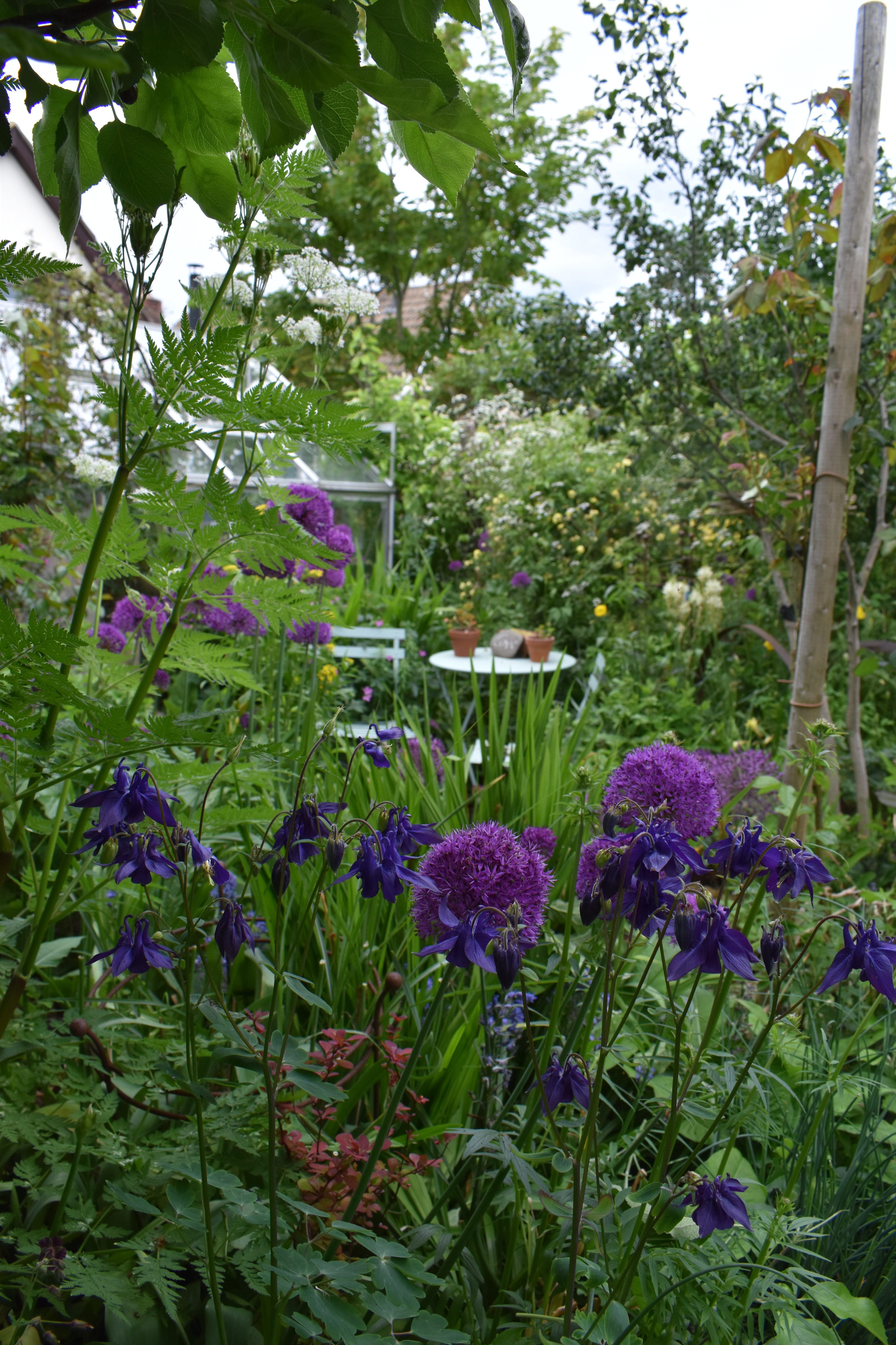 And so onto the final page of my entries into my garden journal 2022 for May and we feature aquilegias. I wrote, “Aquilegias self-seed freely around the garden and we look forward to new surprises every year. Just a few are species but most are random crosses.”