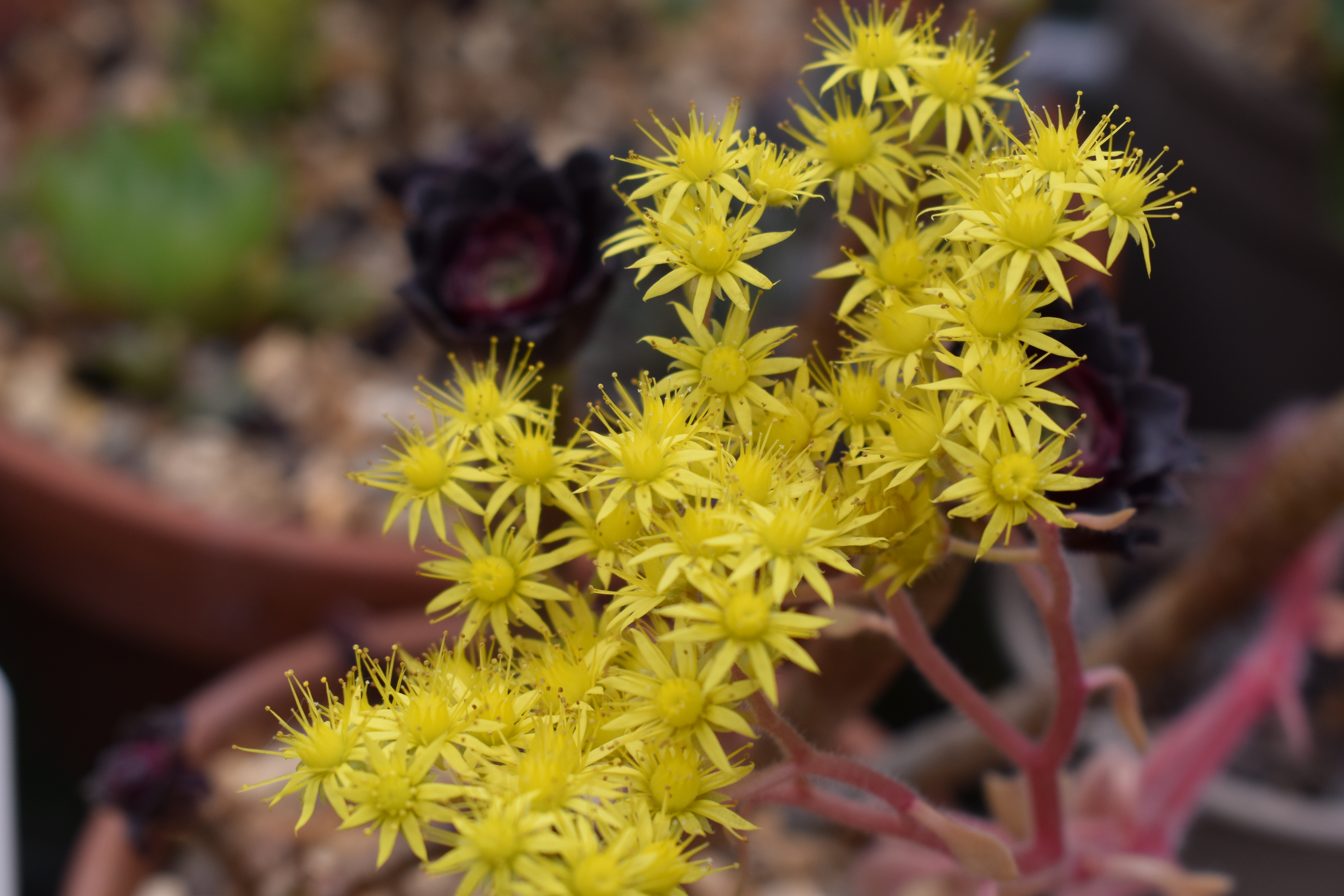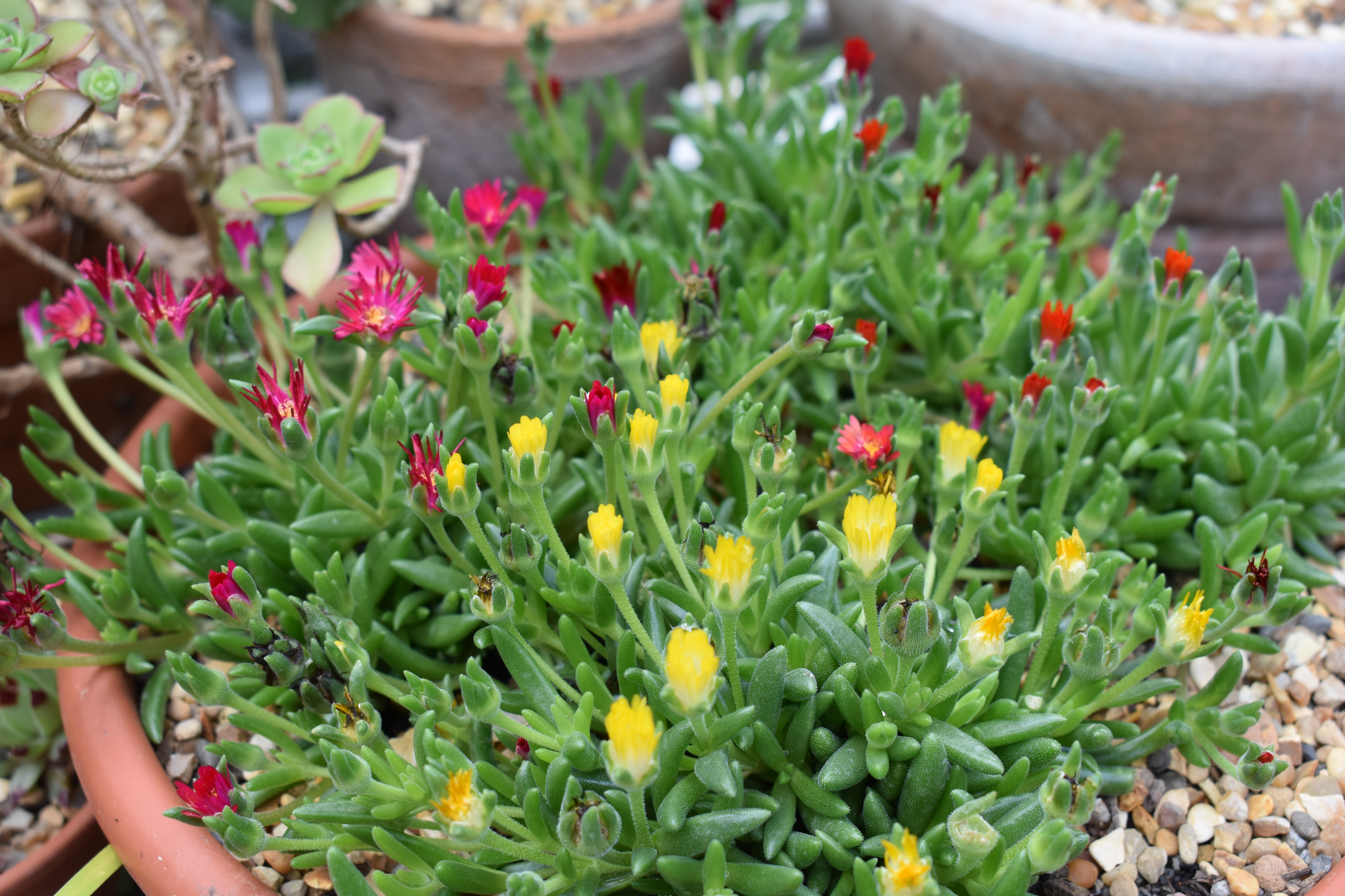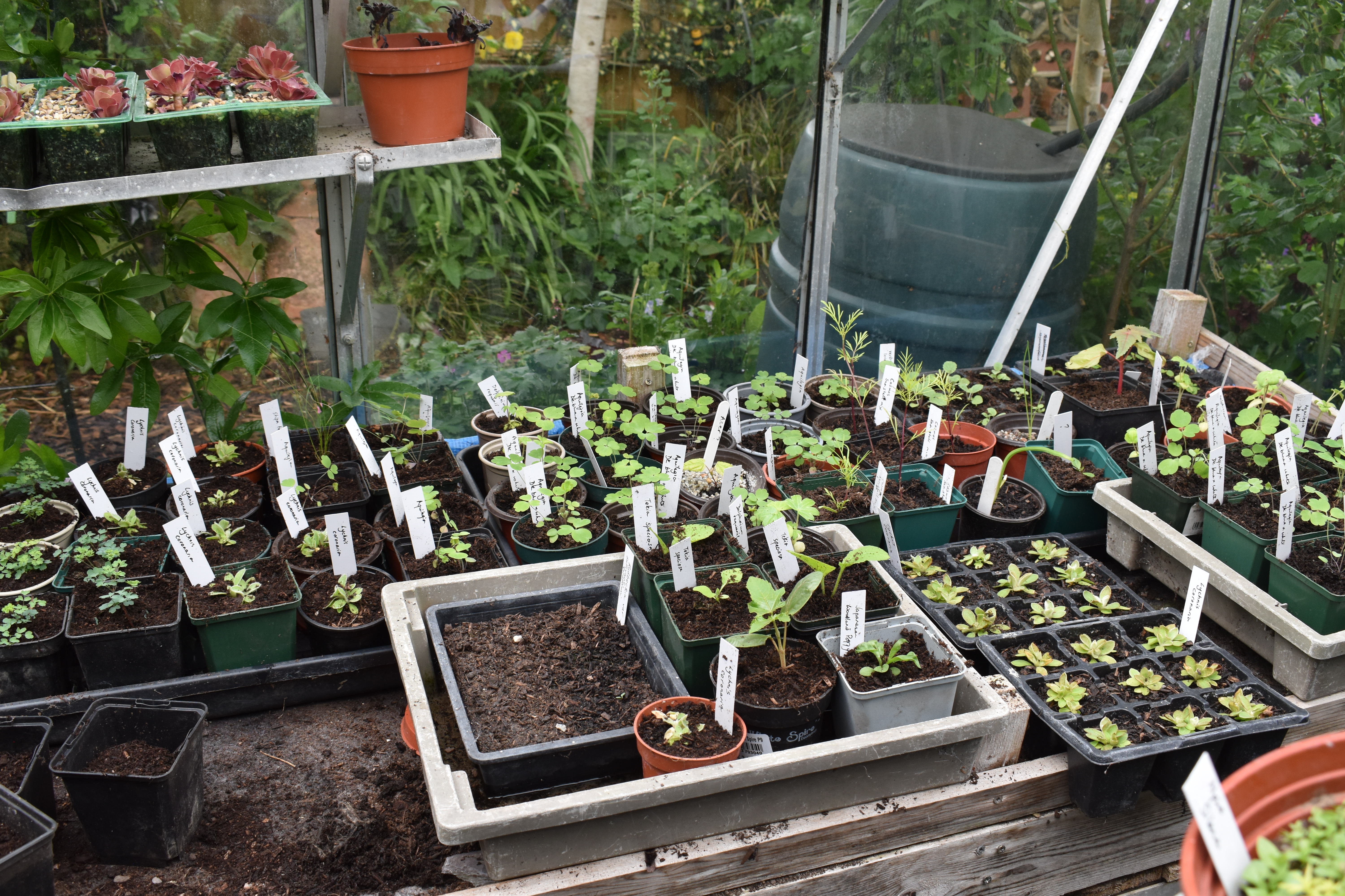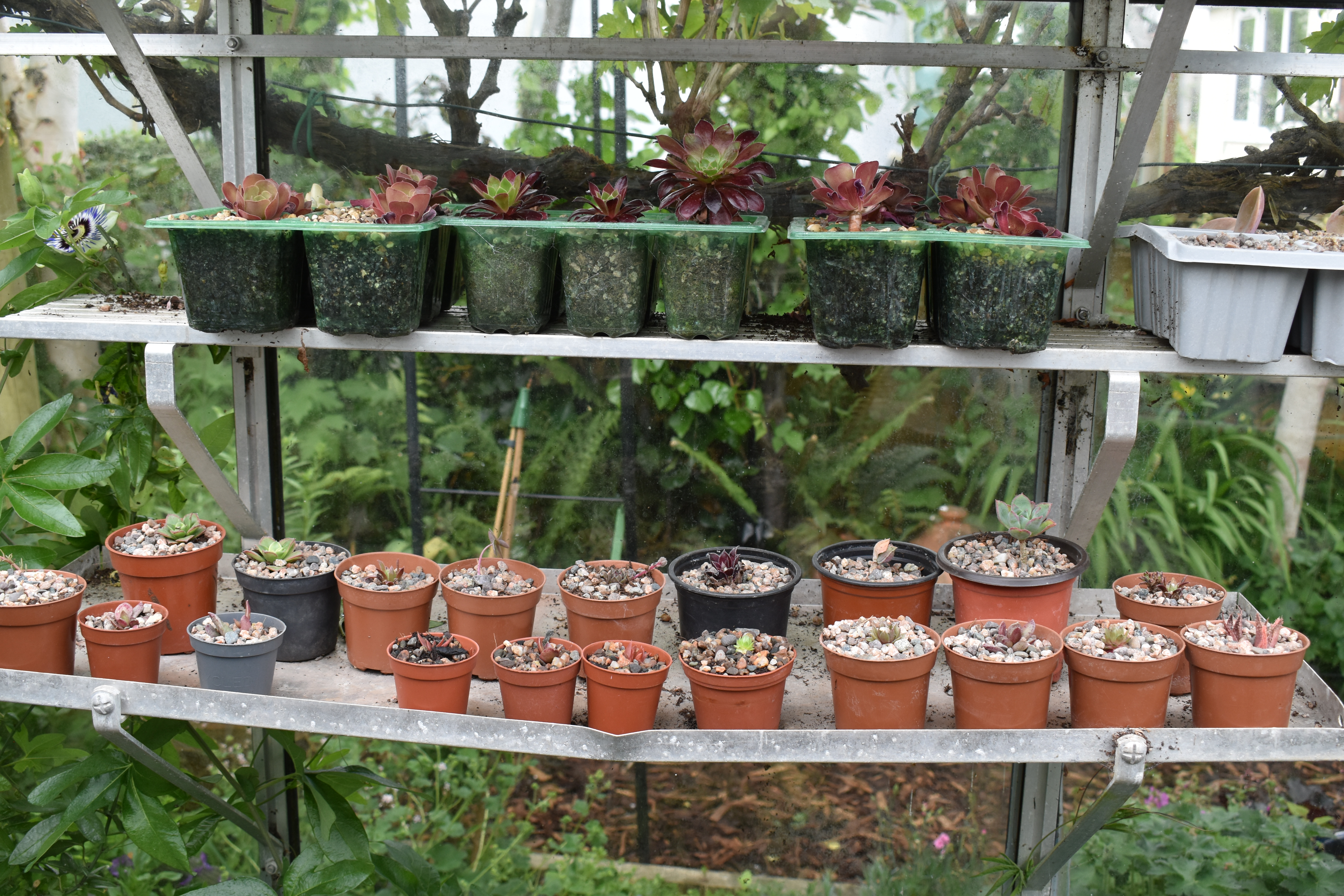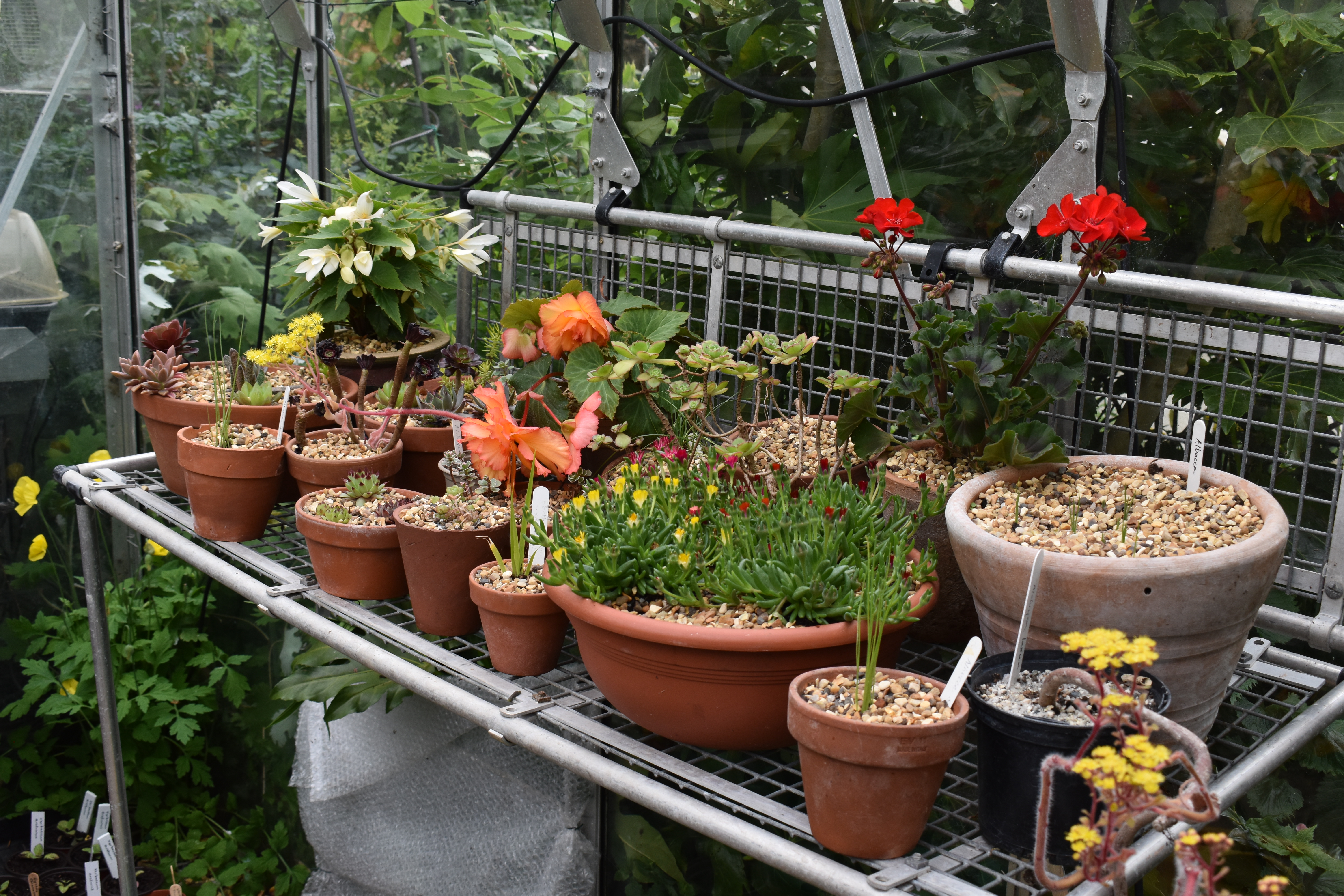 Before looking at more flowering plants we looked at the greenhouse, where I wrote, “In May we harden off our succulents, salvias and bulb type plants such as gingers, cannas and dahlias, leaving us space for a new display. Seedlings and cuttings fill the propagating section.”