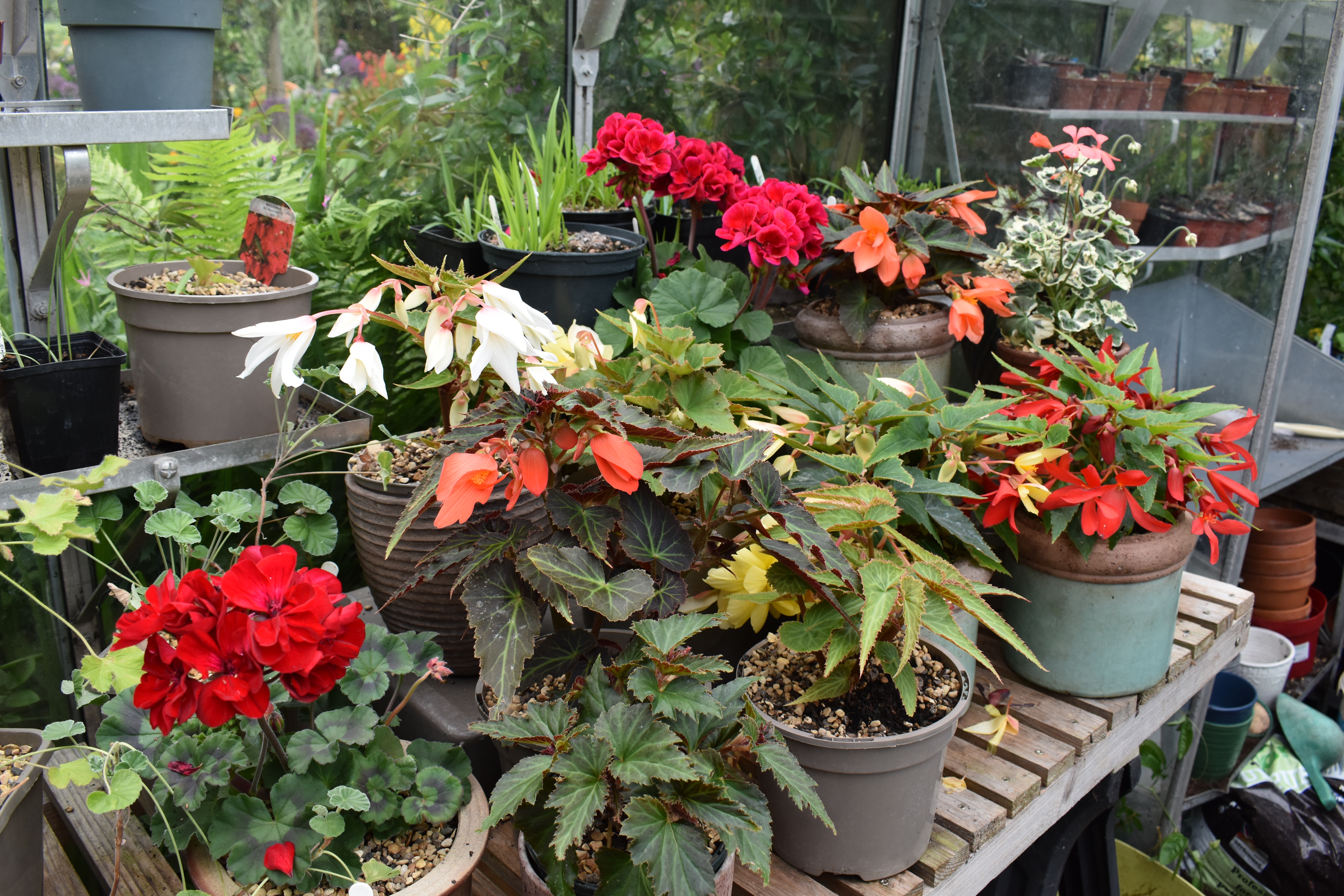 More flowering plants appear over the page this time featuring flowers of plants in our greenhouse, our colourful collection of begonias and pelargoniums.