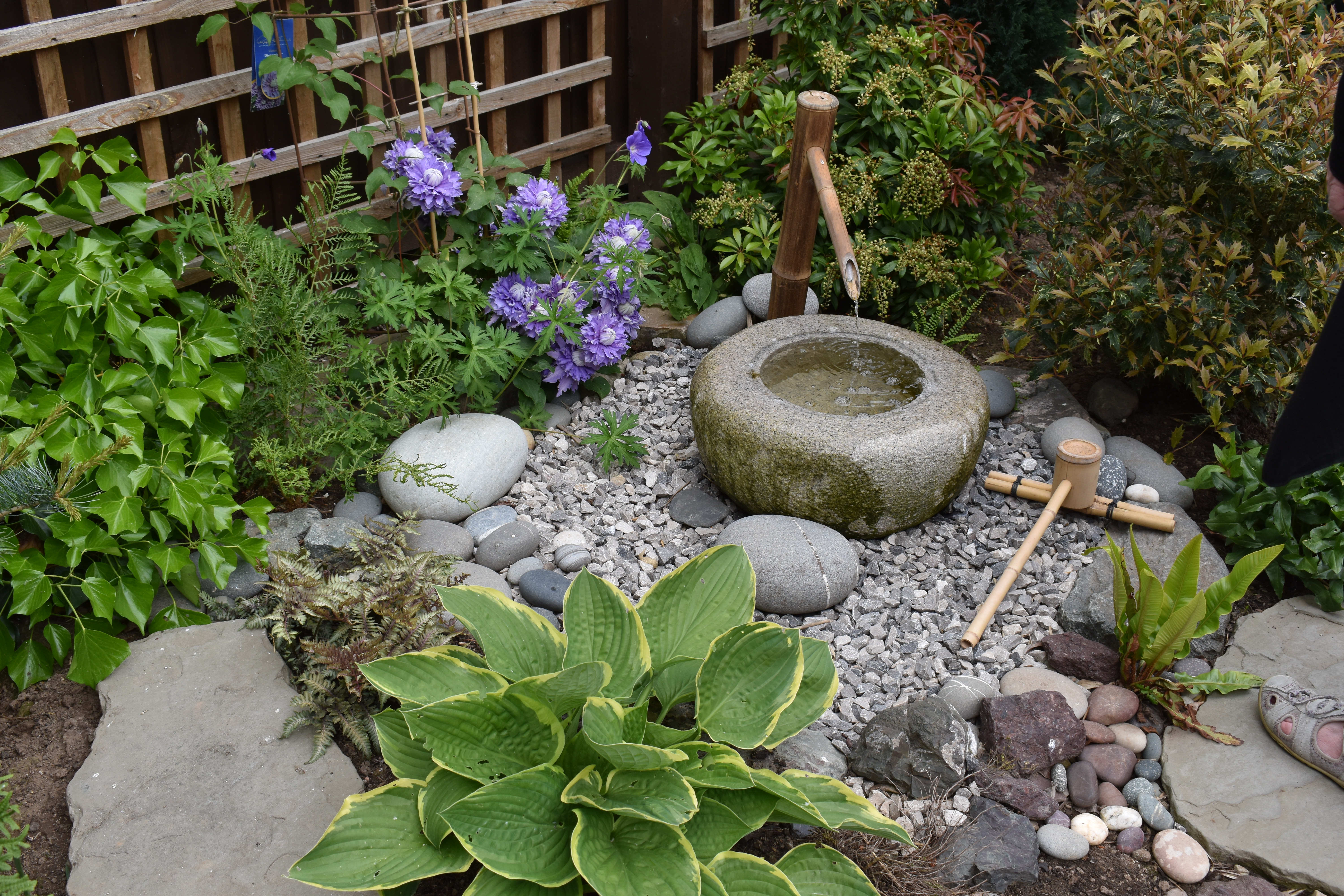 The final two gardens we visited were on a newly built housing estate. One had the obvious hallmarks of a space professionally designed and created, so included some interesting elements. On the opposite side of the road a neighbour had created an imaginative garden herself.