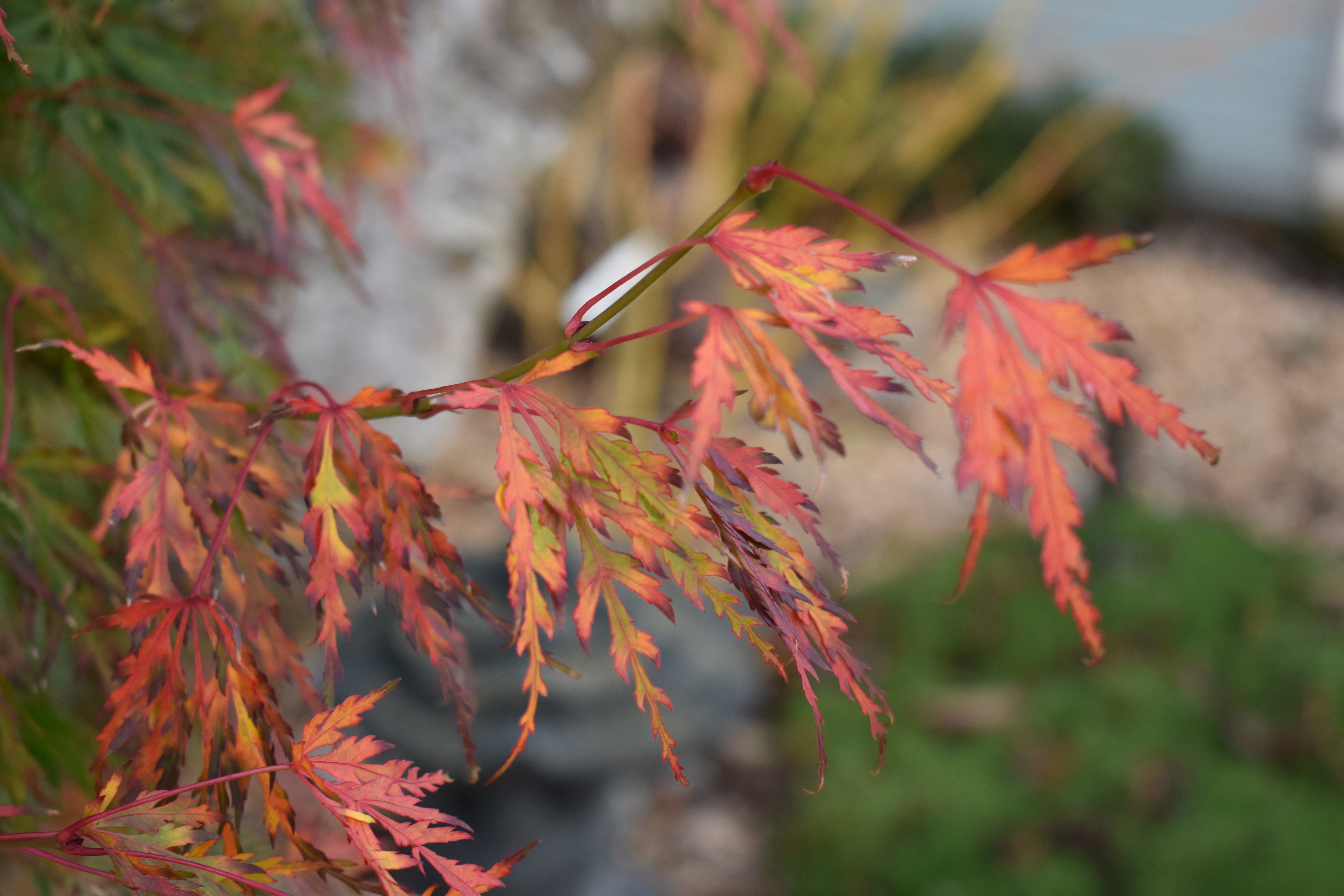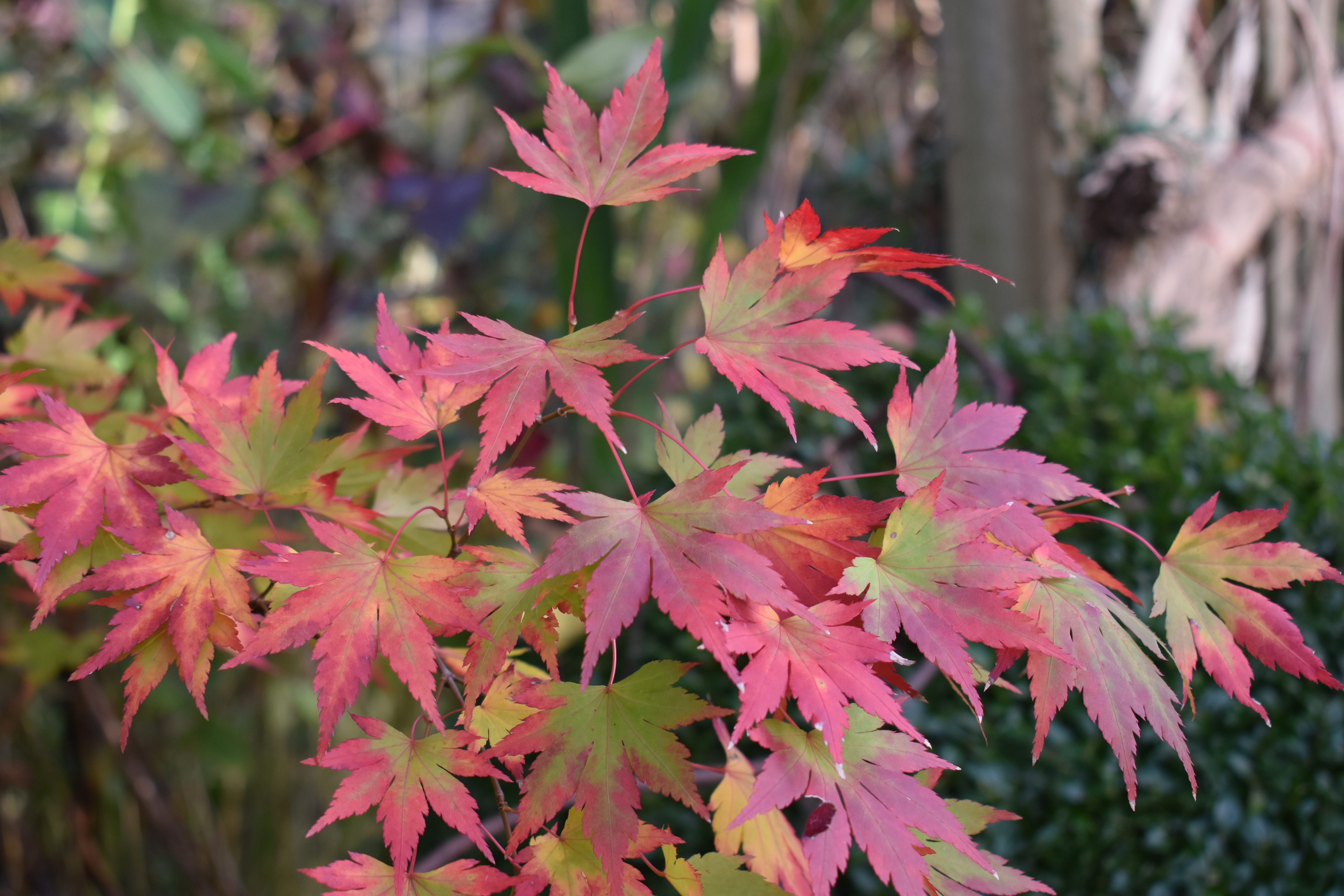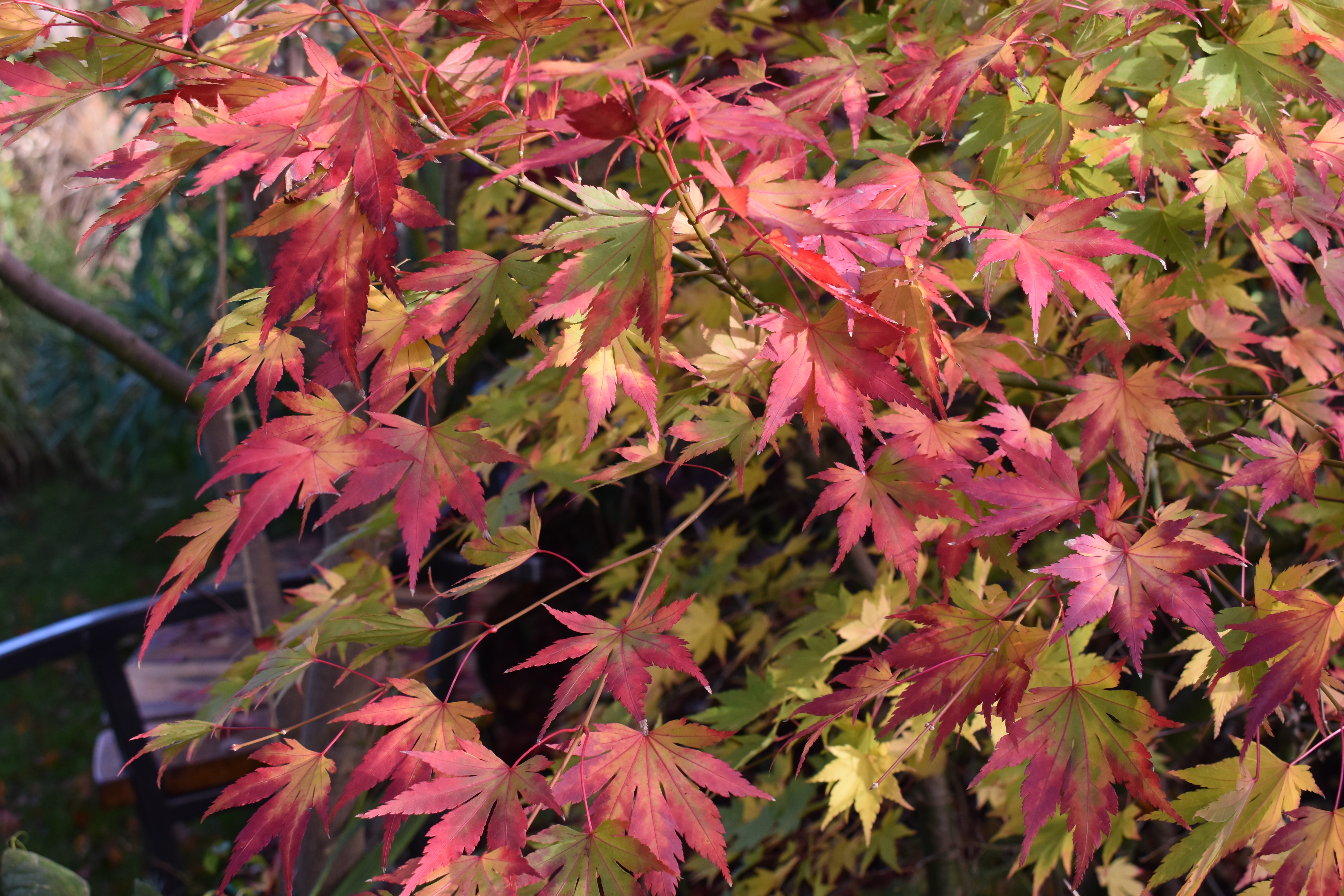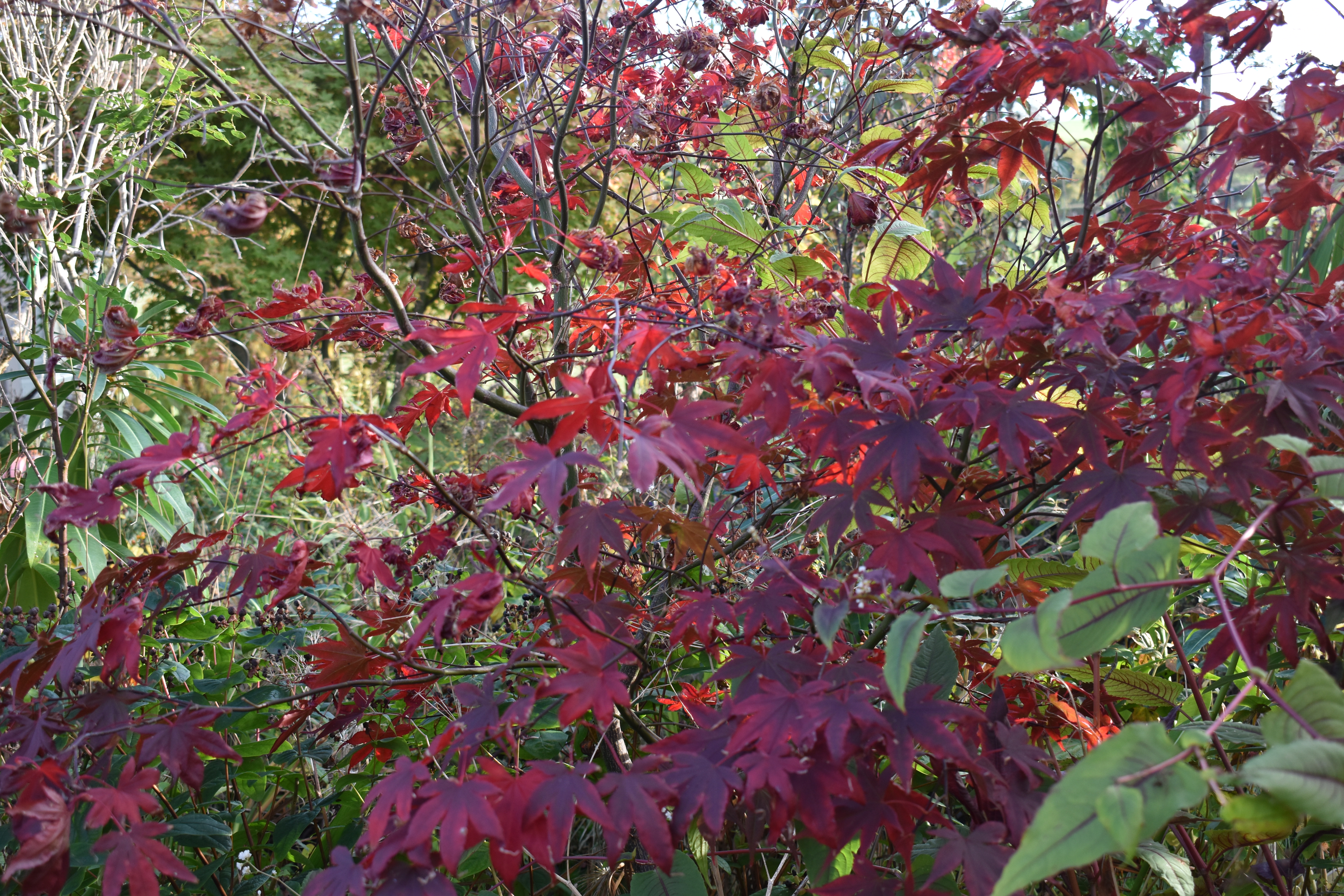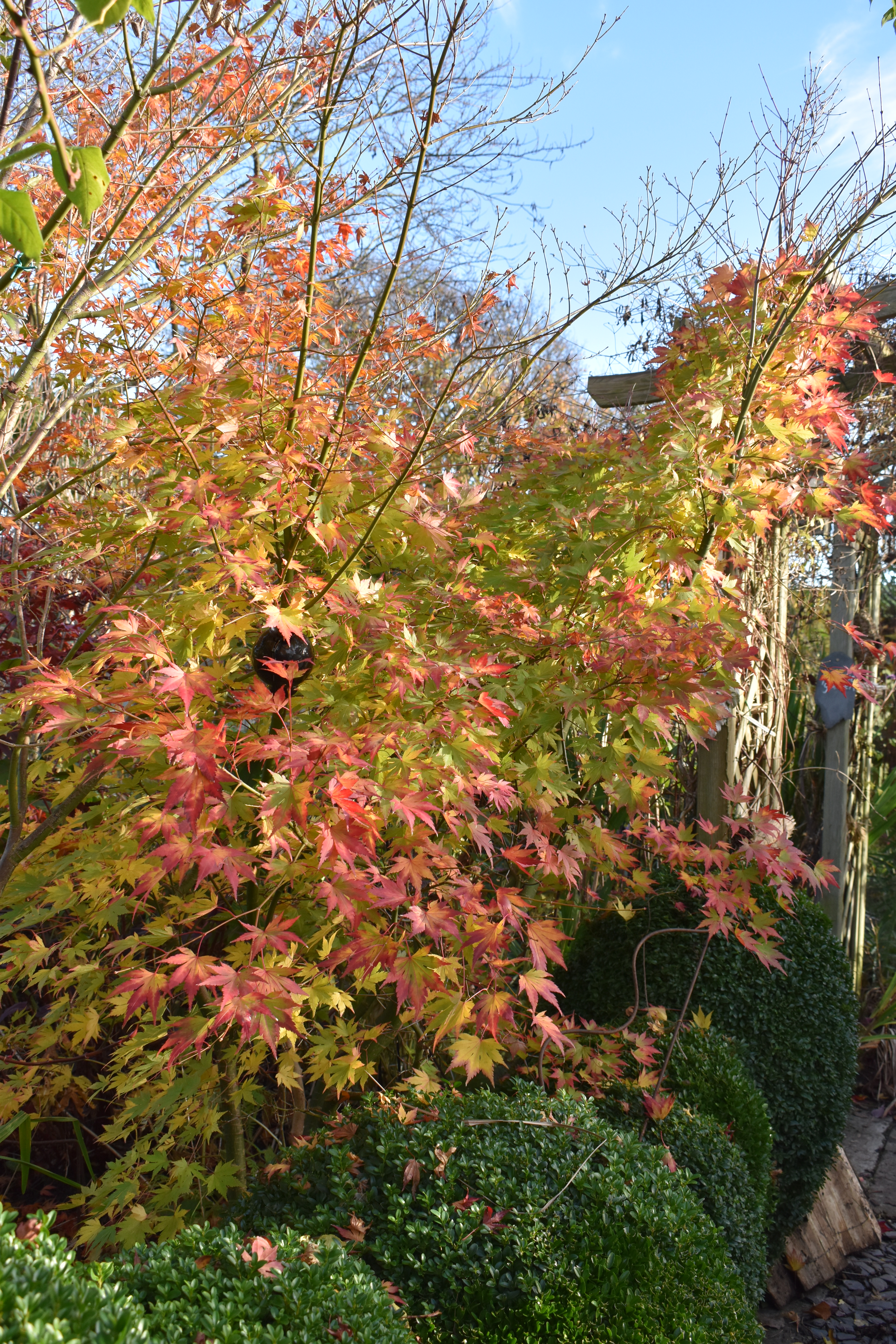 This particular acer is really striking with its deep green leaves which turn firstly to deep red and then slowly brighter on its way to orange and yellow. It is called ‘Acer seiryu’.