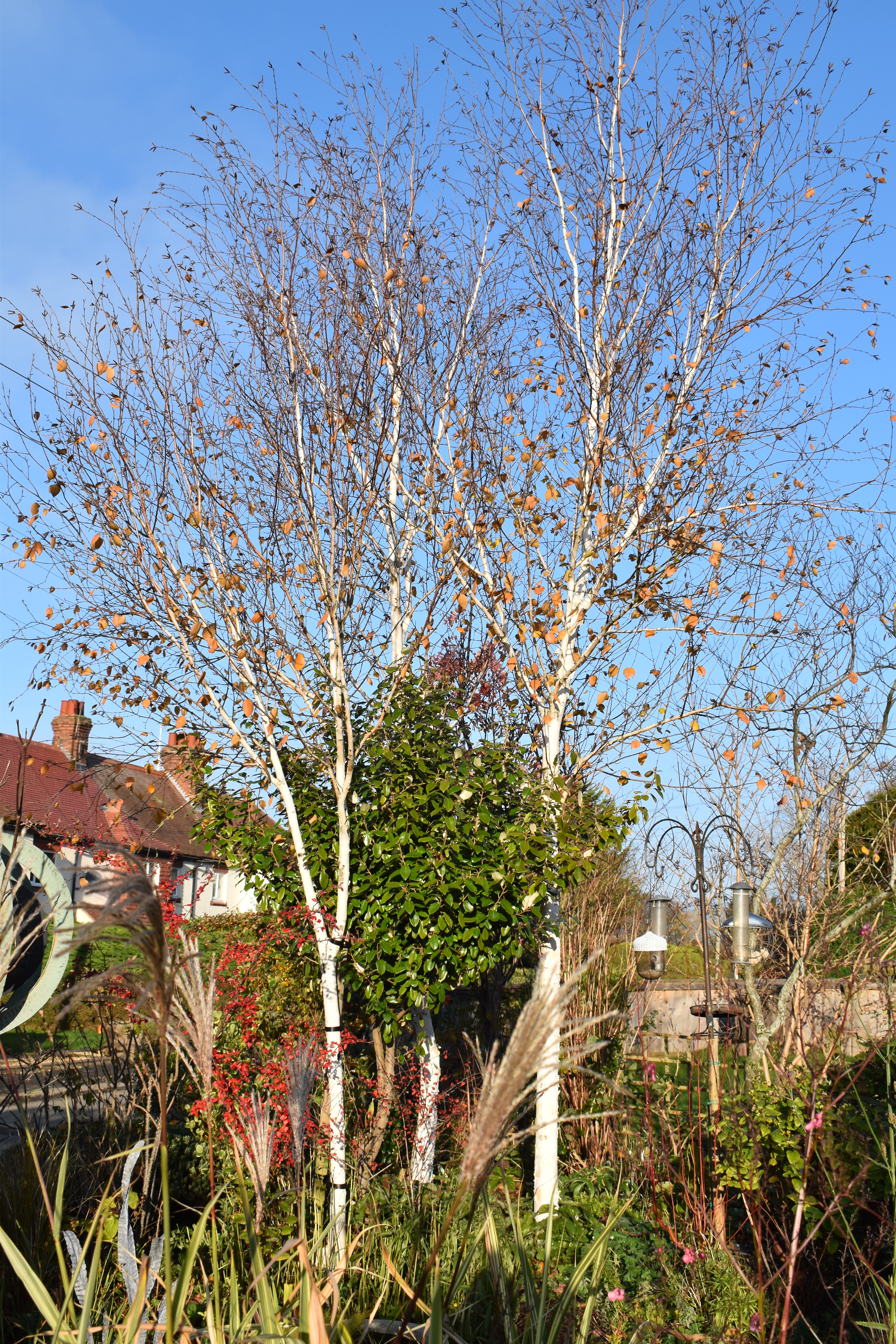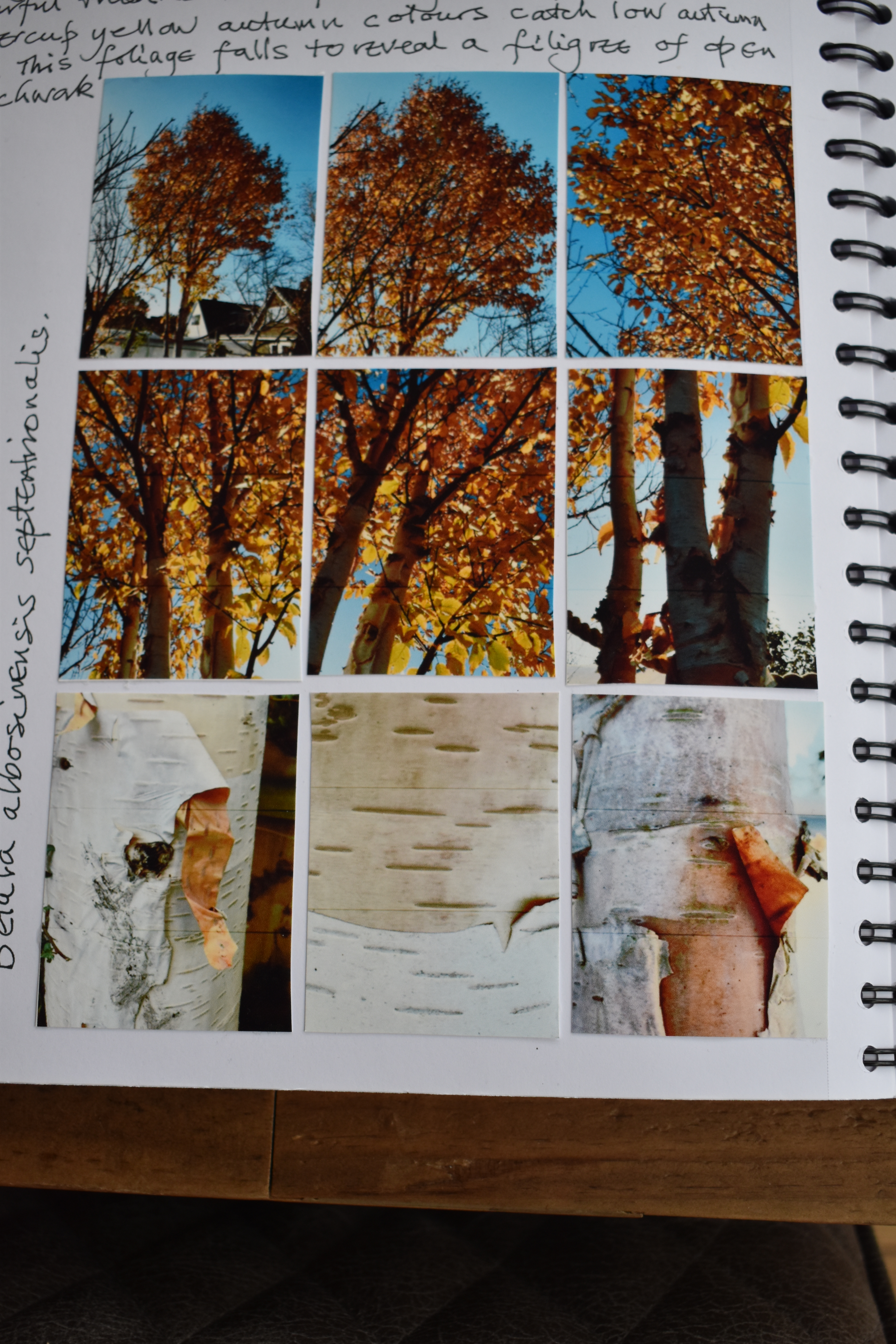 Concerning the birches I noted that, “My favourite tree family is Betula, the birches. They are interesting and impressive all year with pleated shiny bright green spring foliage alongside golden hanging catkins. Airy canopies with rustling foliage through the summer are supported on colourful trunks with peeling bark, and then buttercup yellow autumn colours catch low autumn rays. This foliage falls to reveal a filigree of open branch work.”