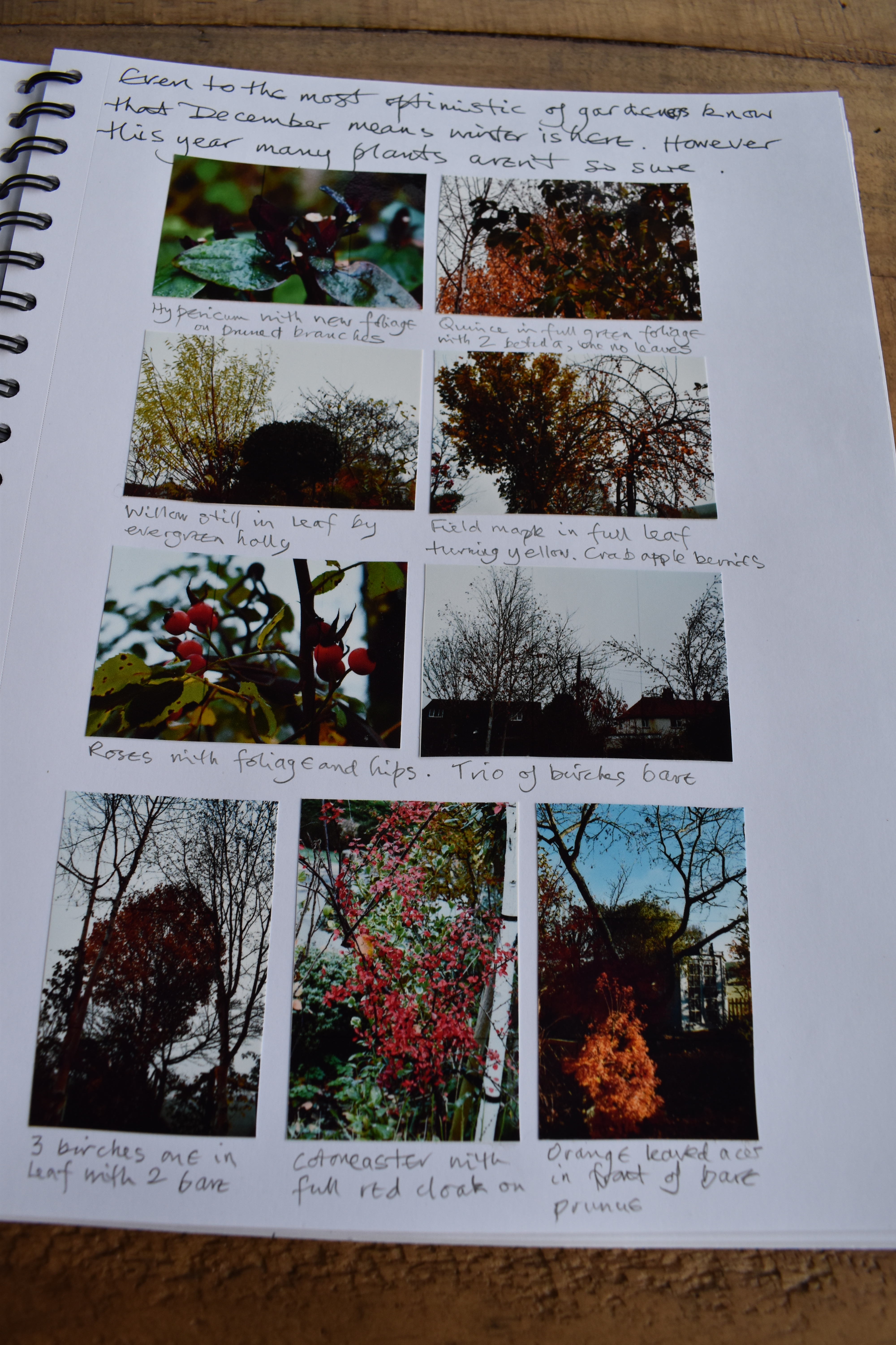 I finished off my December entries with a double page spread featuring some of our December tasks and finally winter foliage.