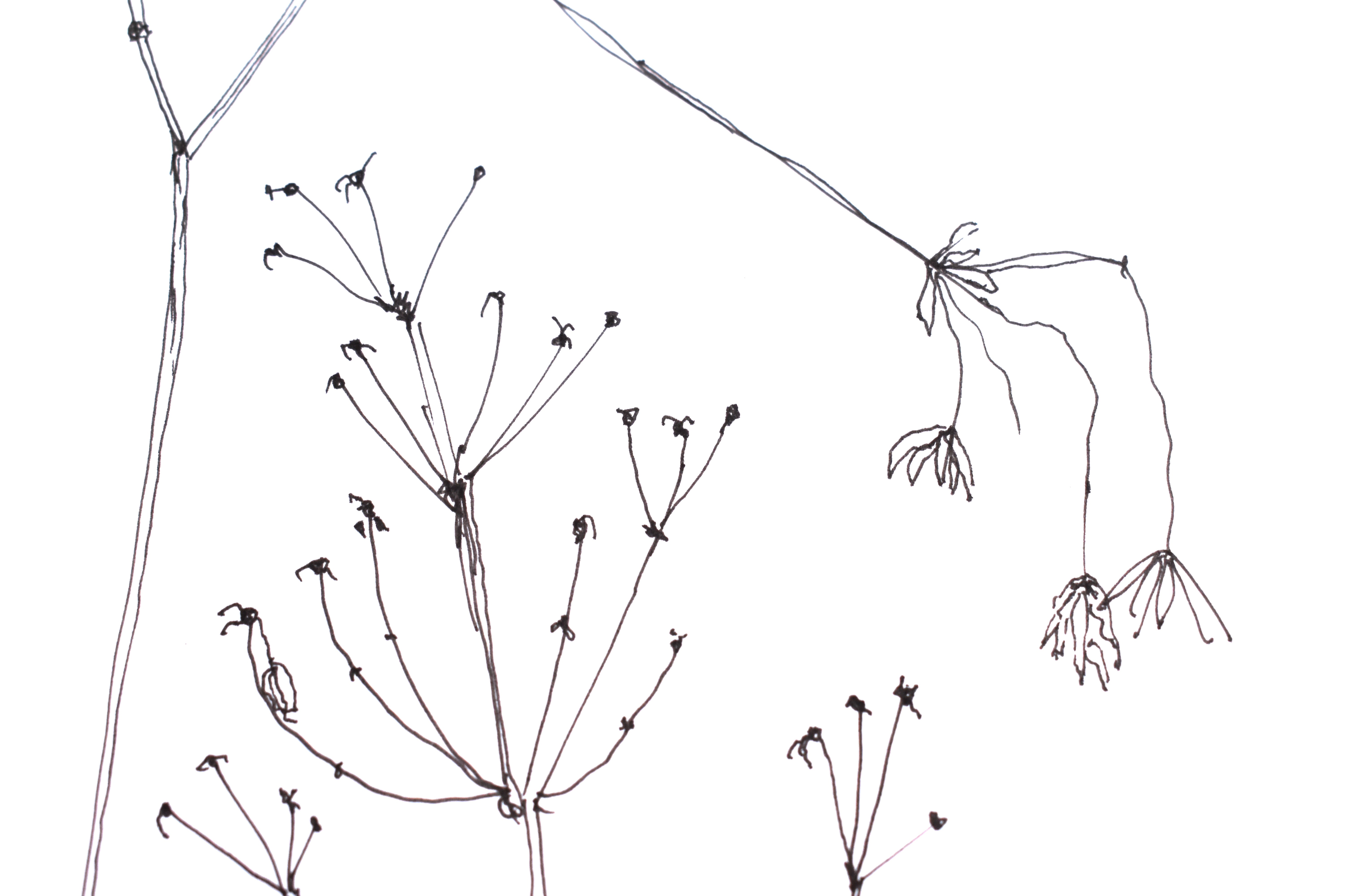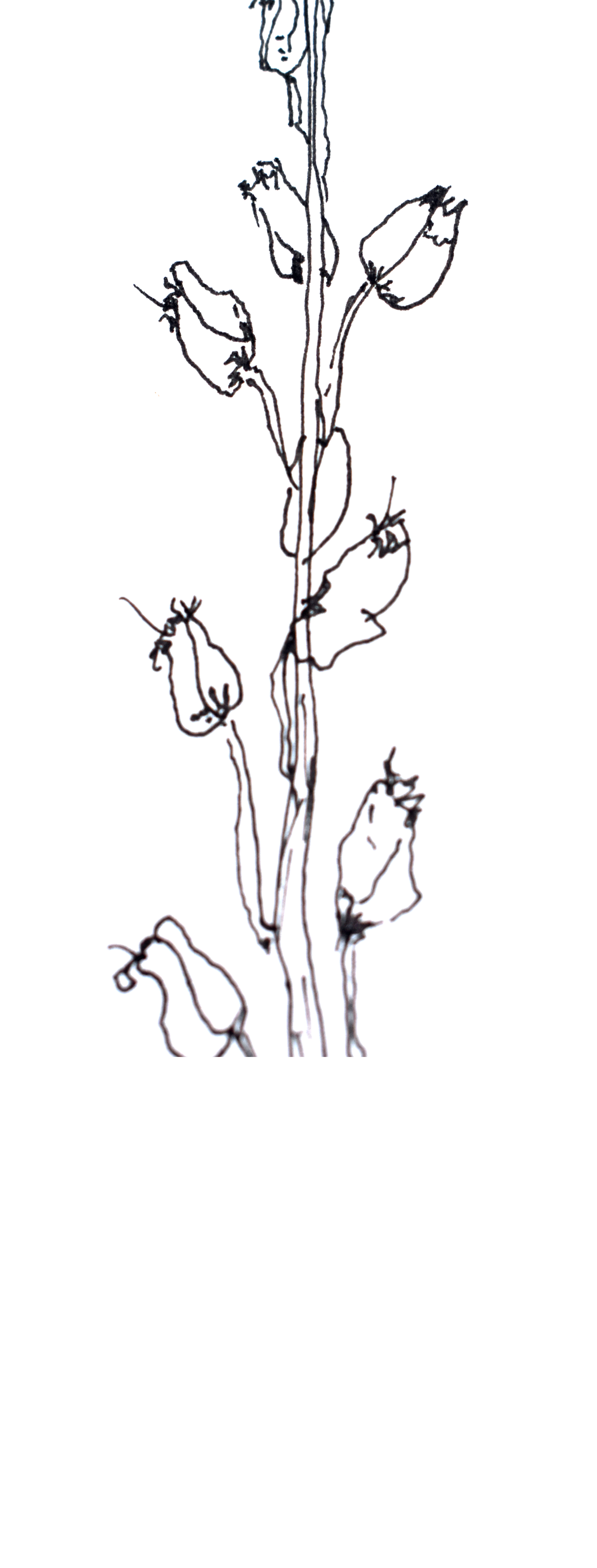 On the opposite page I returned to look at different seed heads and stems, but this time for my sketches I used very fine fibre pens in grey tones.