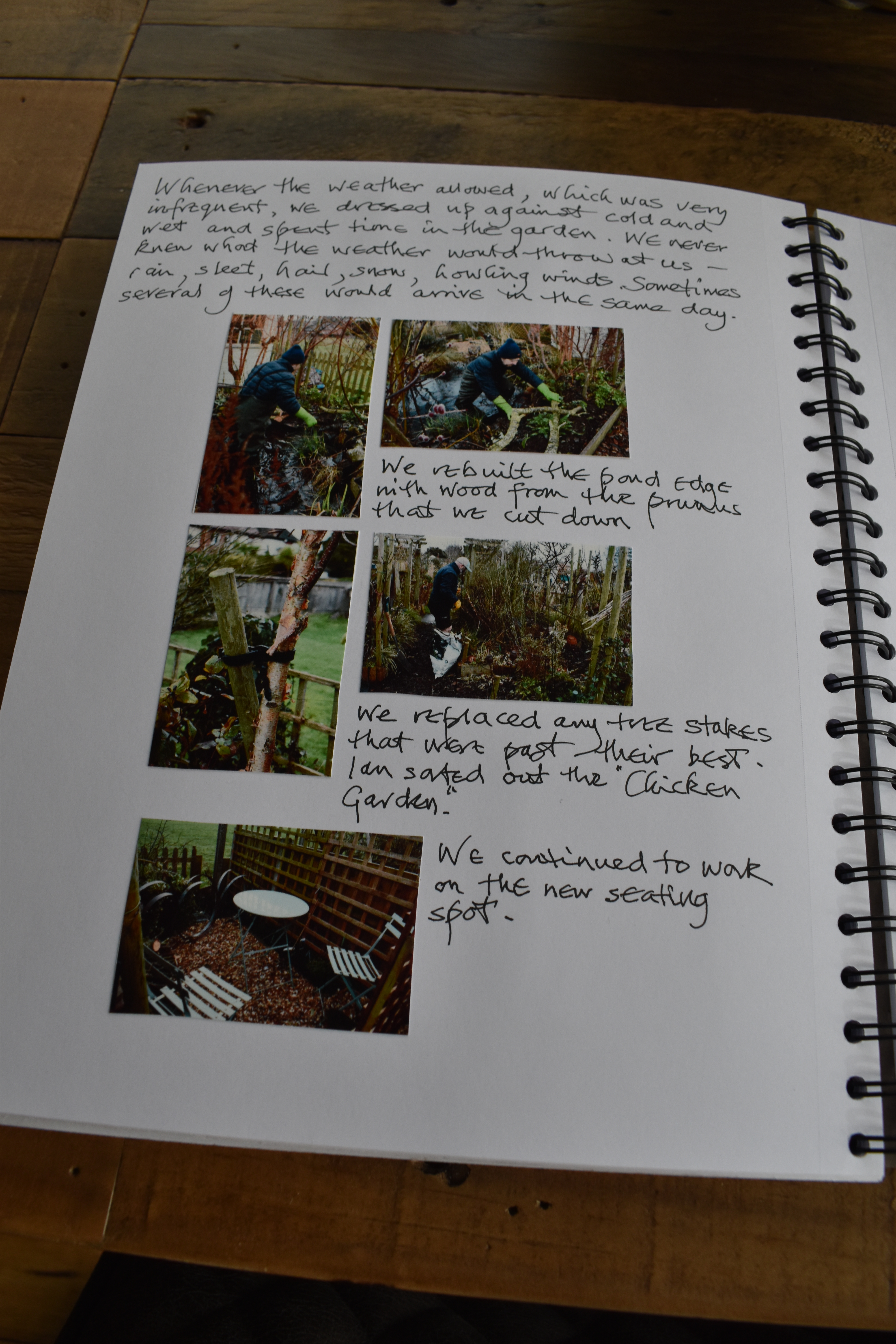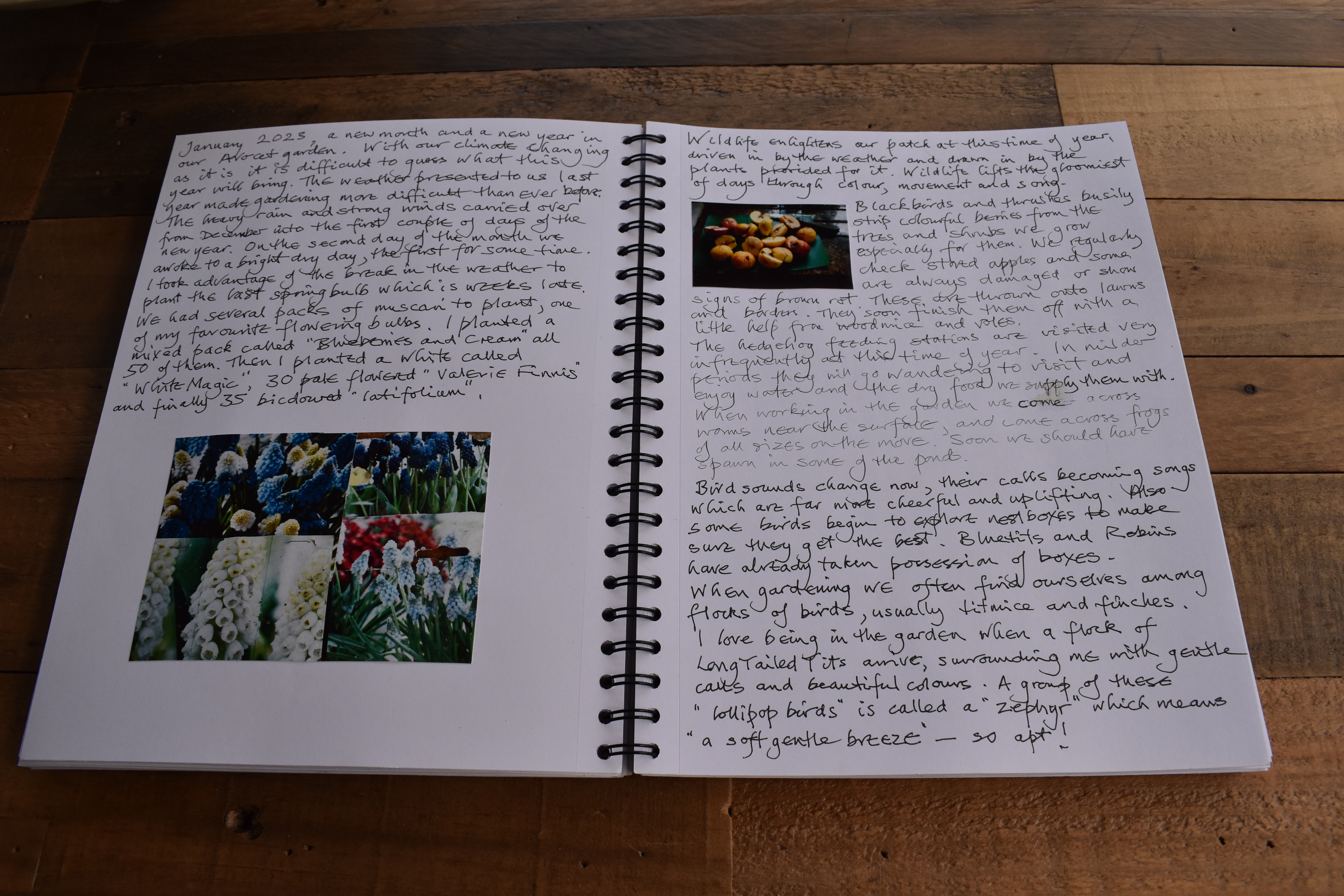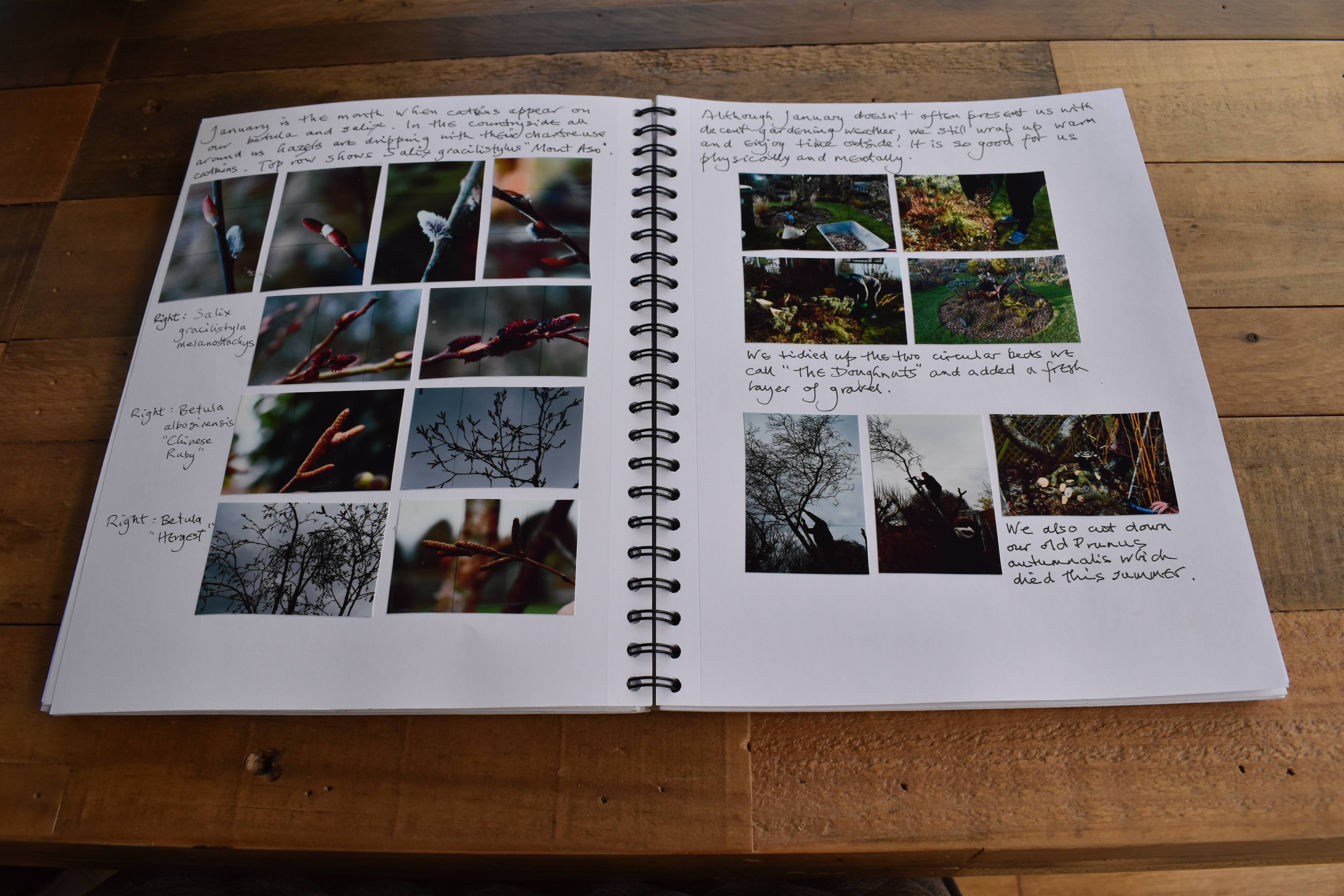 On the opposite page to these catkins was a page about working in the garden. I noted that, “Although January doesn’t often present us with decent gardening weather, we still wrap up warm and enjoy time outside! It is so good for us physically and mentally.”