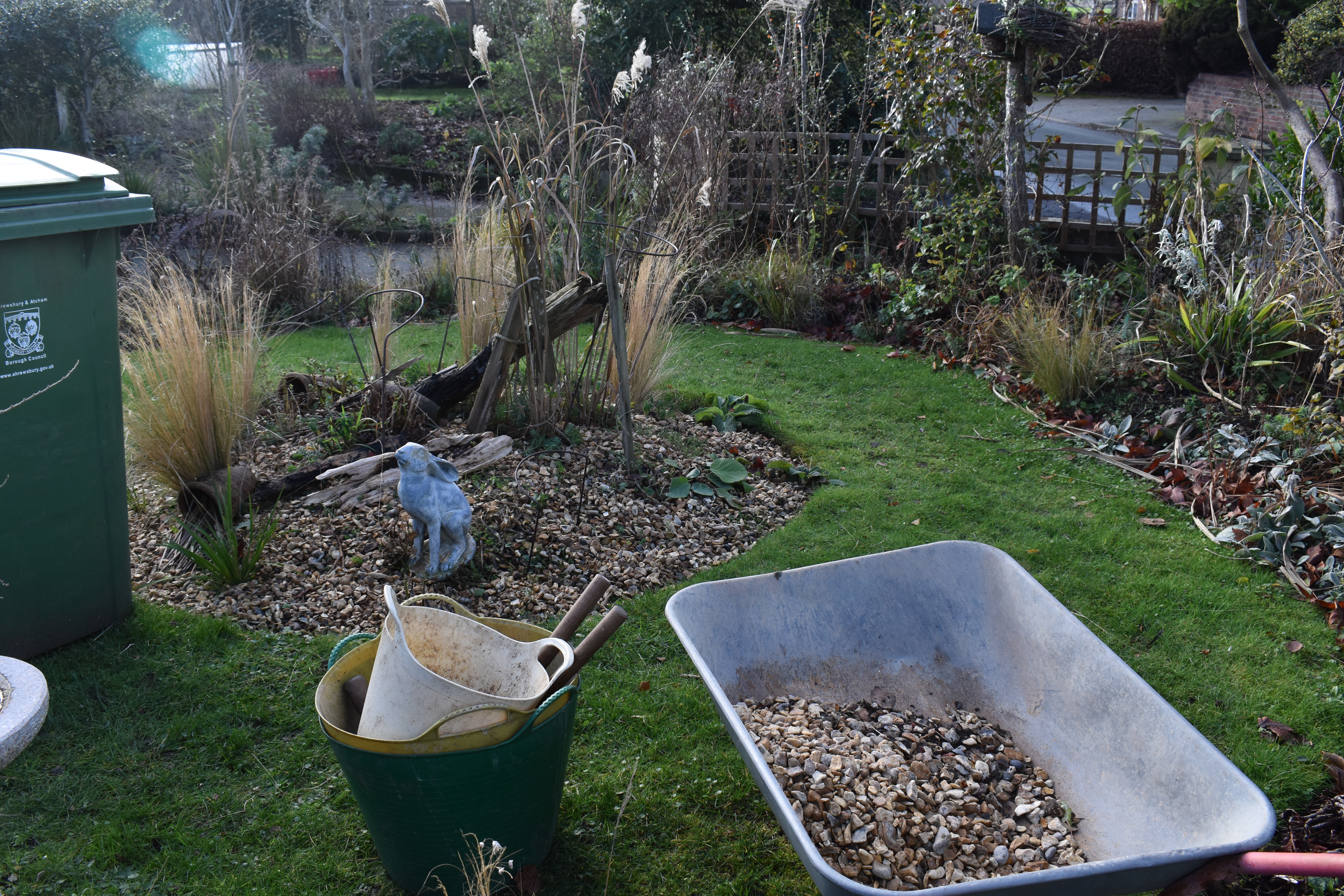 Ian cut down perennials in the Chicken Garden and we checked all tree stakes and ties.