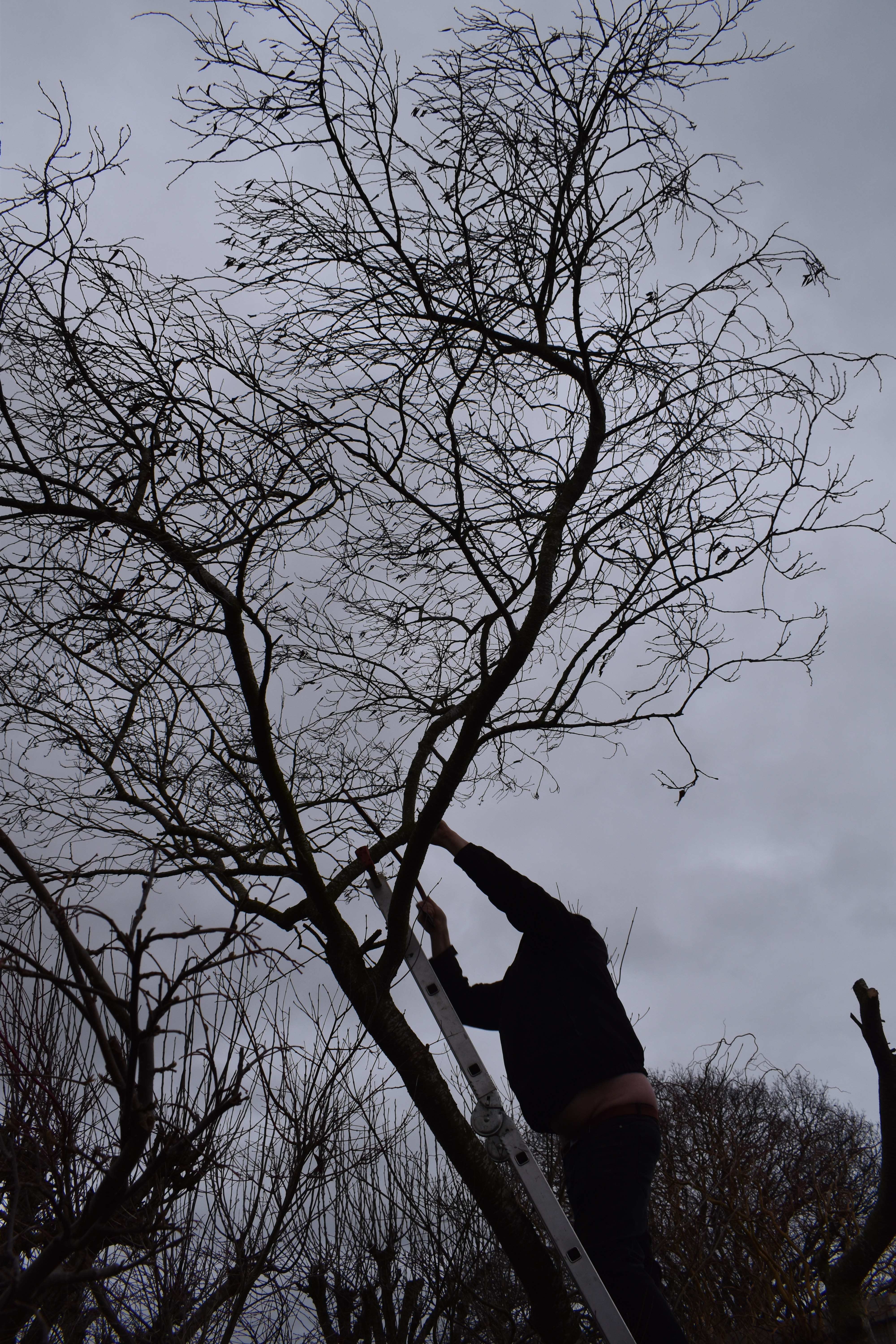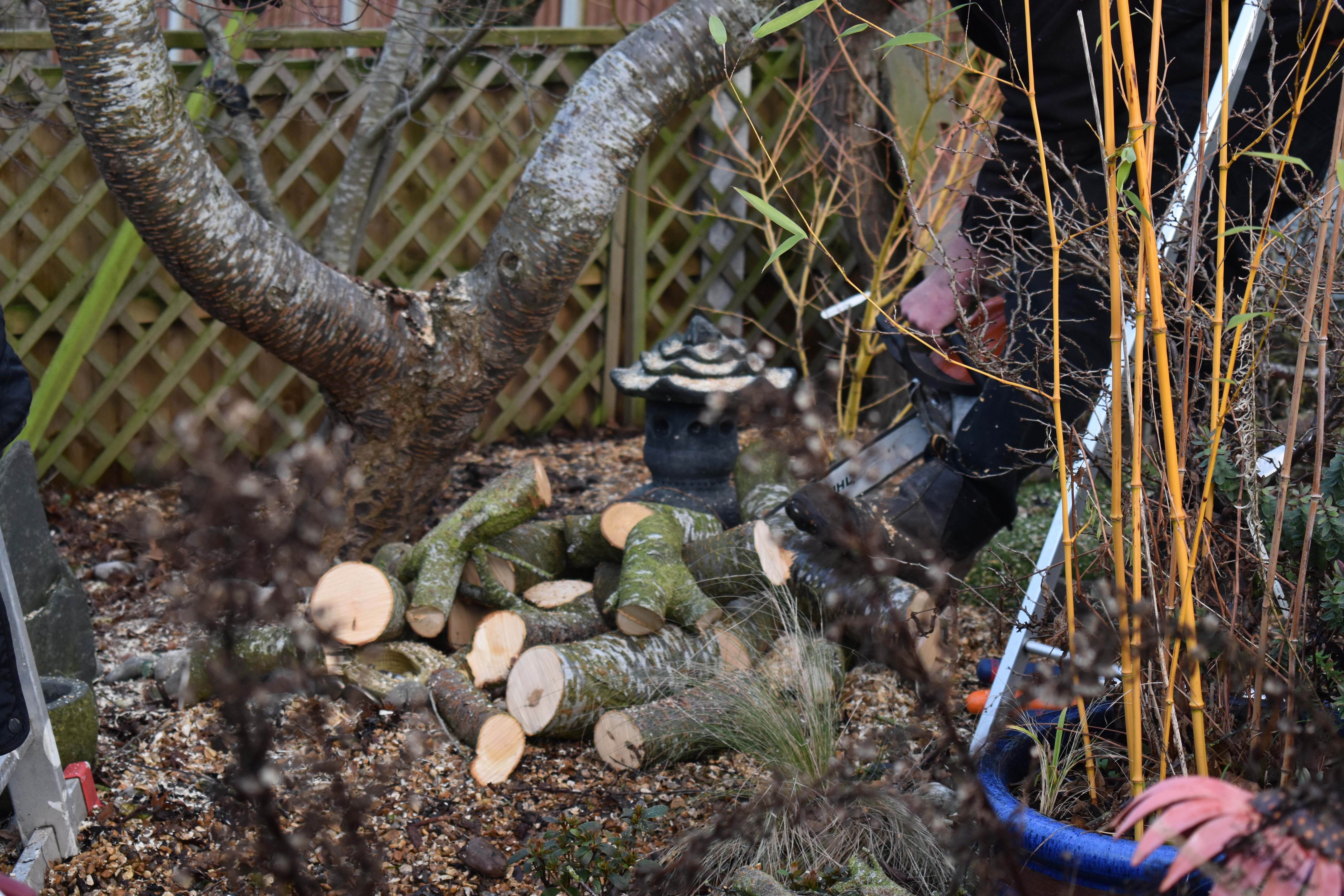 We also cut down our old Prunus autumnalis which had died in the summer. We had our daughter Jo and her partner Ed to do the heavy work.