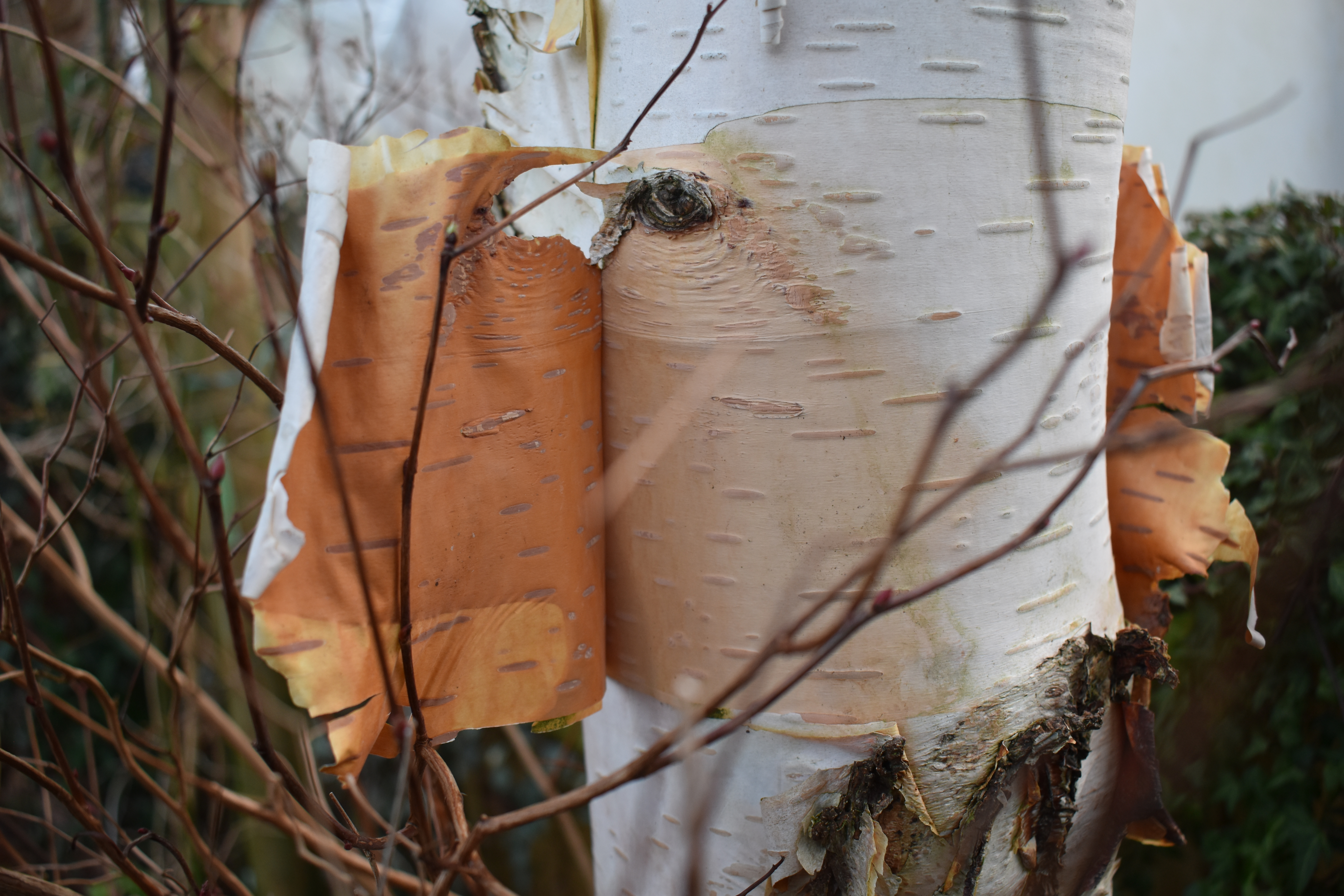 On the opposite page, the penultimate page for this month, I look at another two betulas with peeling bark plus a prunus that does the same.