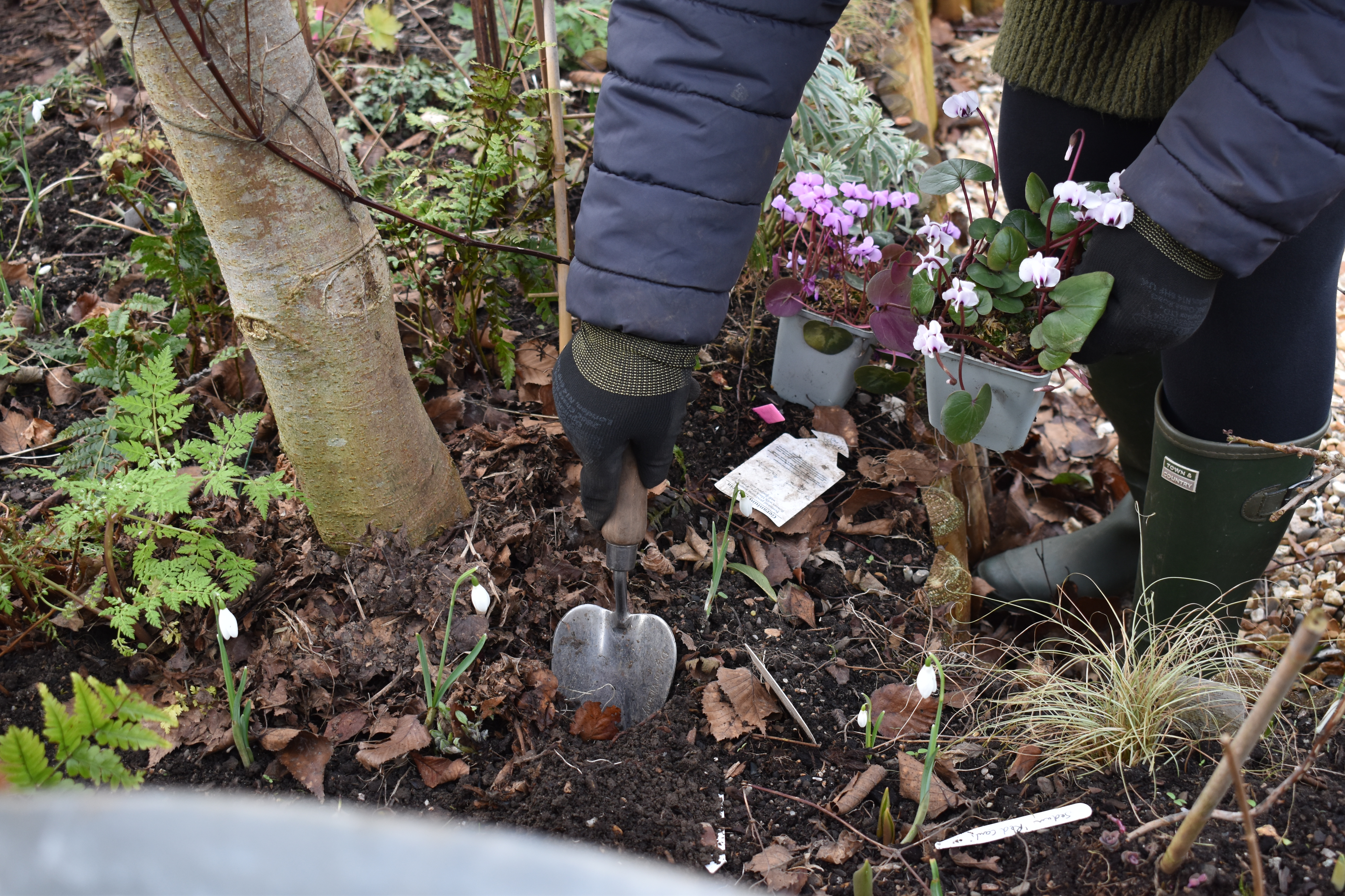 Jude planted some beautiful cyclamen given to us by gardening friends who came for lunch.
