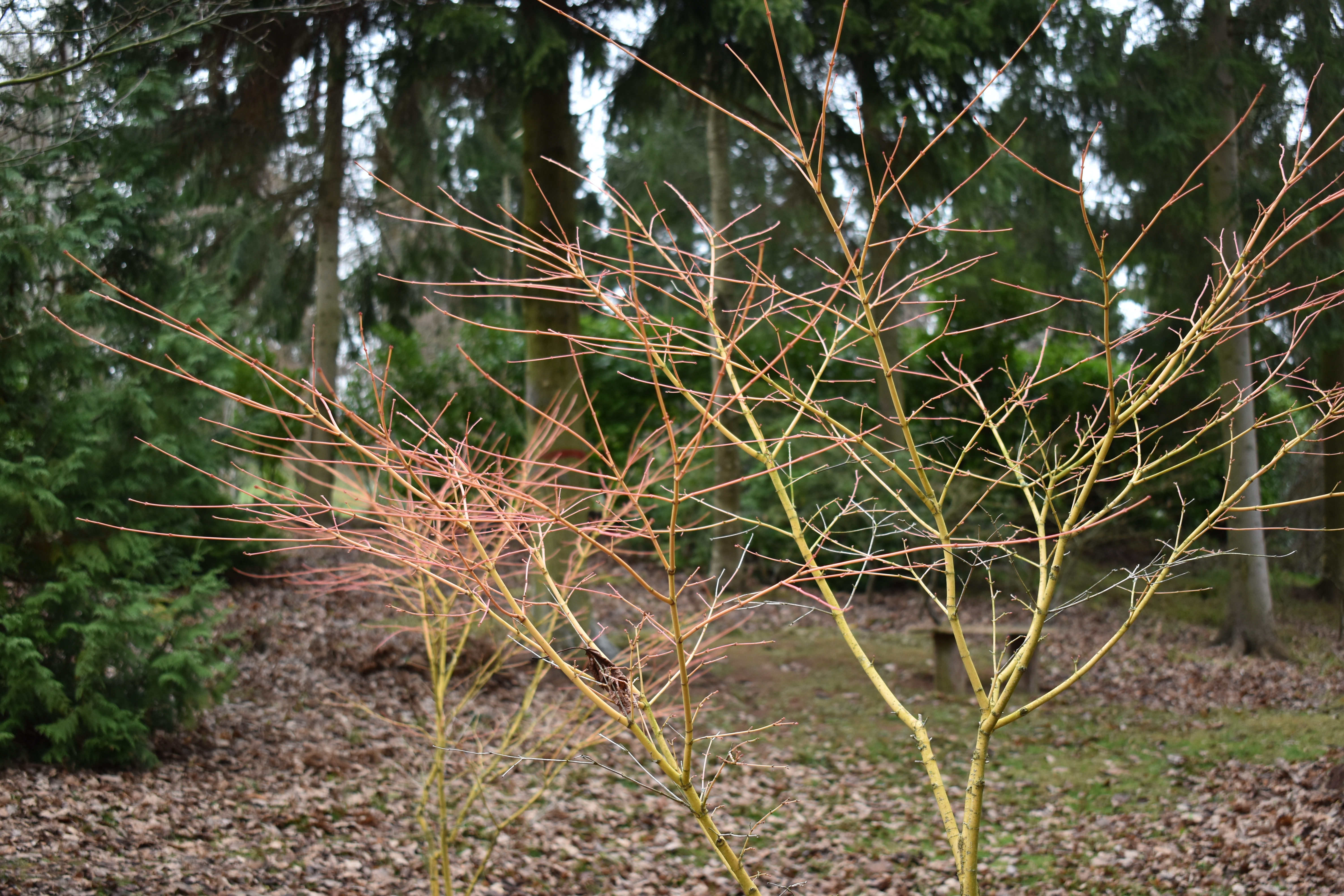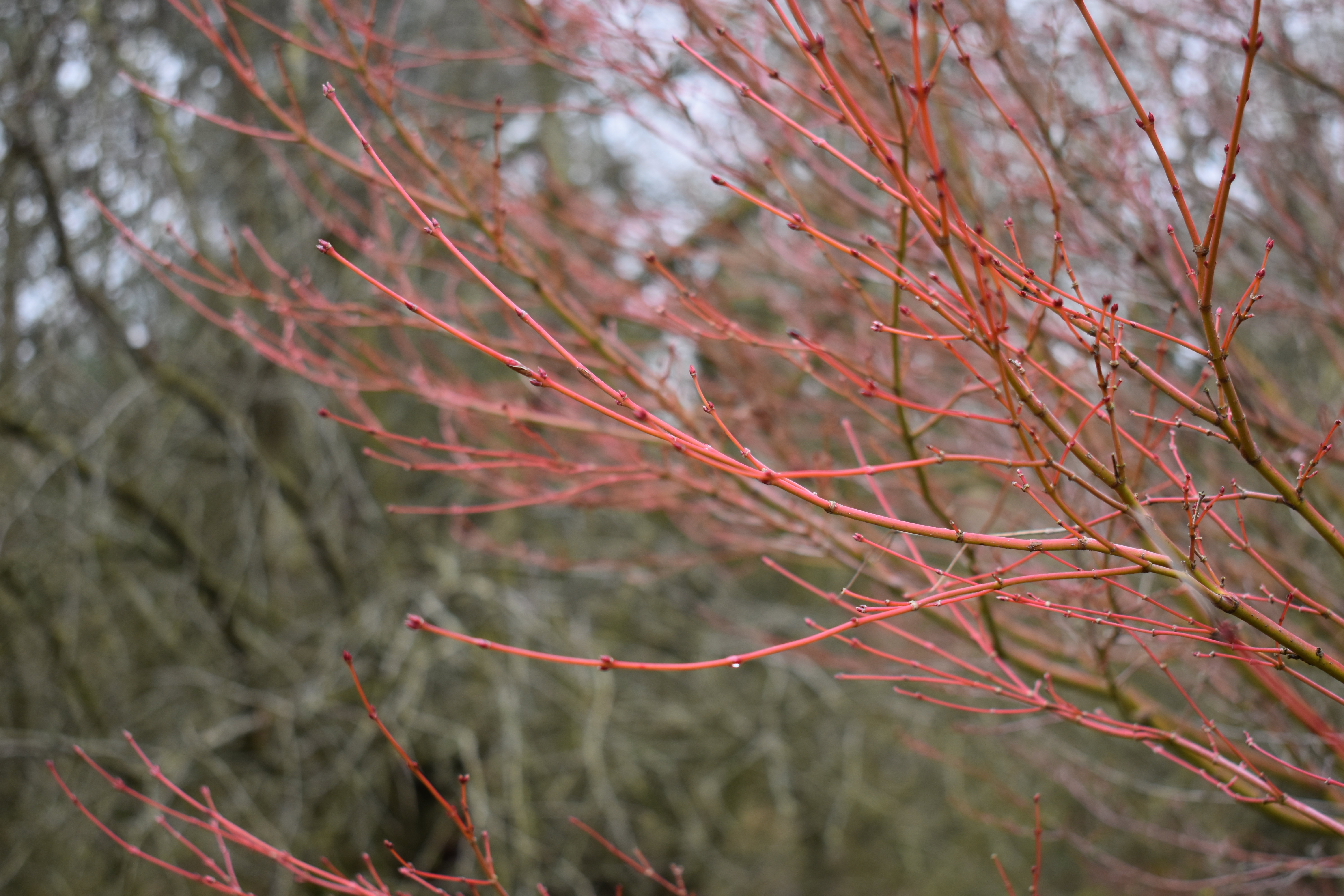 Coloured stems of shrubs and coloured and patterned bark of trees become more obvious once the leaves have fallen and exposed them.