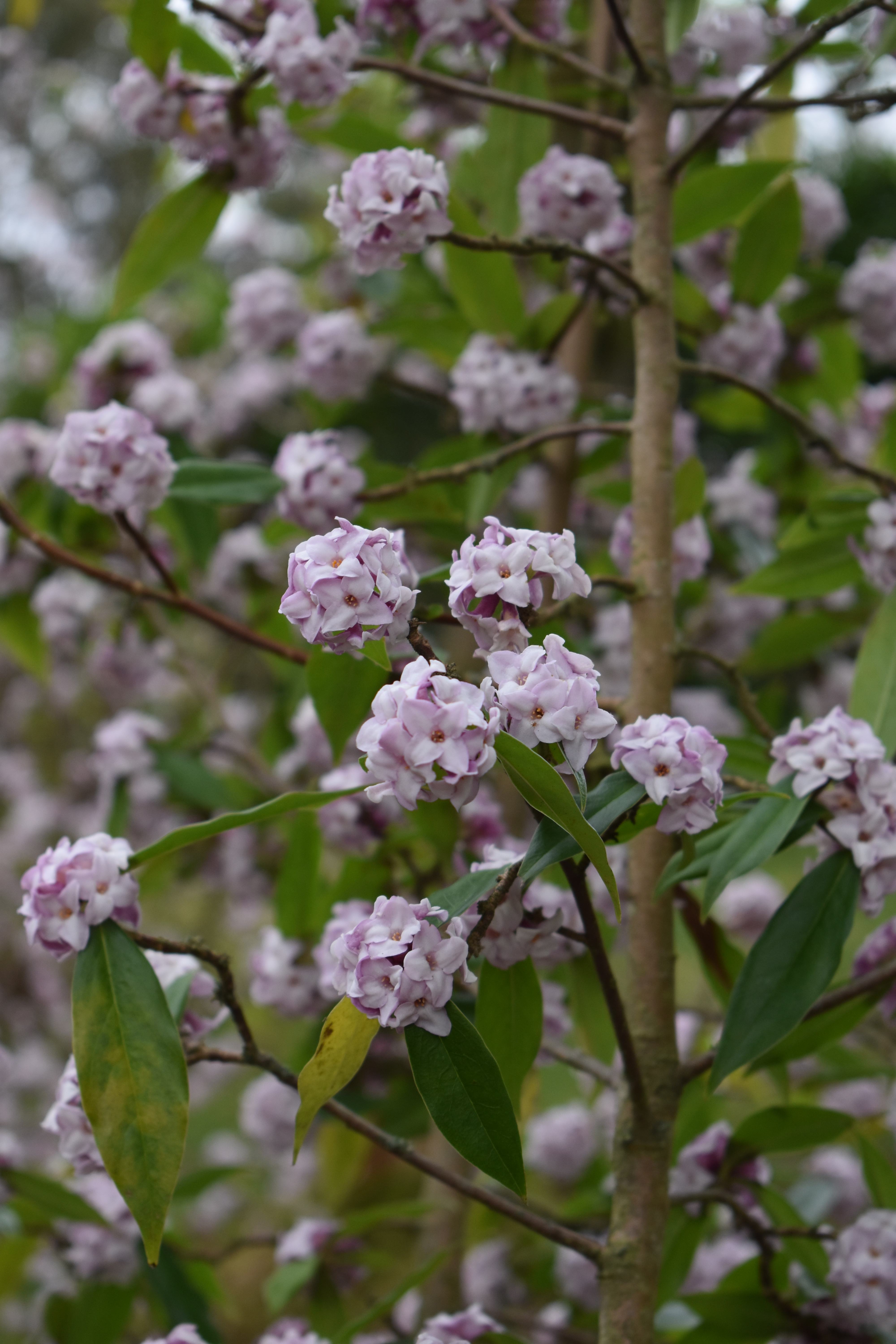 The next pair of pictures show two different daphnes, on the left is the wonderful Daphne bhuloa ‘Jacqueline Postill’ and on the right Daphne odora ‘Aureomarginata’, both beautifully scented.