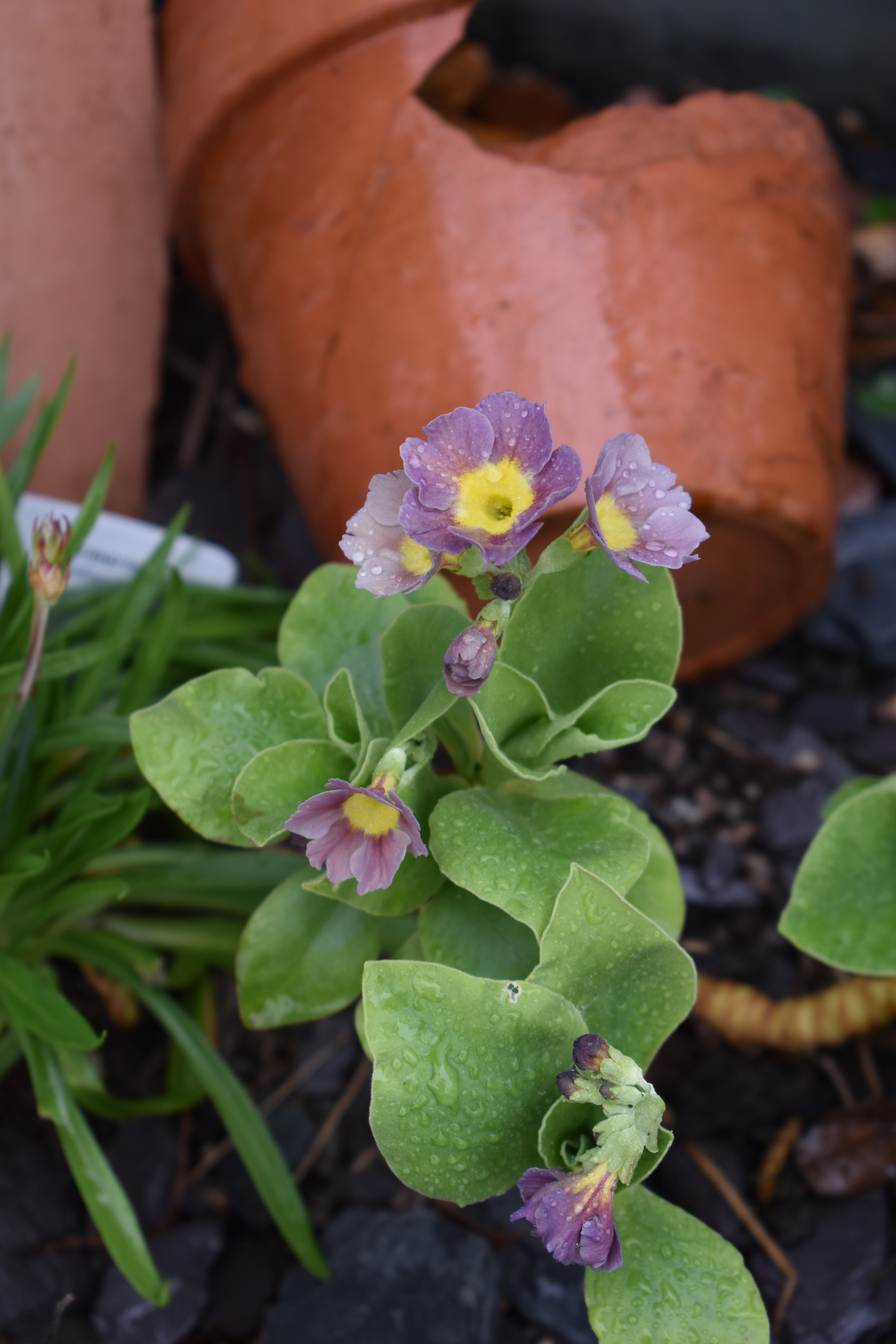 From aeoniums we moved on to look at alpines. I noted that, “We grow alpines in various places around the garden, in a scree garden behind the glasshouse, in pots and stone containers and along the edge of the drive on the Chatto Garden. Our et and cold autumns and winters are not appreciated by alpine plants which often don’t last long.”