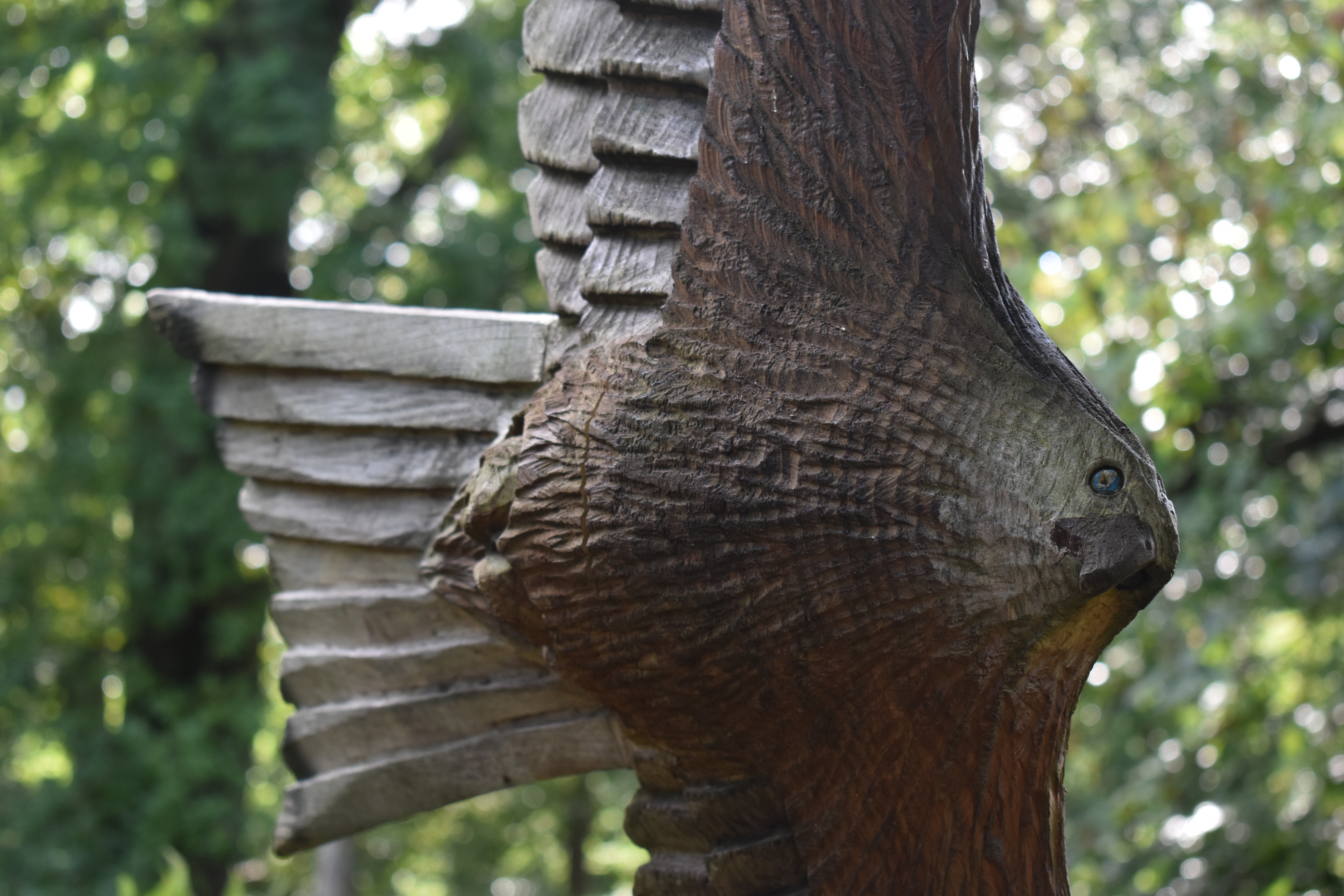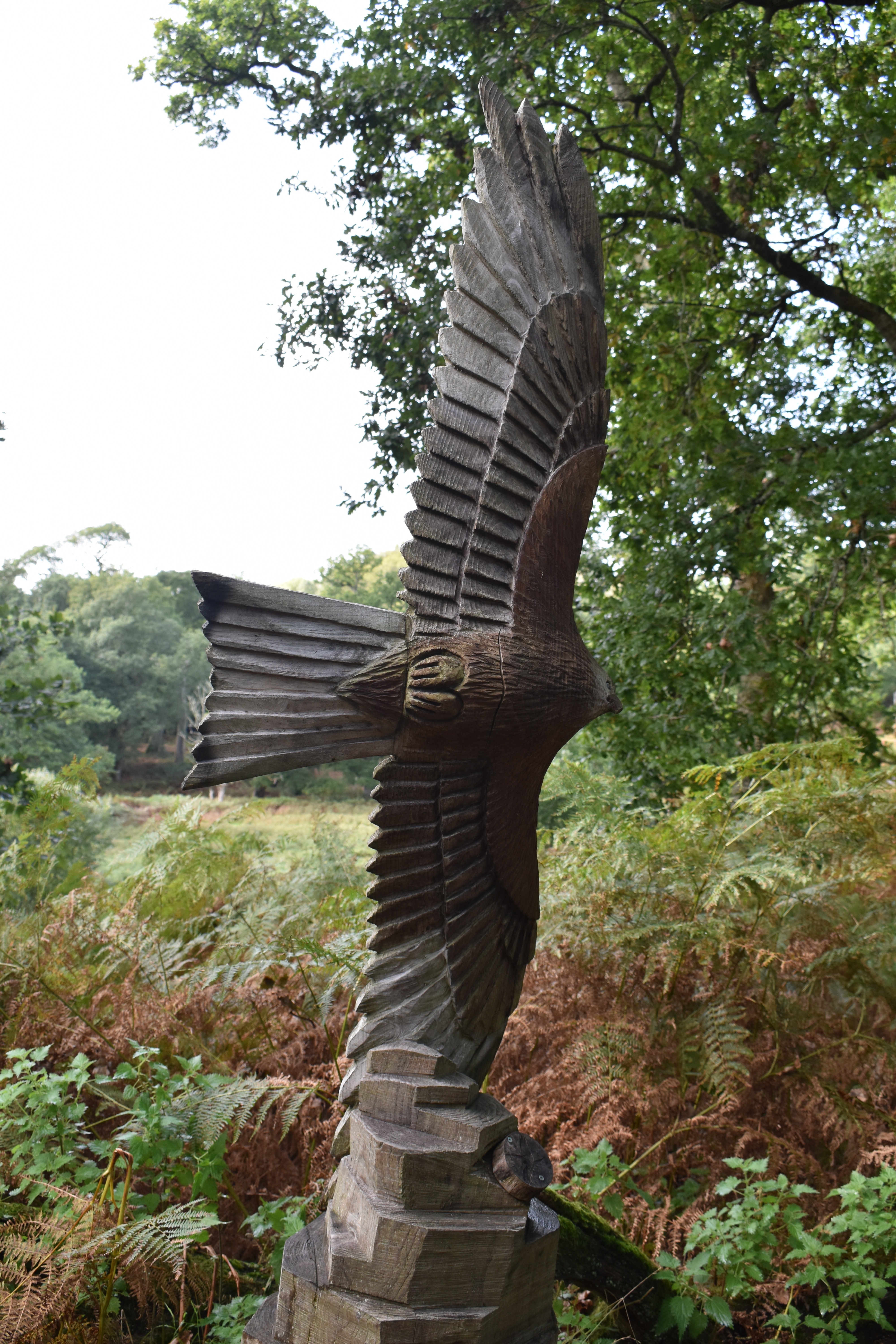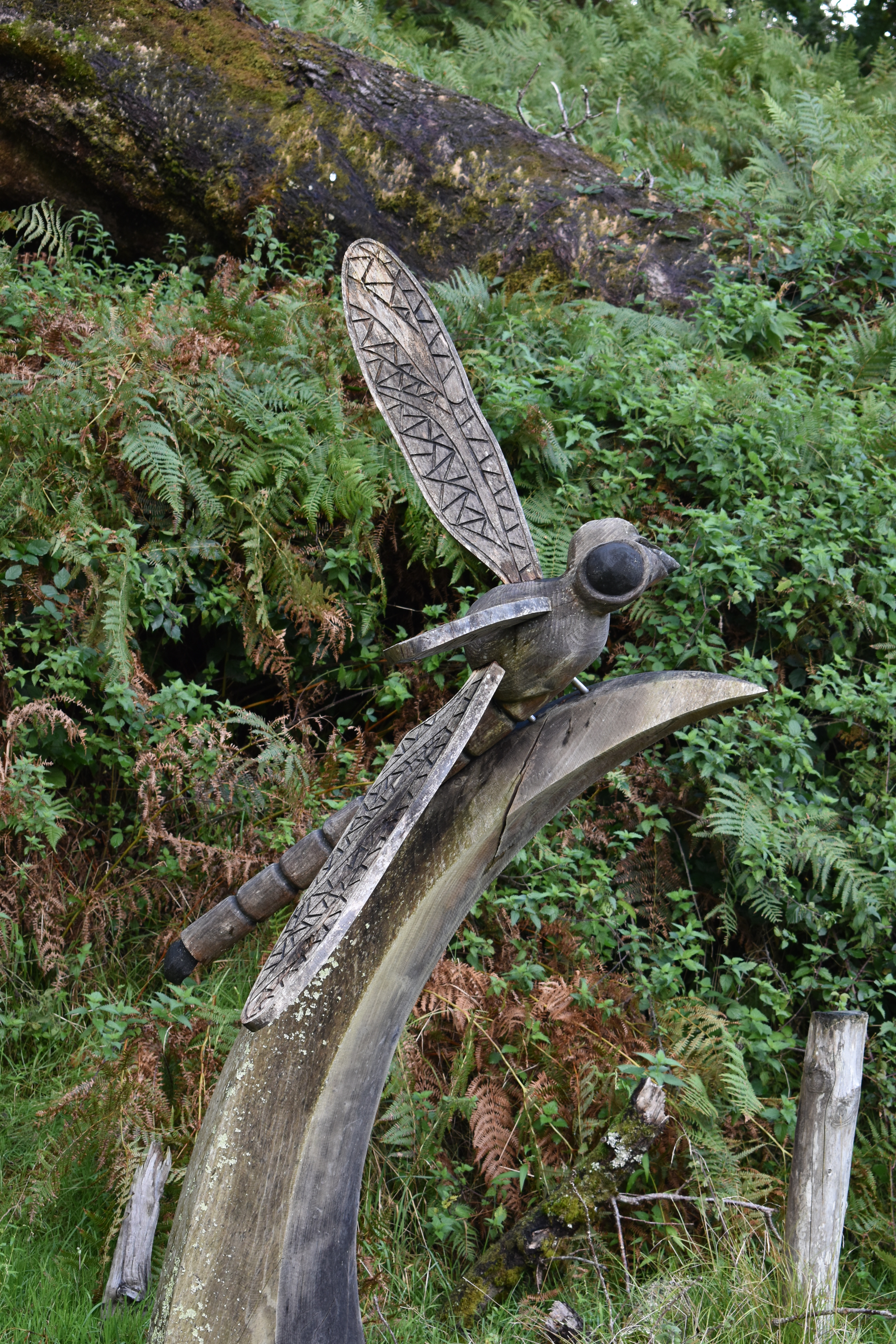 As in many woodlands accessible to the public the trees and herbaceous layer plants were joined by sculptural pieces made from wood, some a little twee such as the first two photos but the Kite piece was beautiful and evocative.