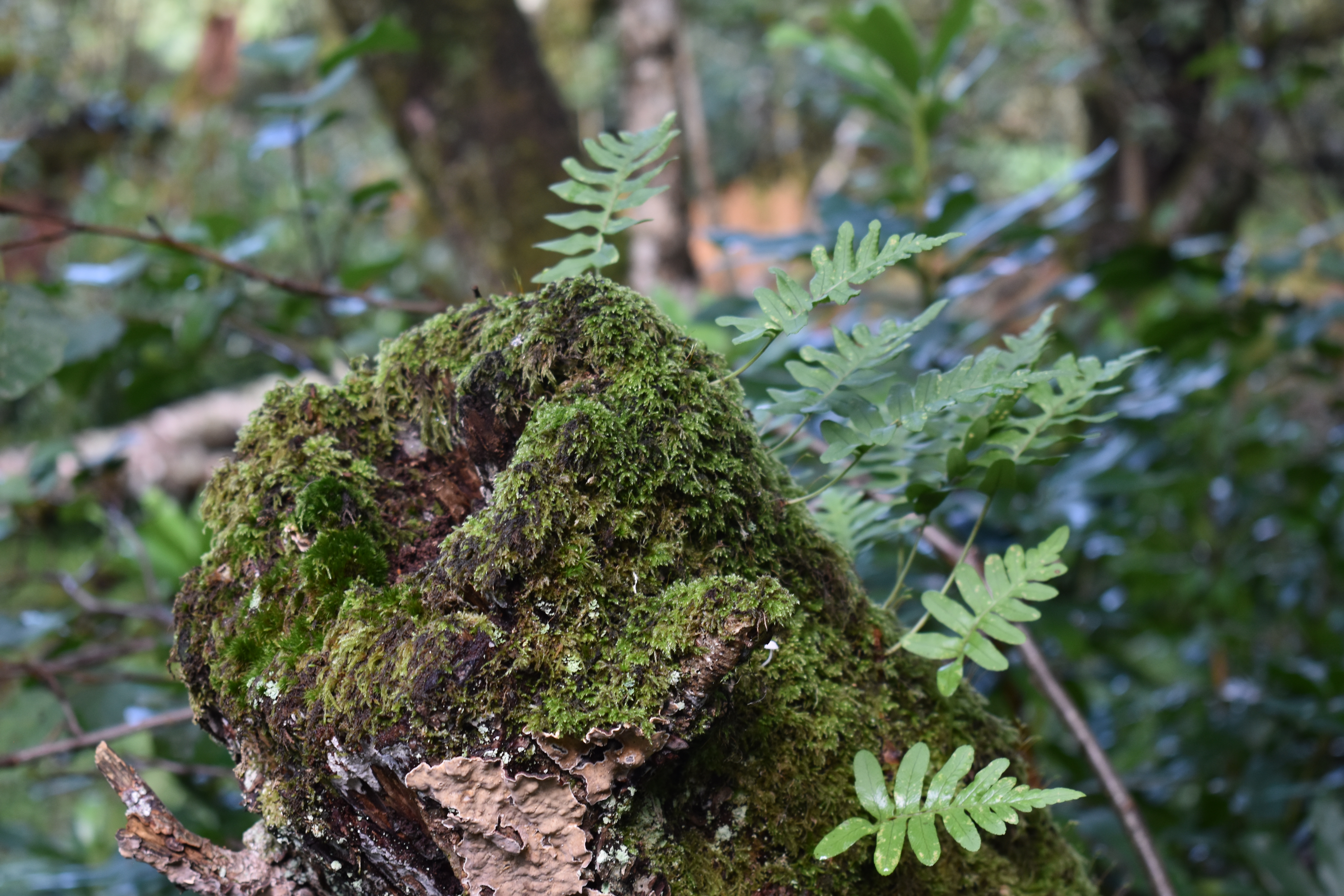 We walked following the blue track which took us next through a completely different environment called ‘Bog Wood’. It was a habitat that we now recognise as our own ‘temperate rain forest’ with water in the form of clear shallow streams and pools. So many trees had fallen and those still upright were stunted and covered in carpets of mosses, lichen and ferns. It felt and looked so beautiful!