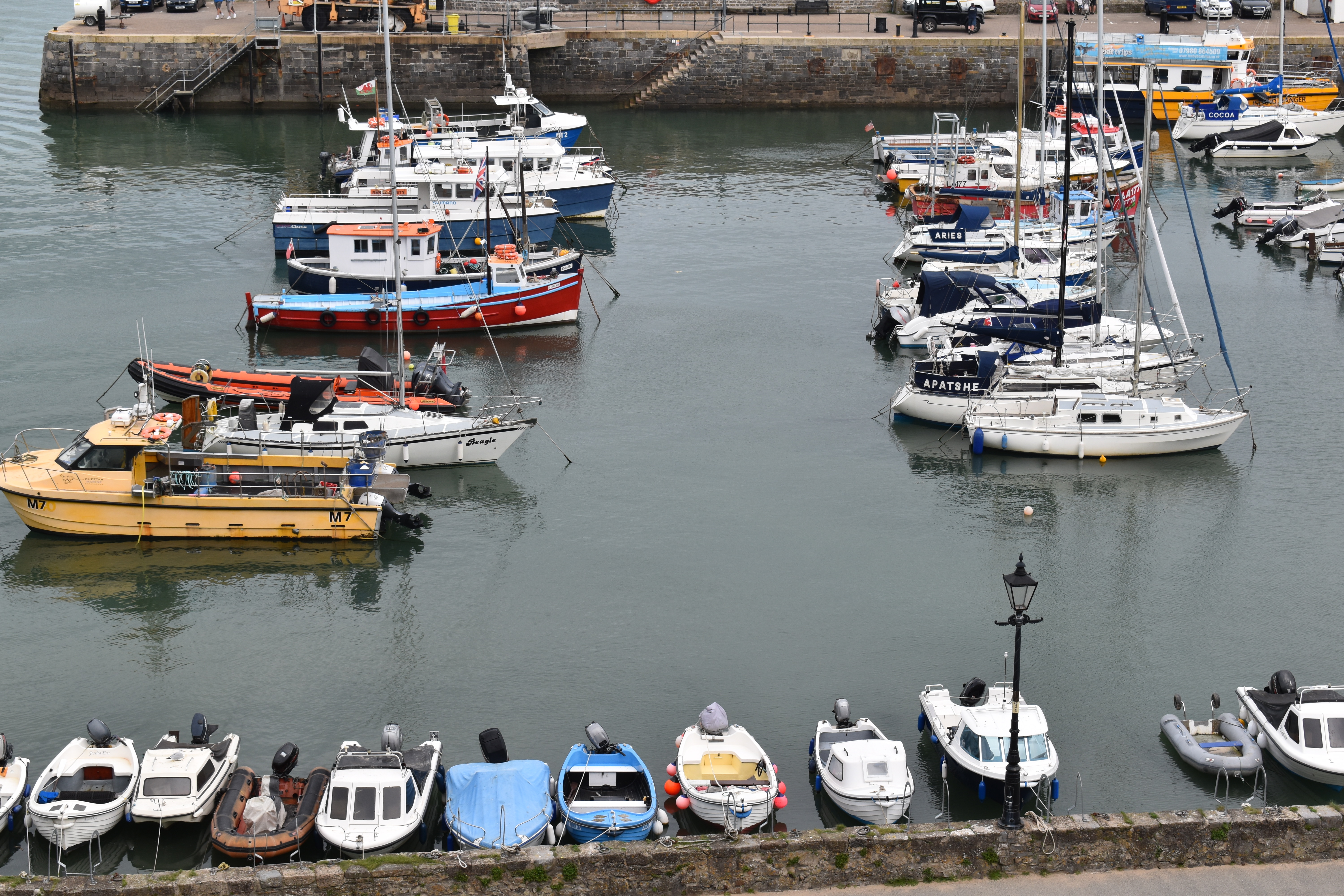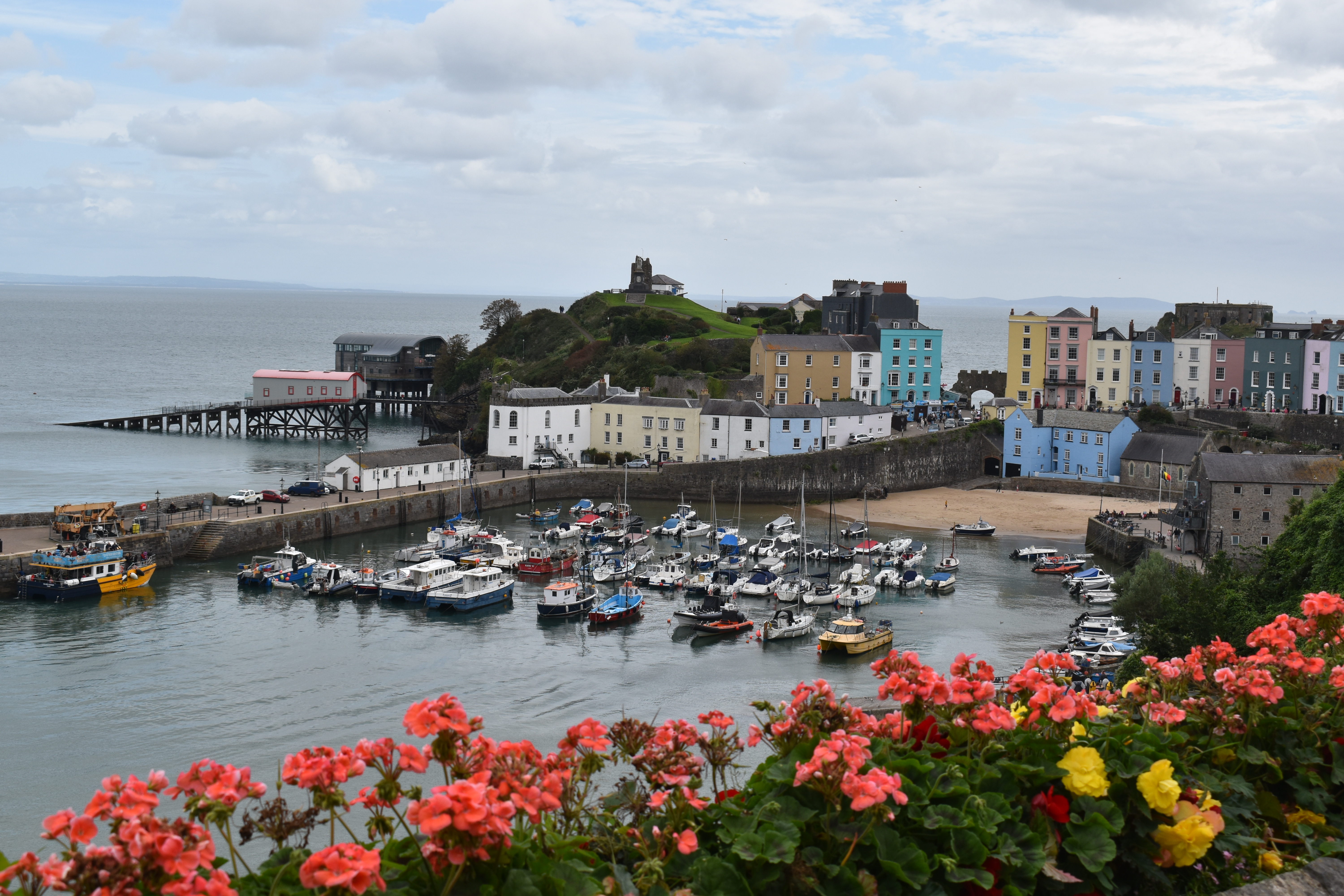 The place that attracts most visitors is probably the harbour area with its small boats from fishing boats to large catamarans used to take tourists out to nature hotspots around the island. The approach to this part of Tenby affords us the opportunity to look down over the harbour.