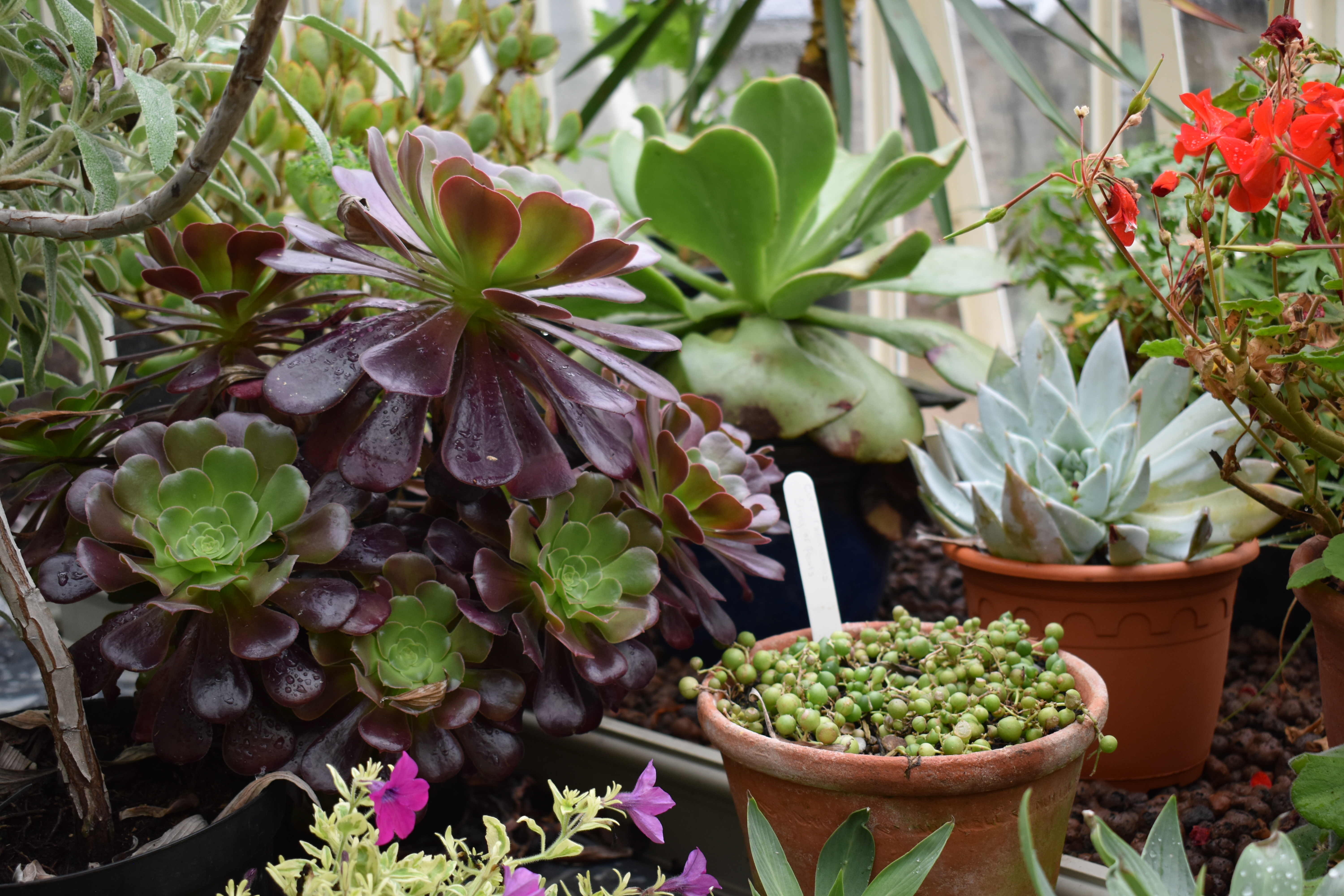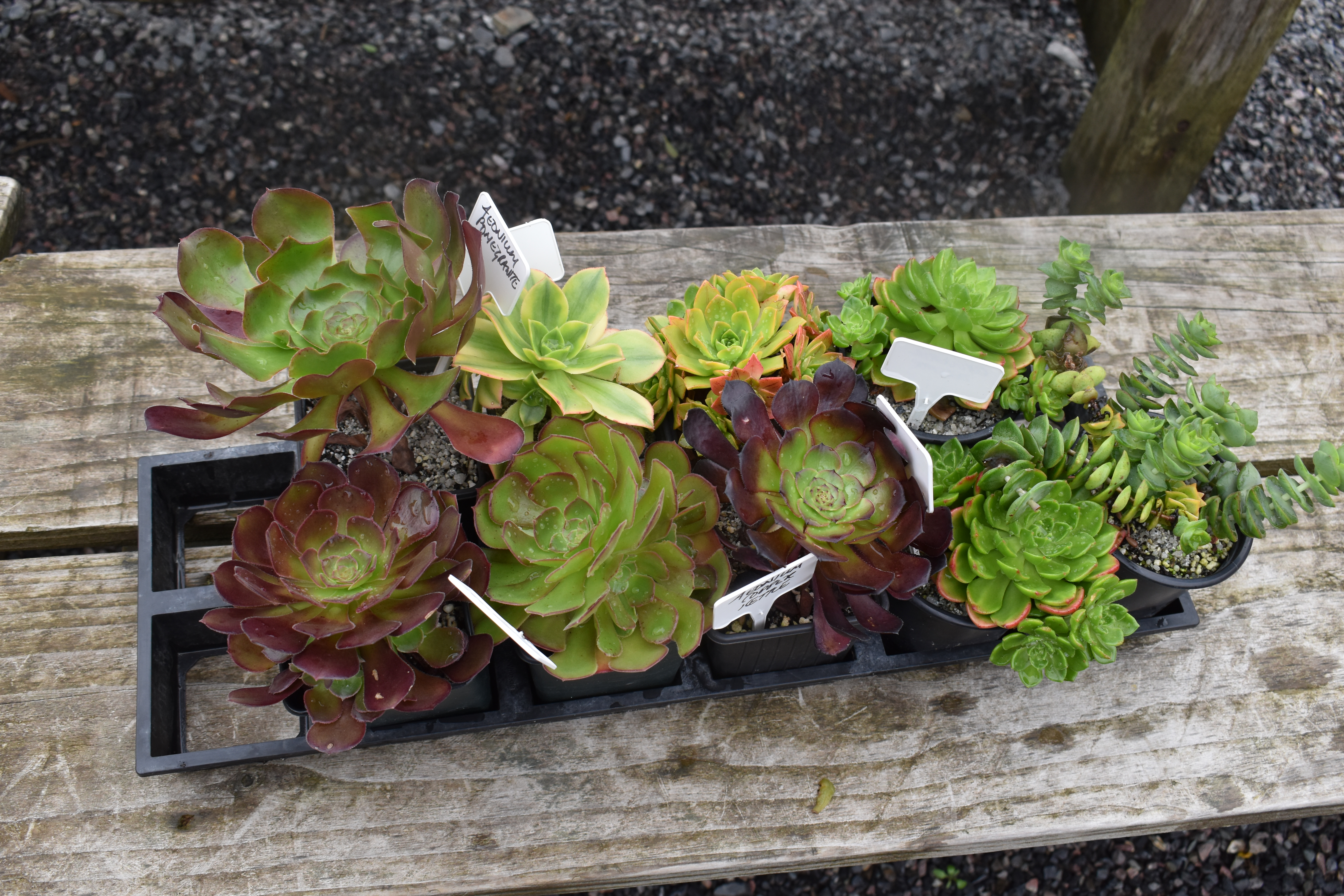 Finally we studied all the succulents for sale and selected a dozen or so mostly aeonium to add to my collection.