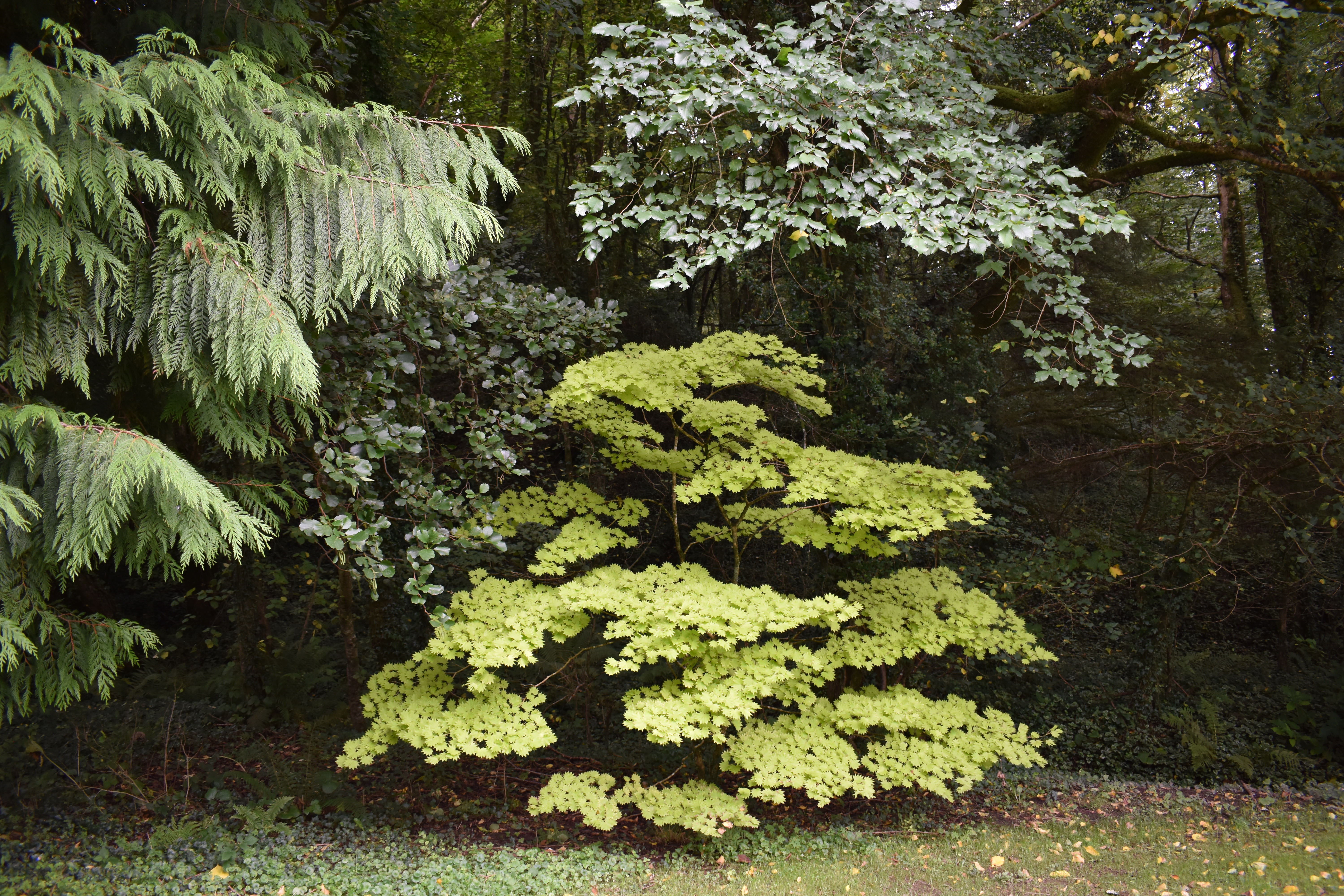 Some splashes of colour came from the woodland planting of shrubs and perennials.
