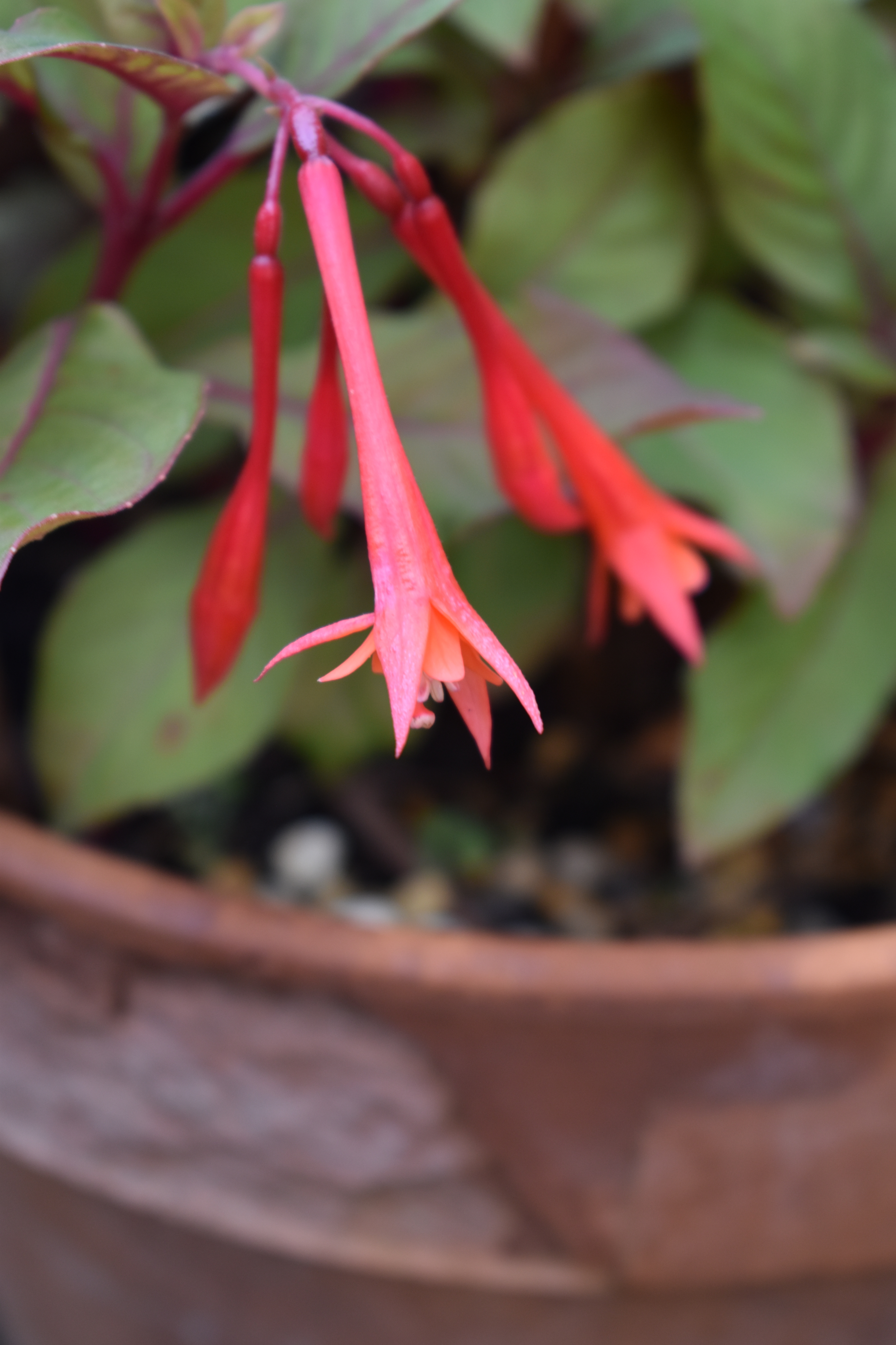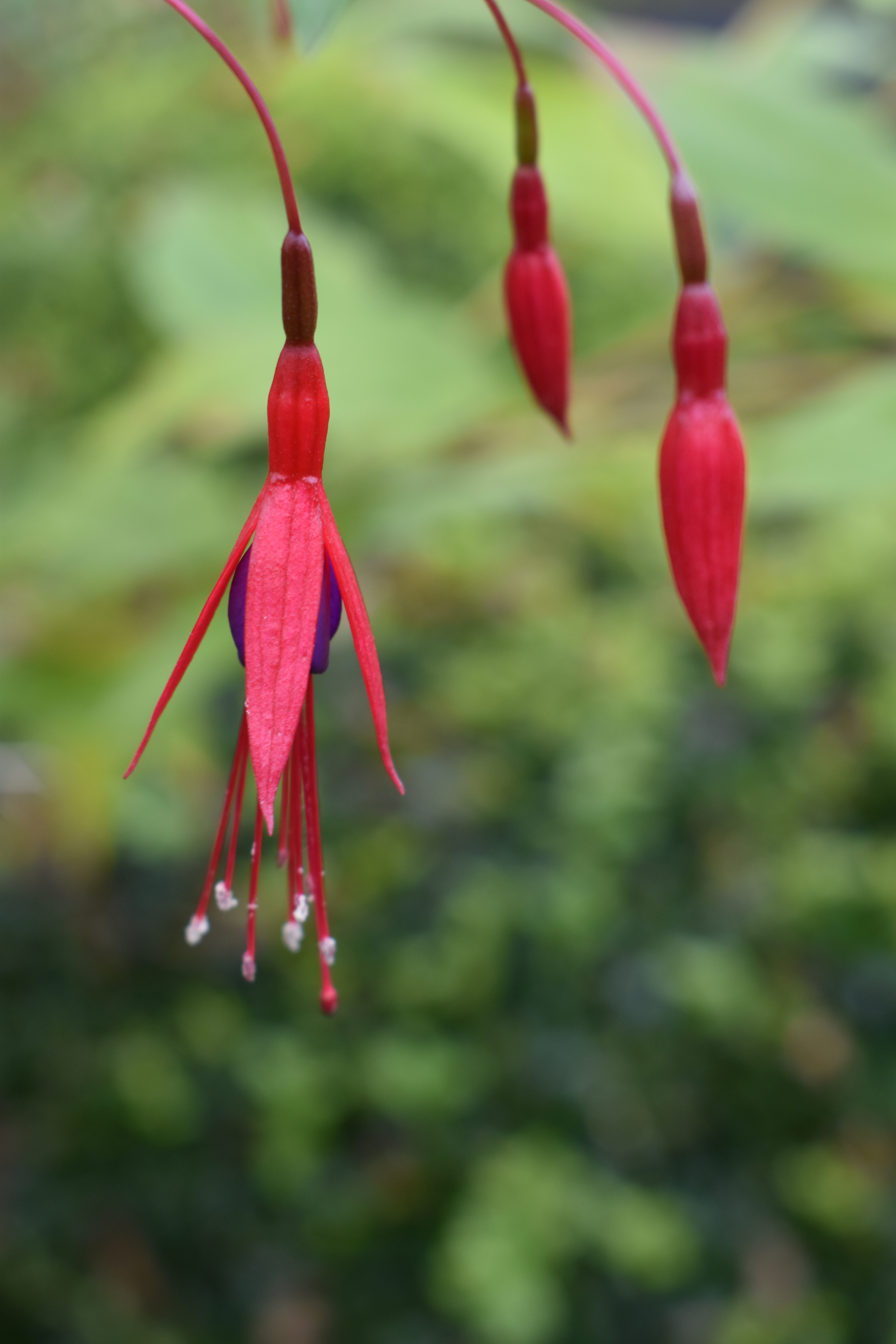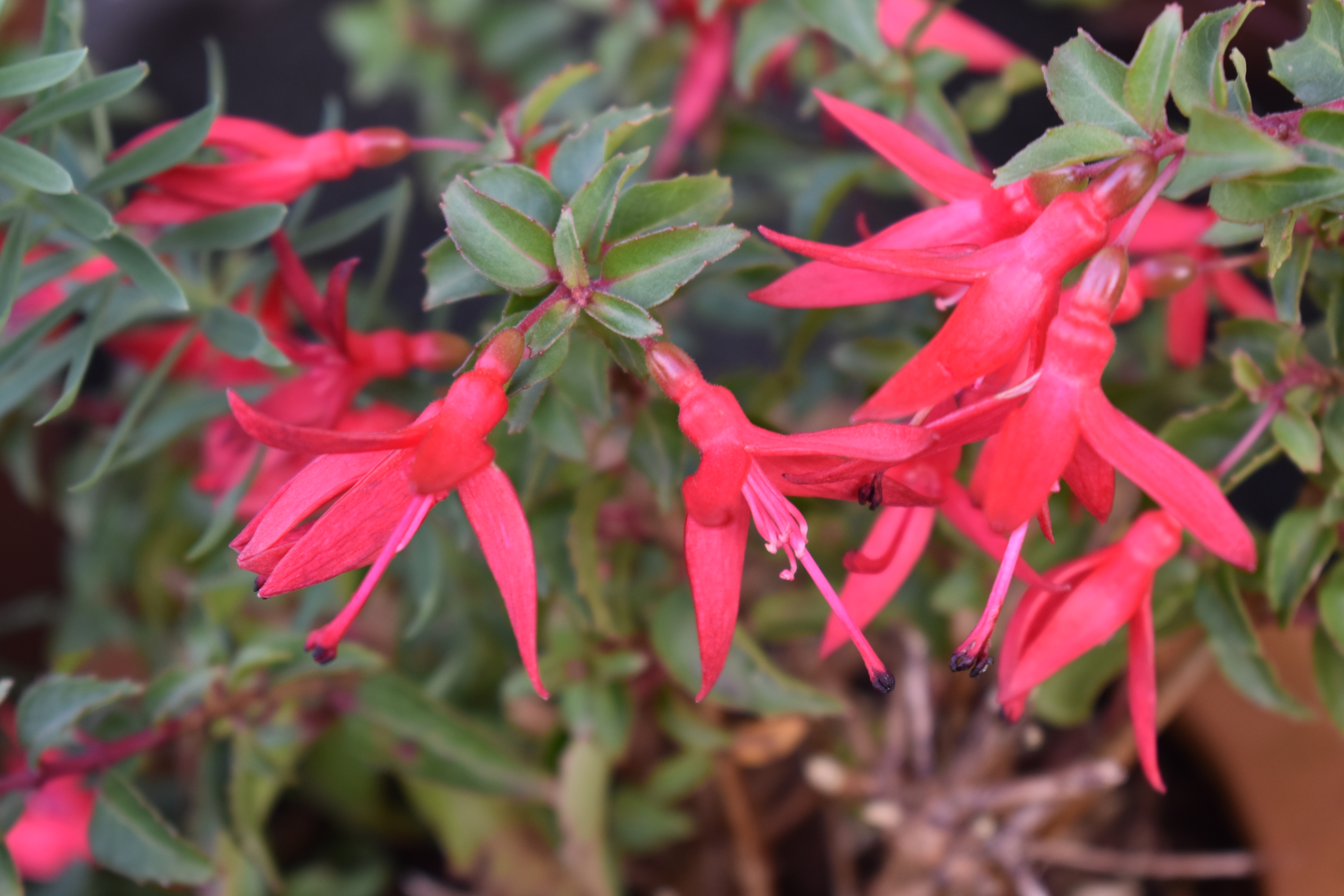 Onto the next page and I featured some of our fuschia and wrote,” We have a few fuschia plants flowering well outside in the garden, with several growing in containers so that we can move them into the greenhouse when frosts arrive. One hardy fuschia is growing in the ‘Prairie Garden’, F. magellanica which is still covered in flowers. We dislike the blousy ballerina like fuschia so we tend to grow species. They are far more delicate, with more interesting foliage including a glaucous leaved variety, F. ‘Silver Linings’. Some of the flowers are tiny, no more than a centimetre long. Many of these fuschias are smaller than their more gaudy cousins.”