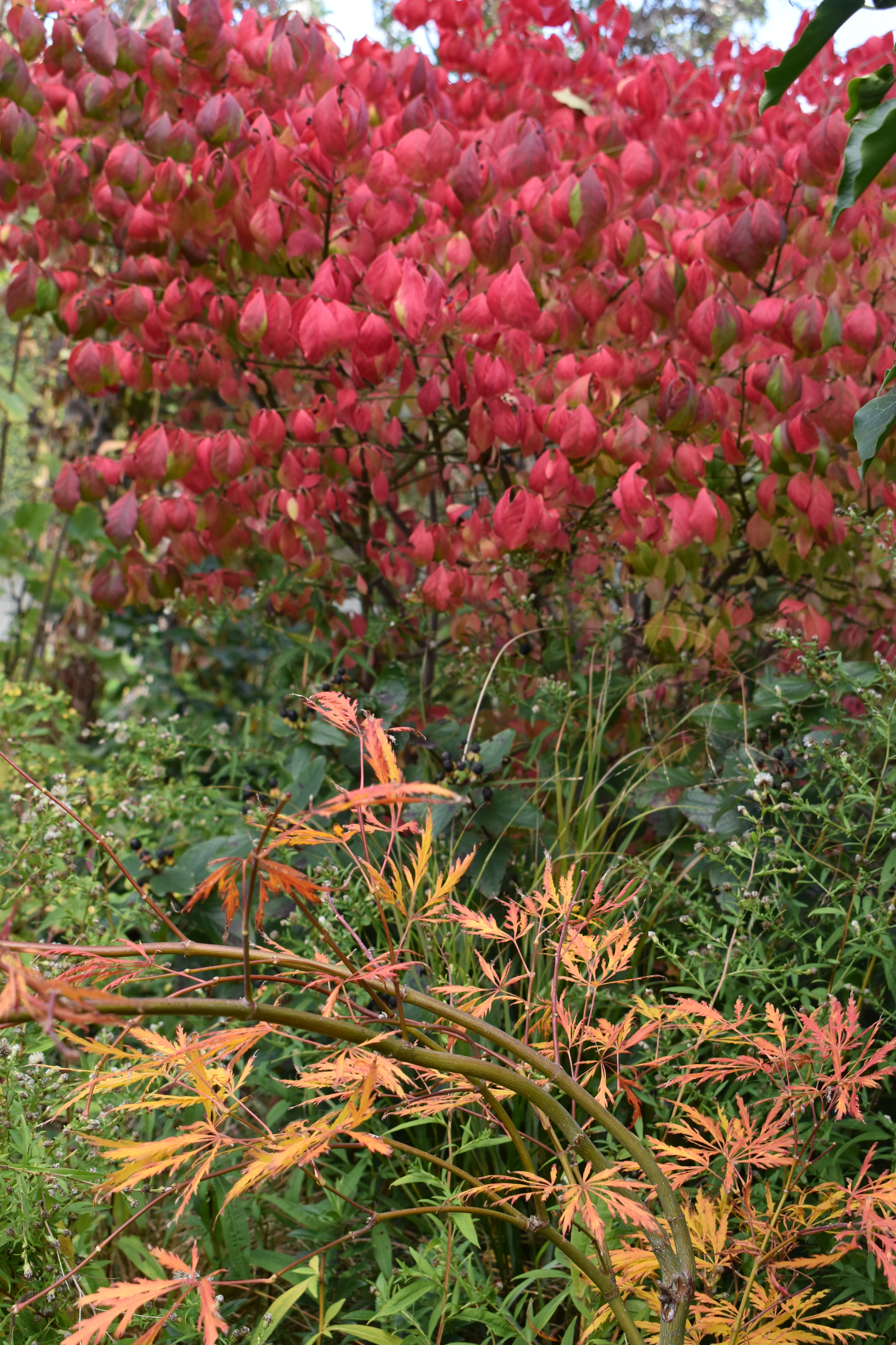 We can now share my garden journal for the month of November, when we are engulfed in signs of autumn. Hot coloured leaves carpet the ground, and are scattered onto shrubs and perennials. We collect these up and use the autumn leaves to create hedgehog shelters and hibernacula for them. Leaves also provide winter shelter and homes for many other mini creatures. Blackbirds soon realise this and forage amongst them for sustenance.
