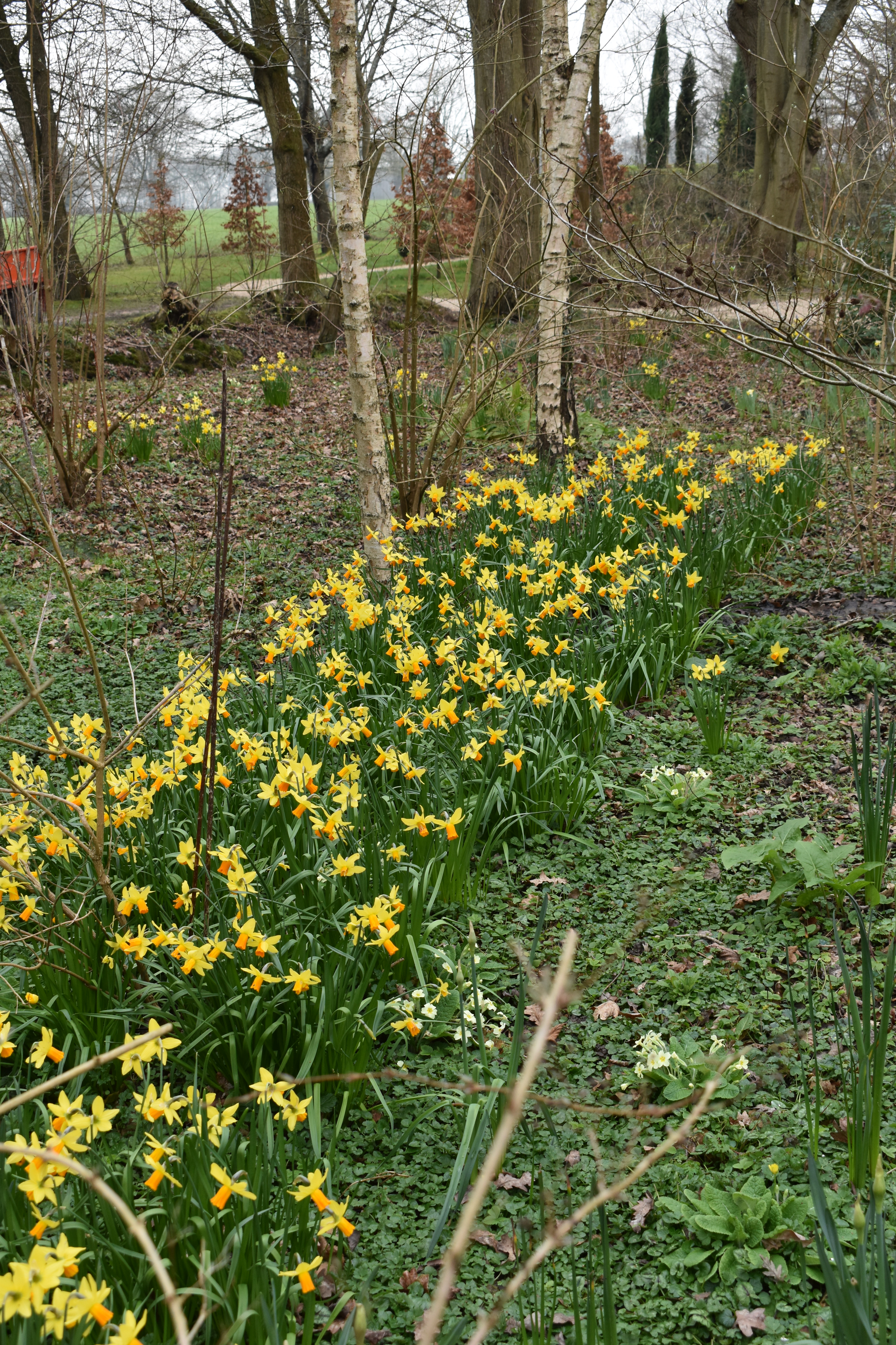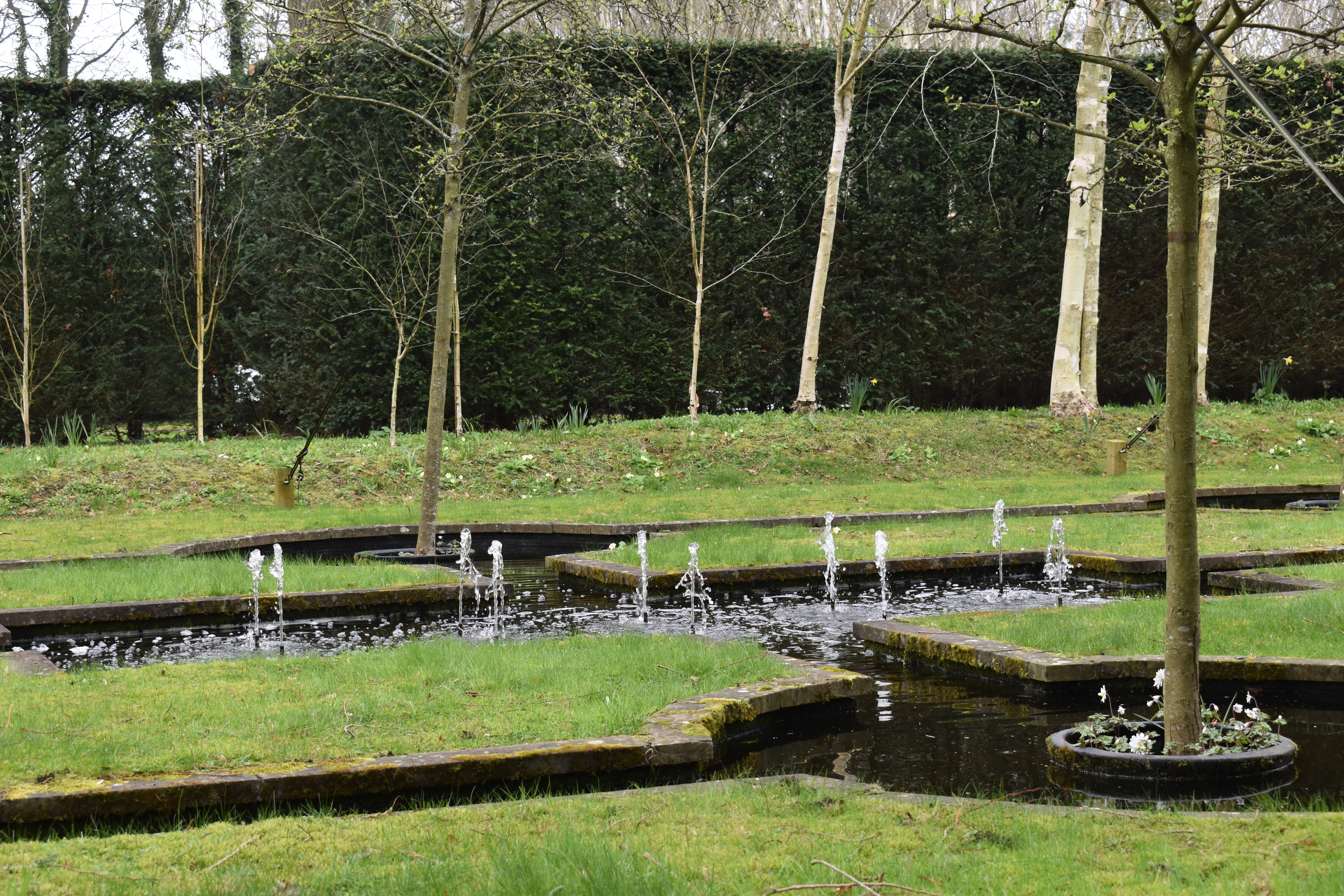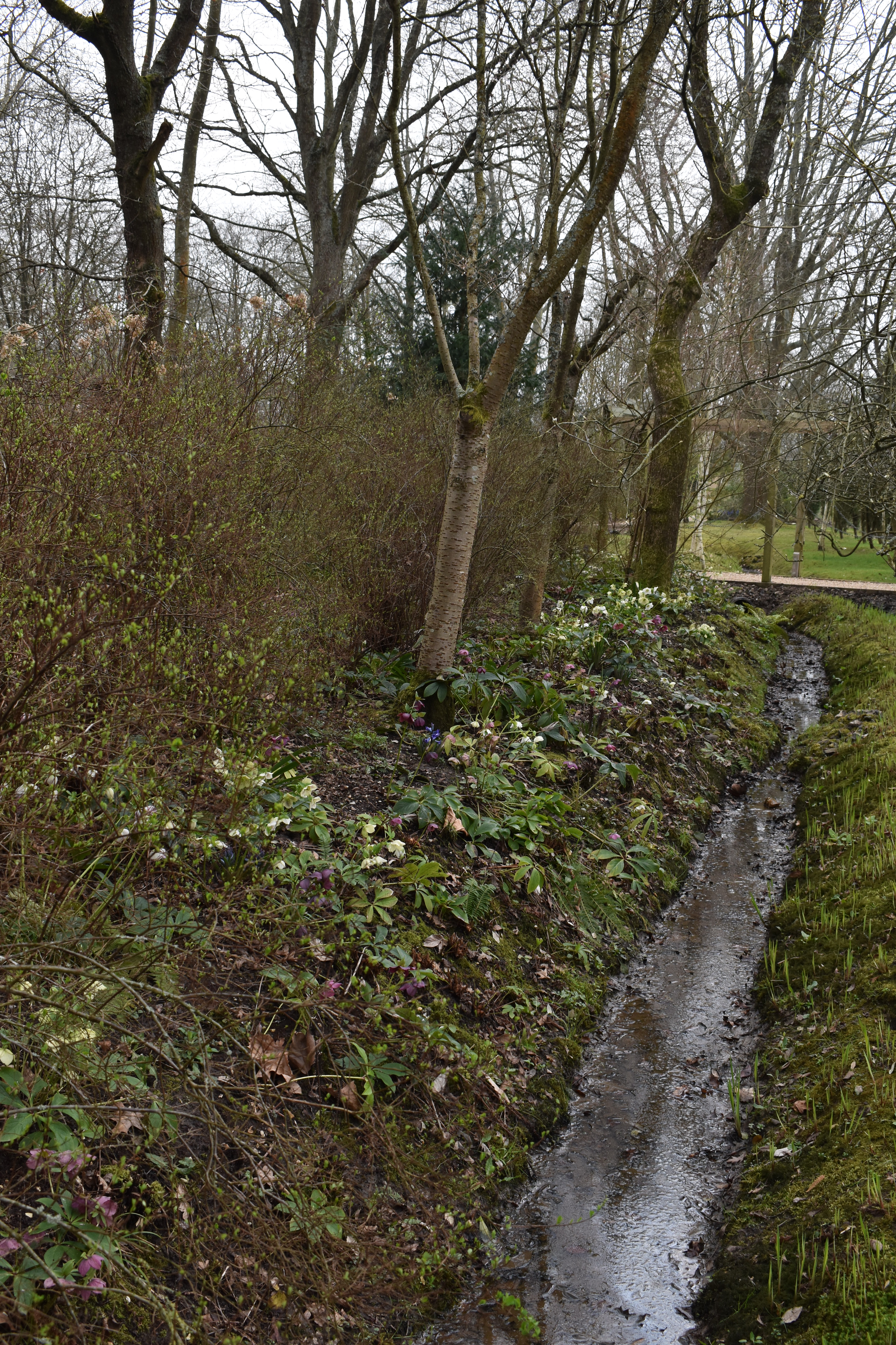 The blue hyacinths were alongside a small stream with banks planted with spring plants. By following the pathway beside the stream borders we arrived at some older places with more formal designs.
