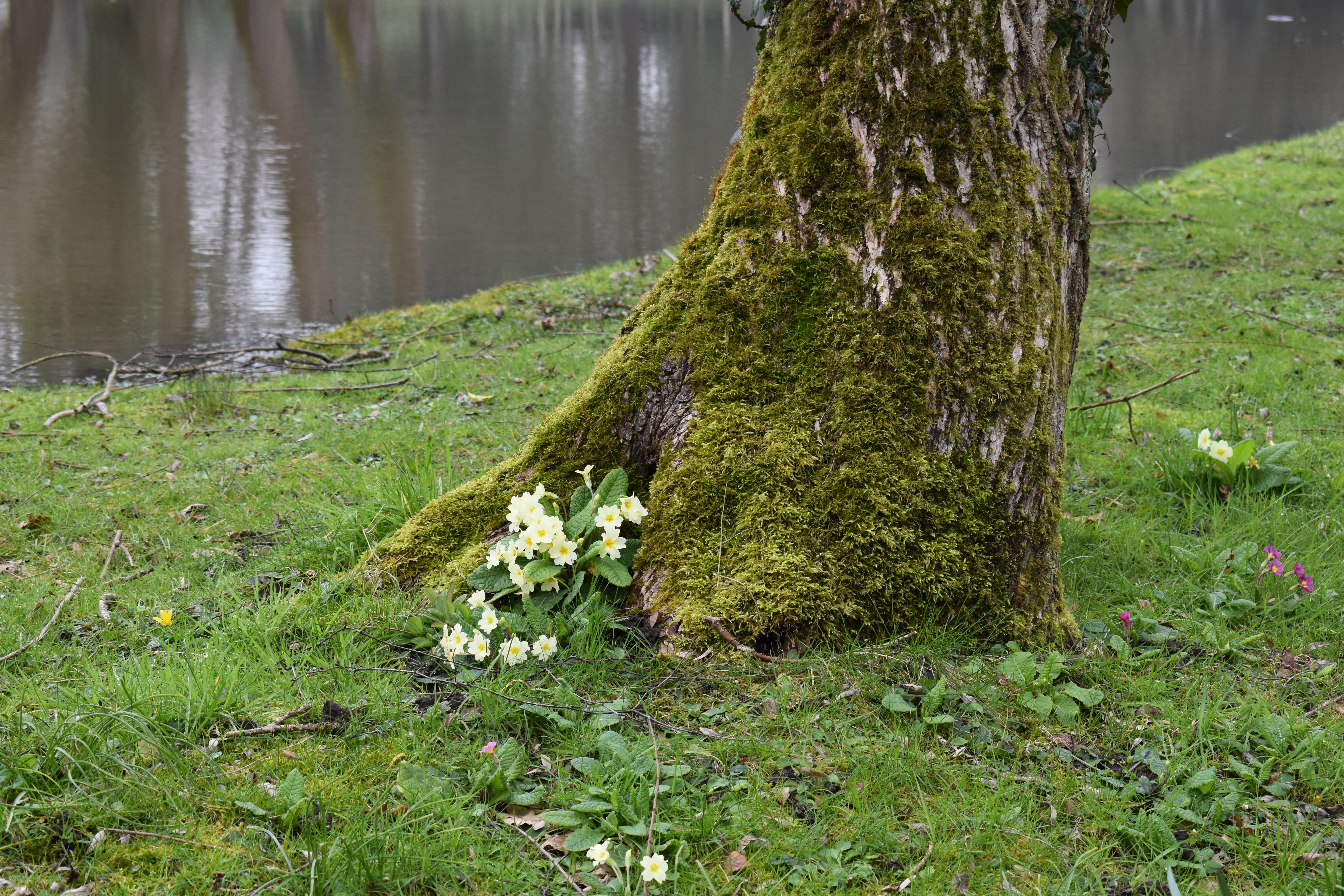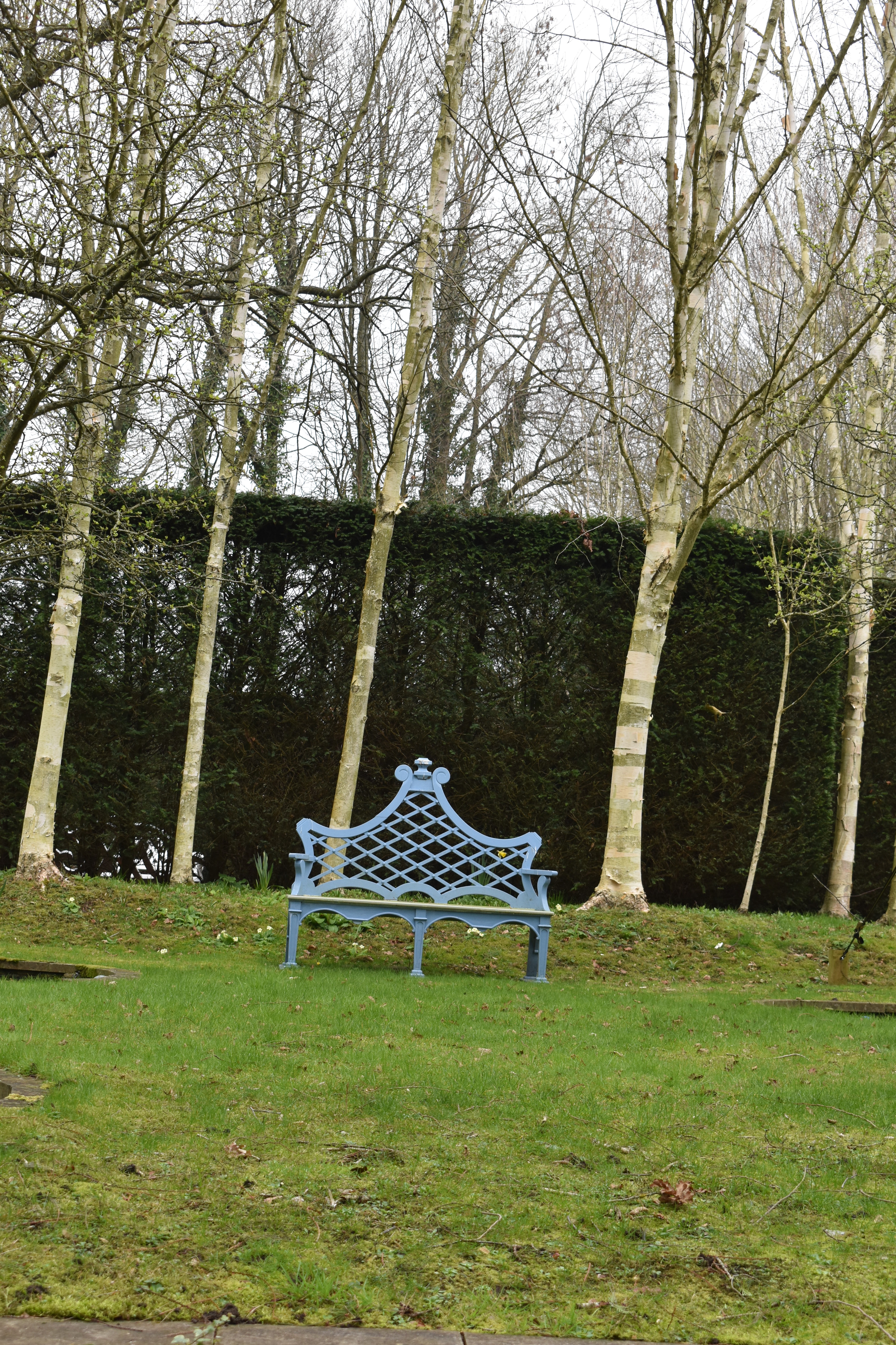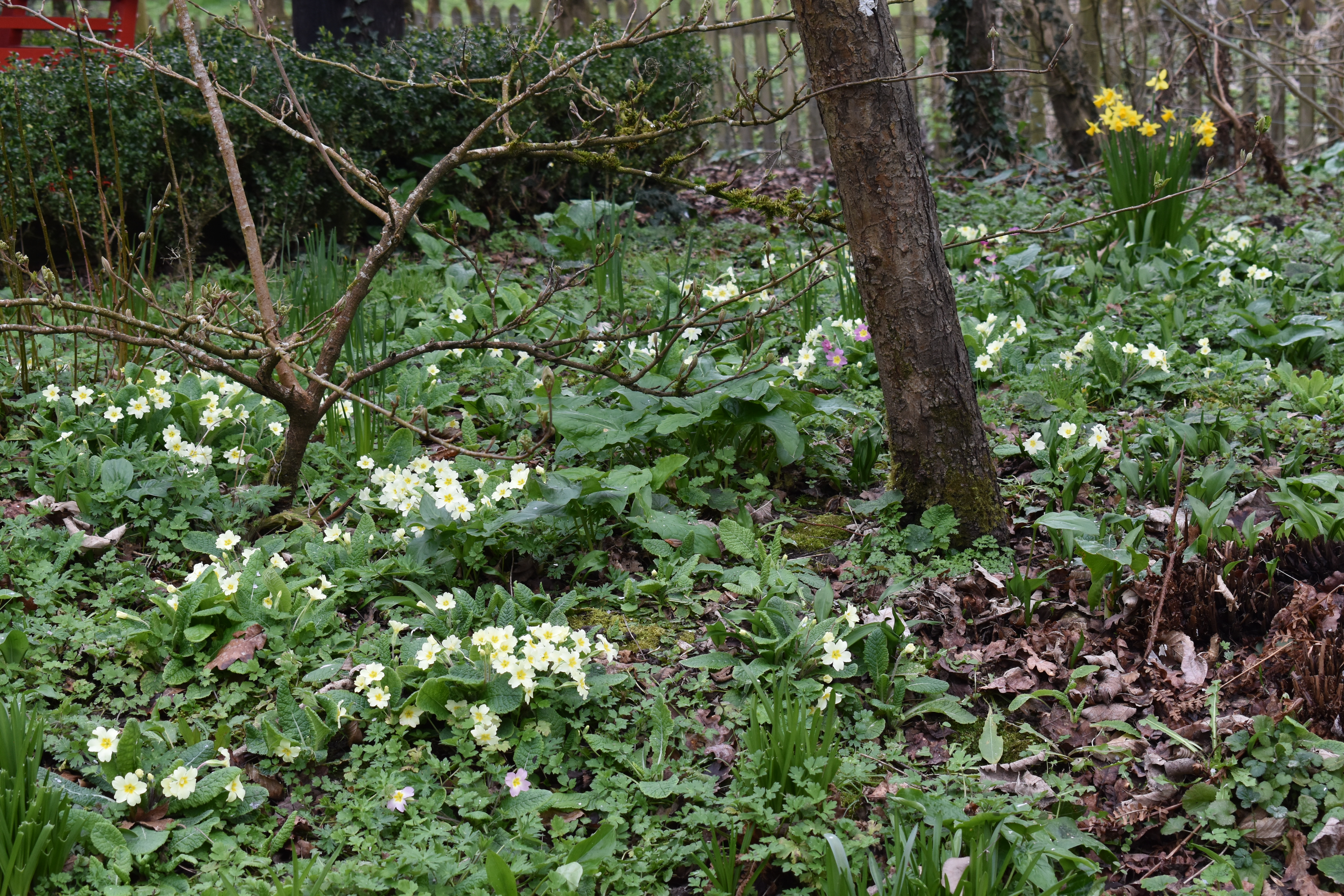 The blue hyacinths were alongside a small stream with banks planted with spring plants. By following the pathway beside the stream borders we arrived at some older places with more formal designs.