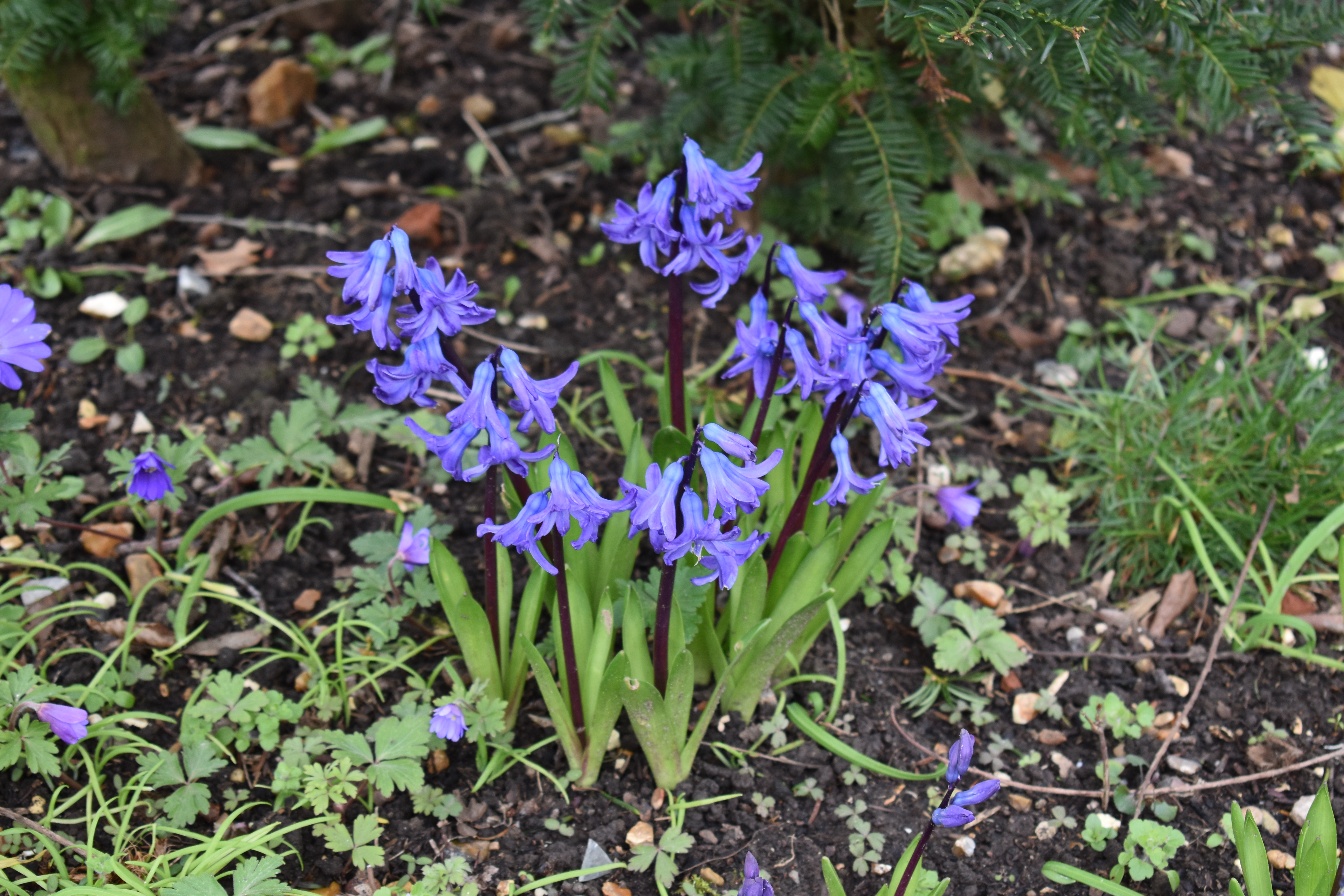 We followed the path to the left and we all spotted patches of an unusually bright shade of blue in a border up ahead. Once close enough we realised the colour was of hyacinths. We had never seen such intensity of colour in hyacinths before, but we were so pleased to be observing them.