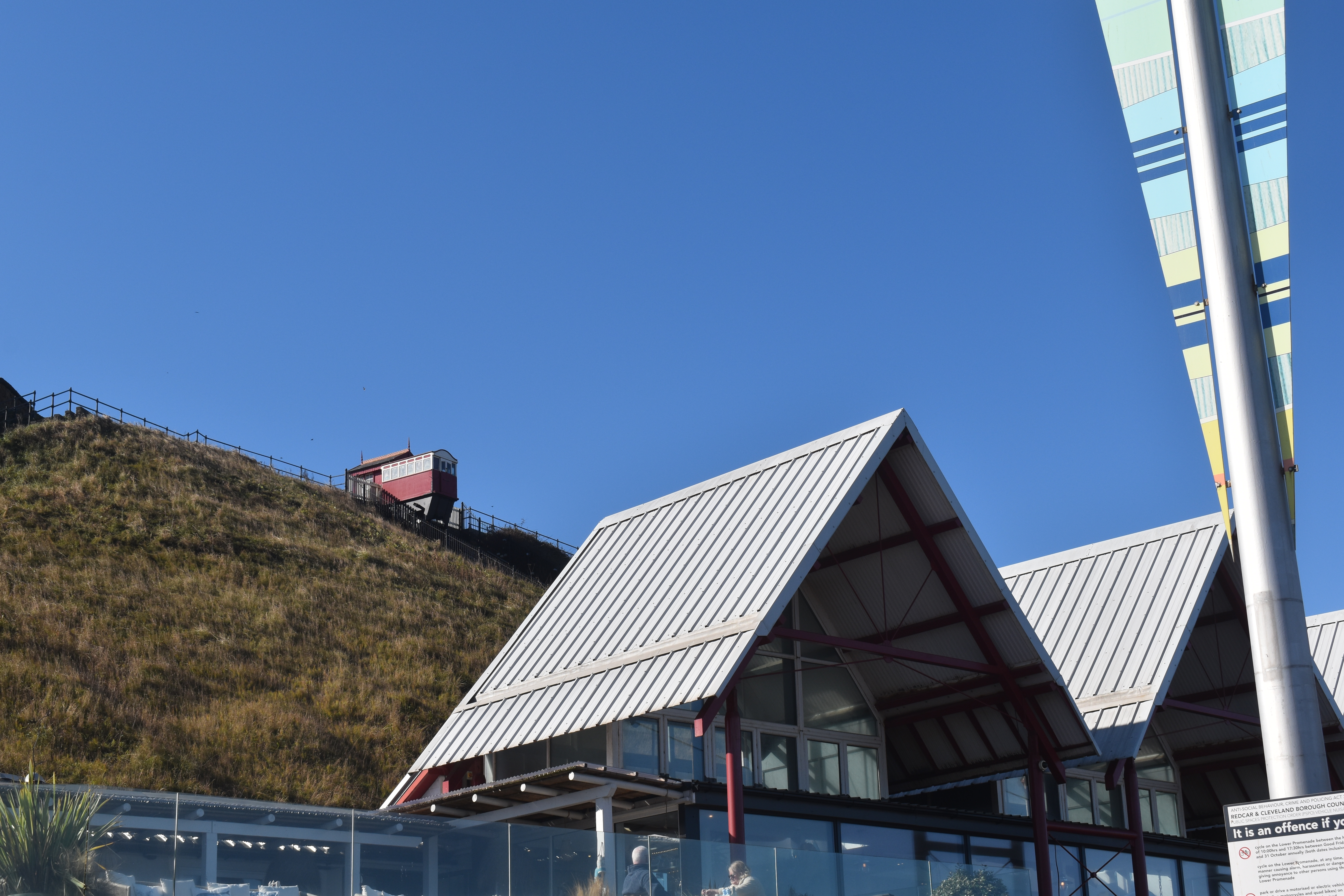 The cliff tramway is a water balanced funicular and was built in 1884. Everything to do with the tramway looks so well looked after and looks smart in its red and cream colour theme and stained glass windows.