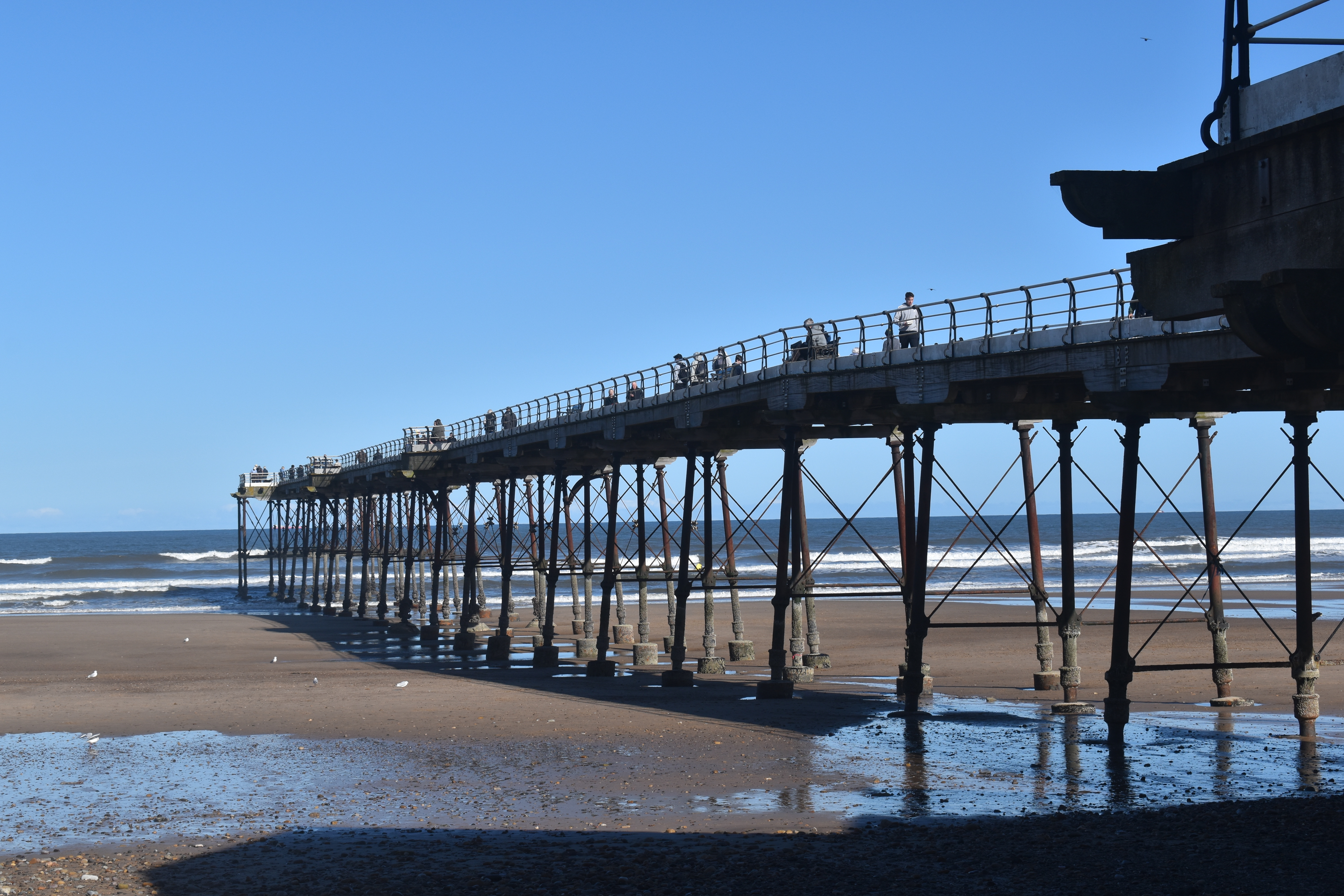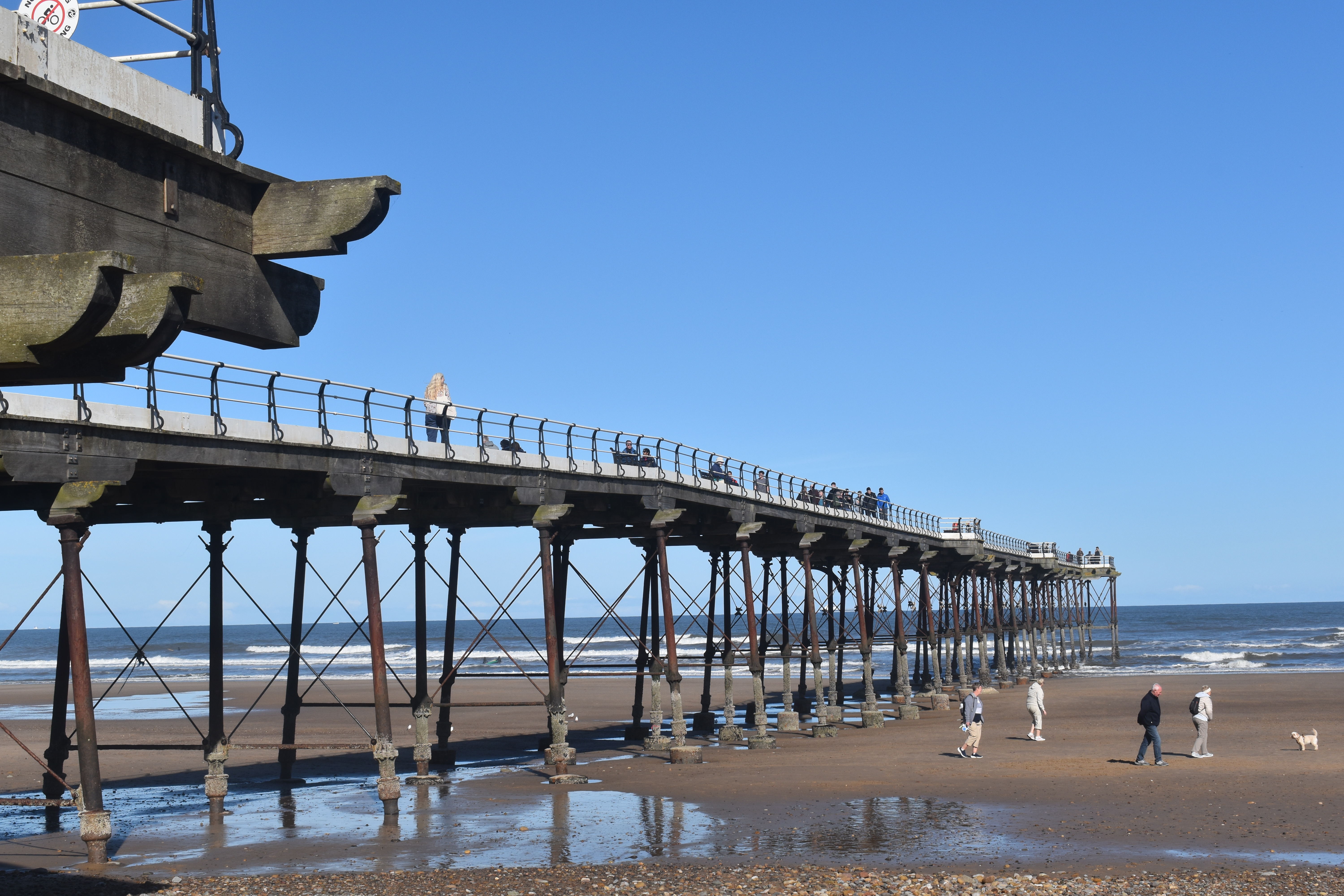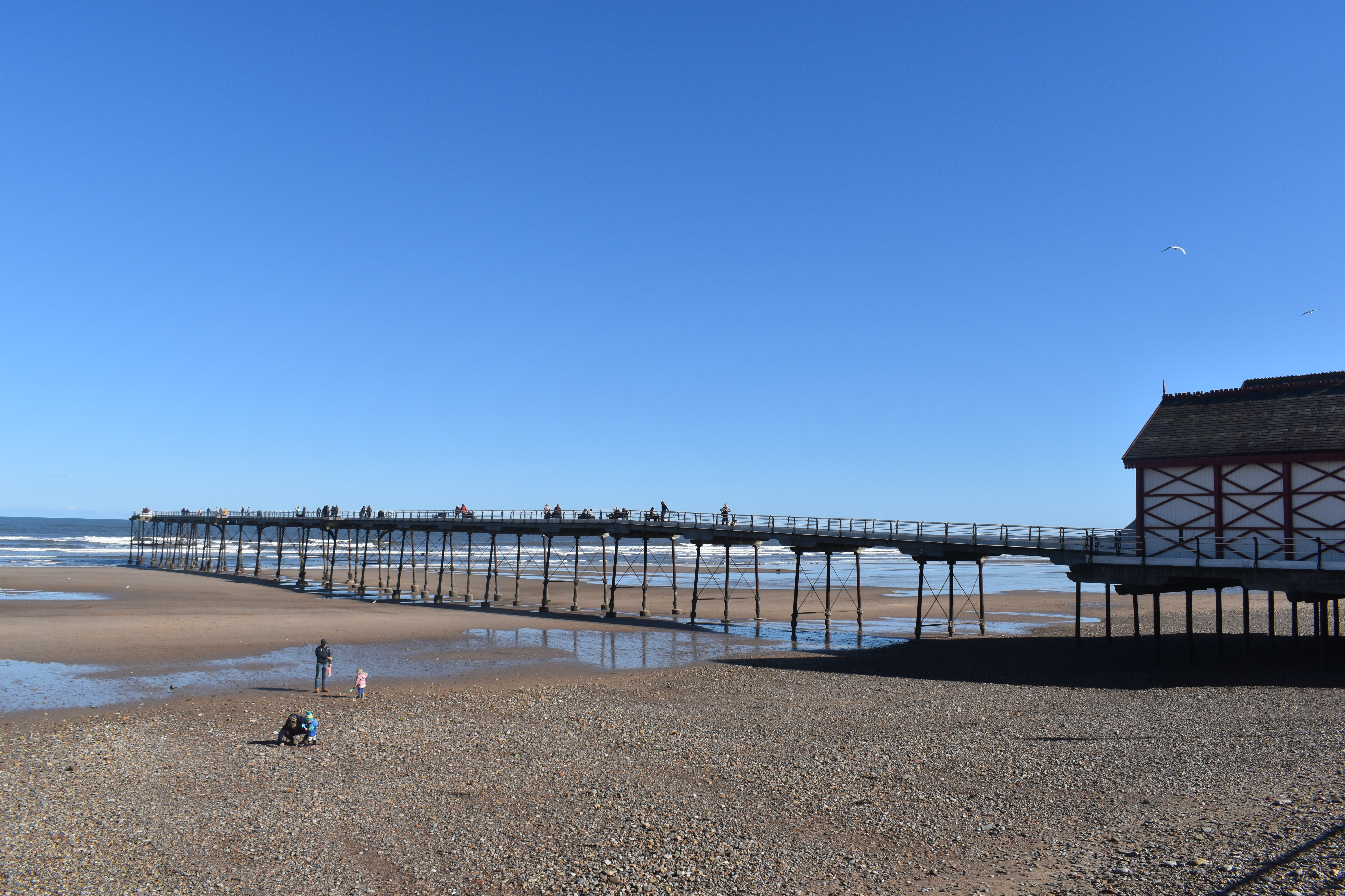 After our walk from Danby we decided to go to a town by the sea called Saltburn which neither of us had visited before. It turned out to be a really good choice as it has a pier, colourful beach huts, a long sandy beach and a water balance cliff tramway to get from the village down to the beach. And of course a very big blue sky!