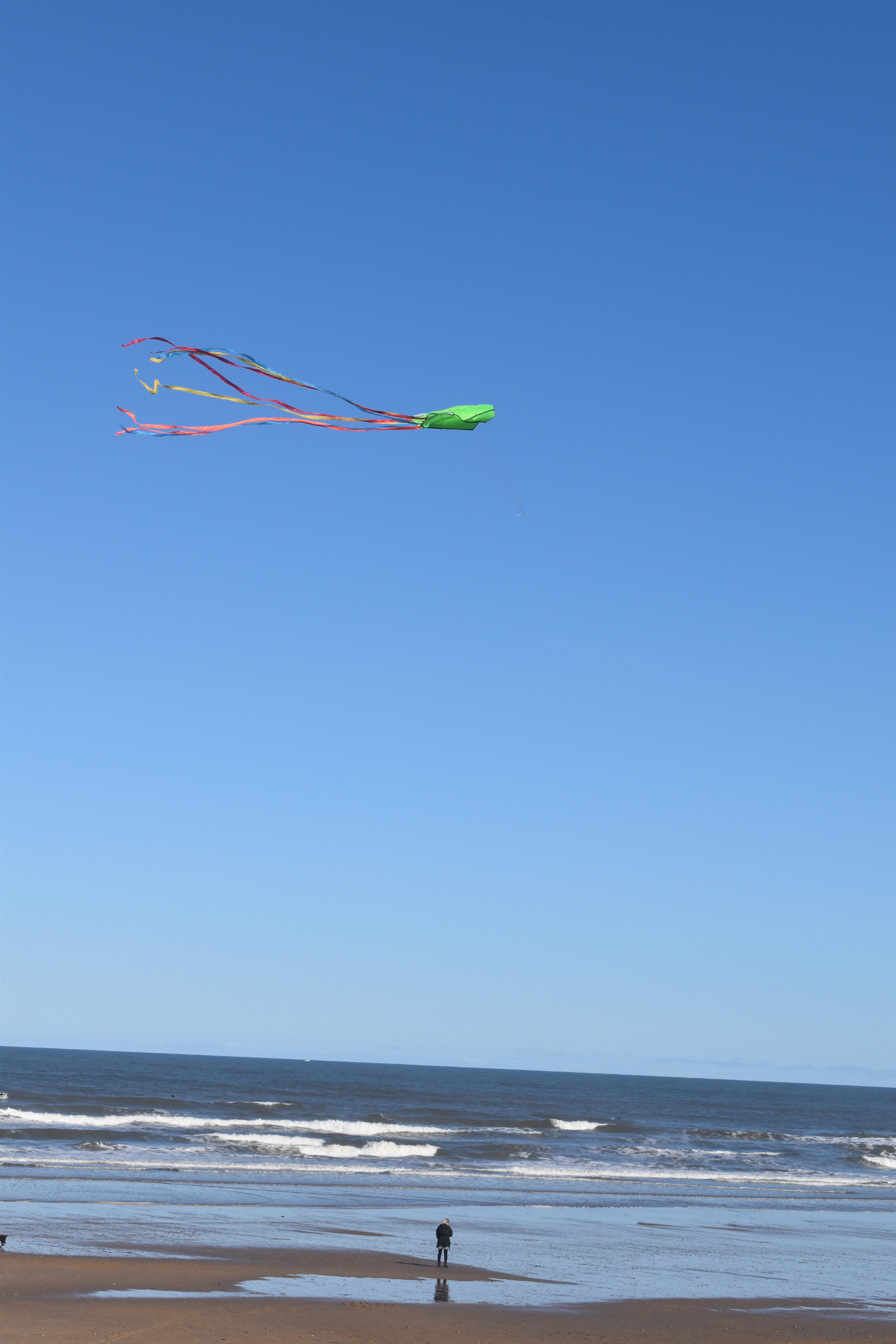 The beach is certainly a great place to fly a kite especially with a bright blue sky above.