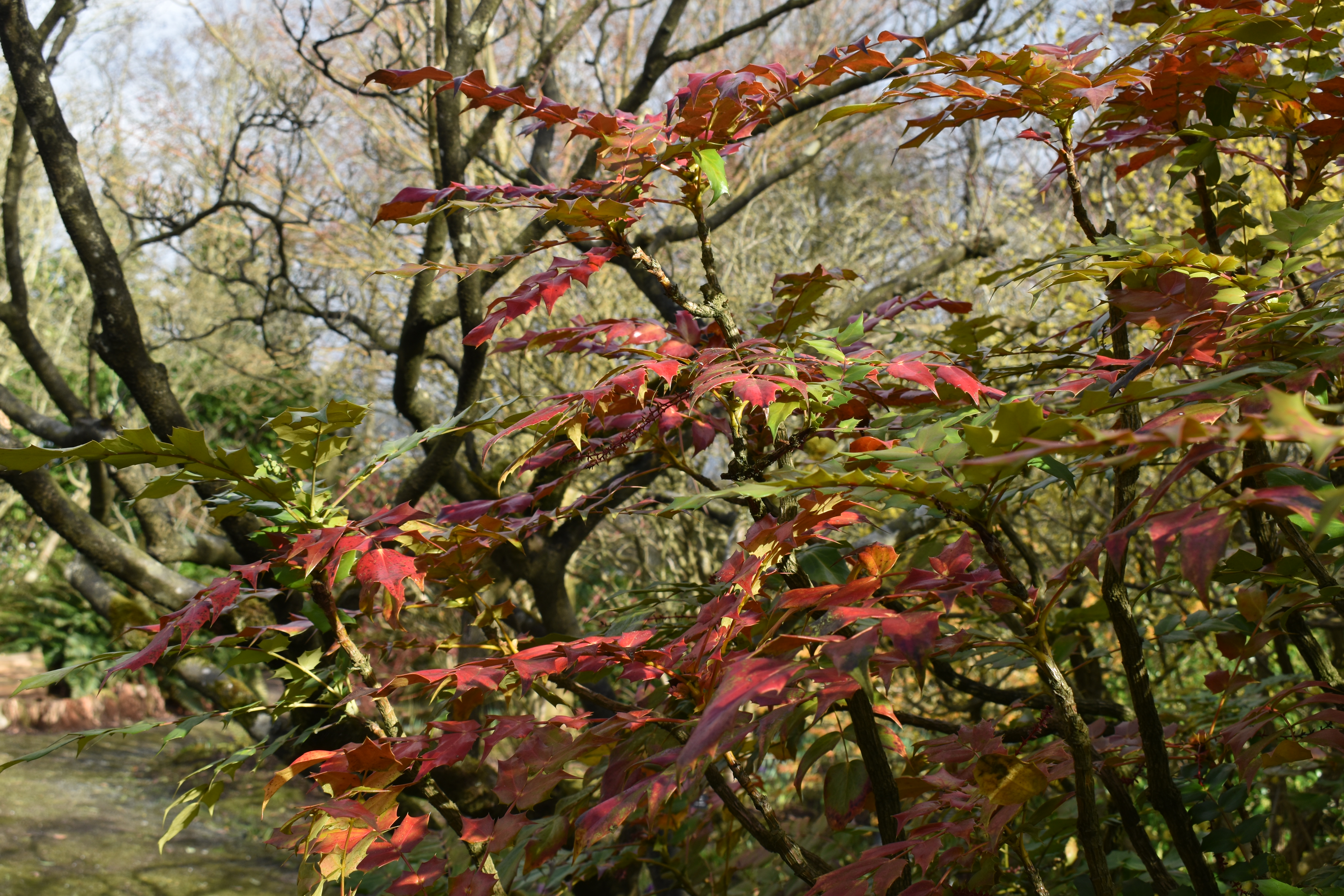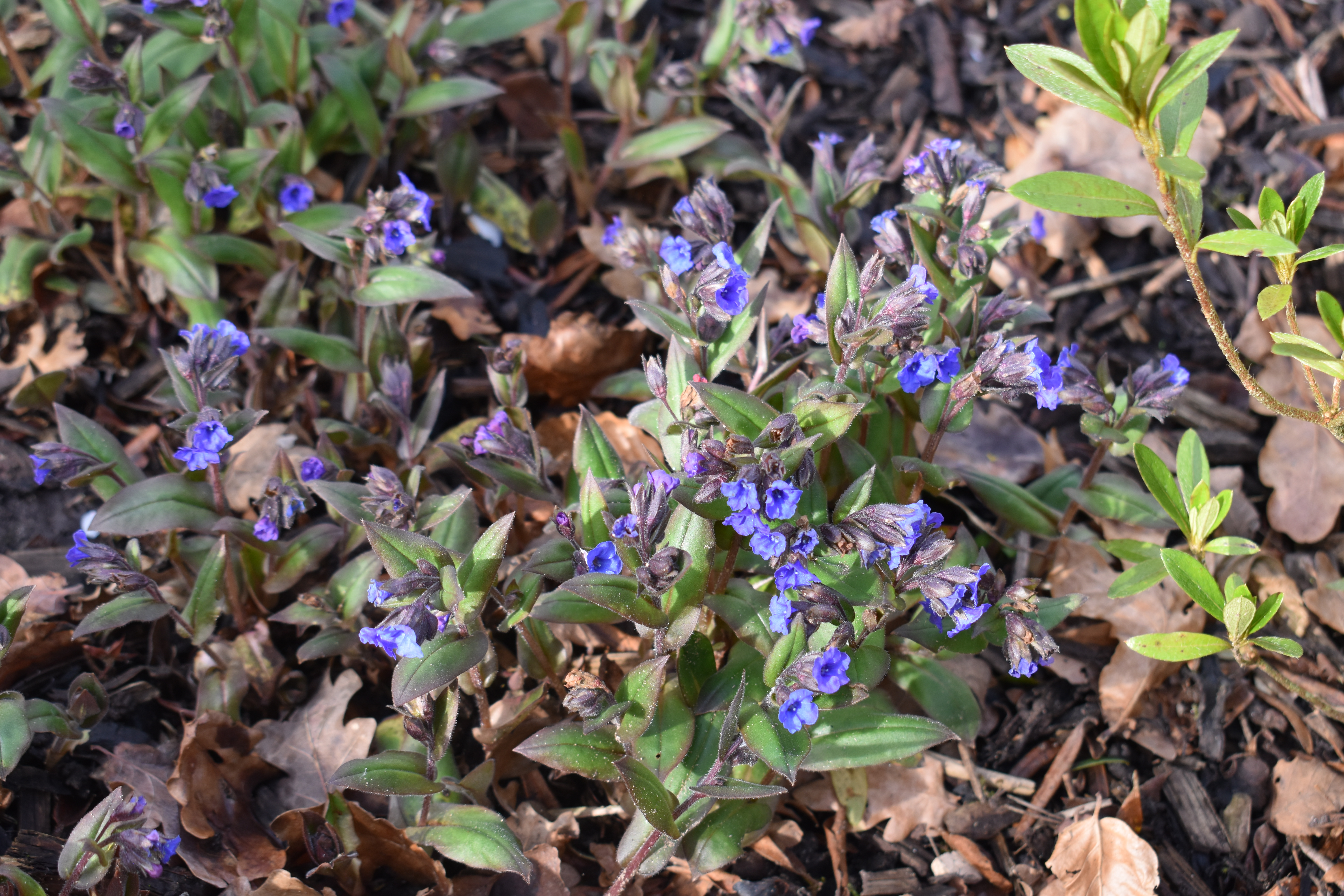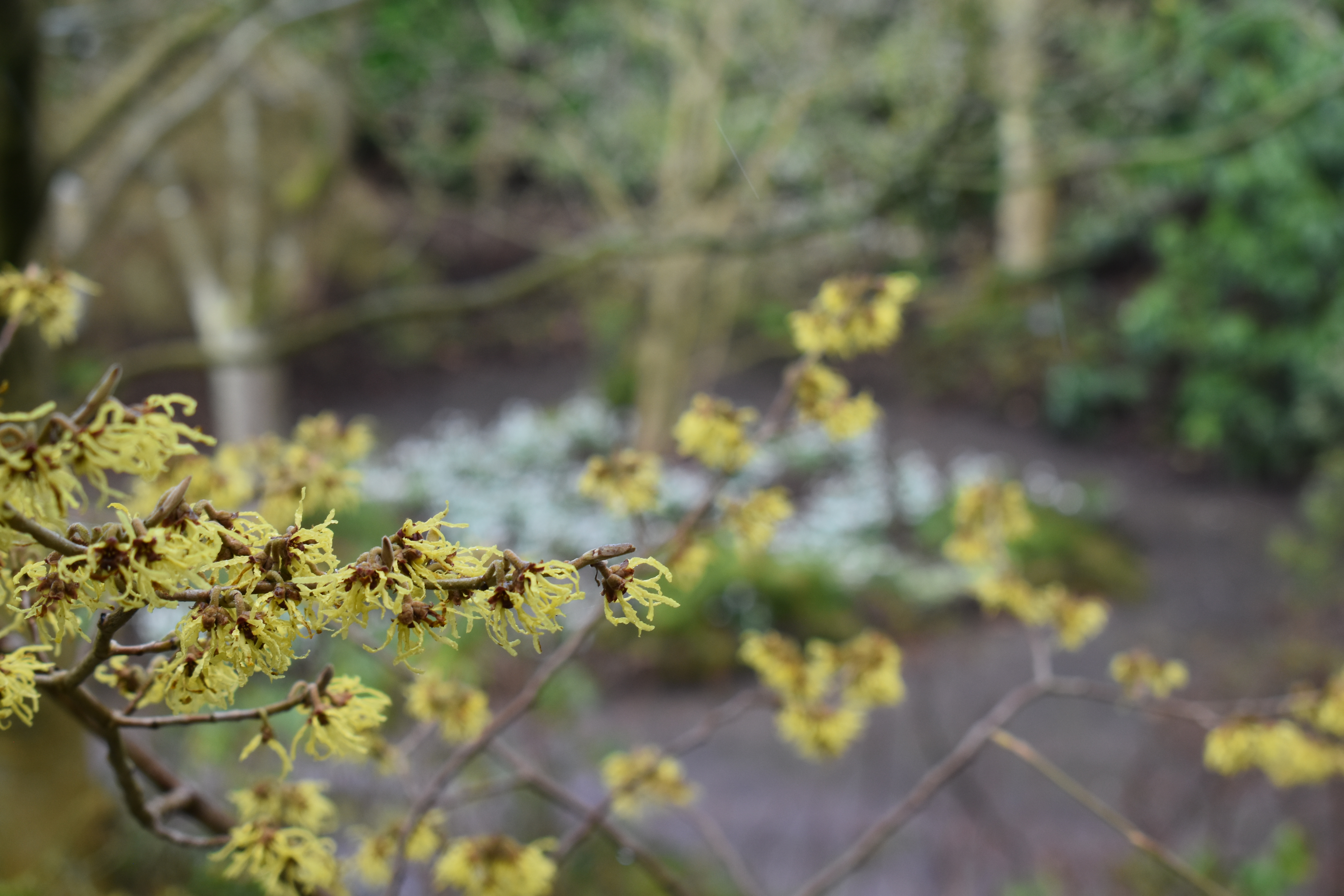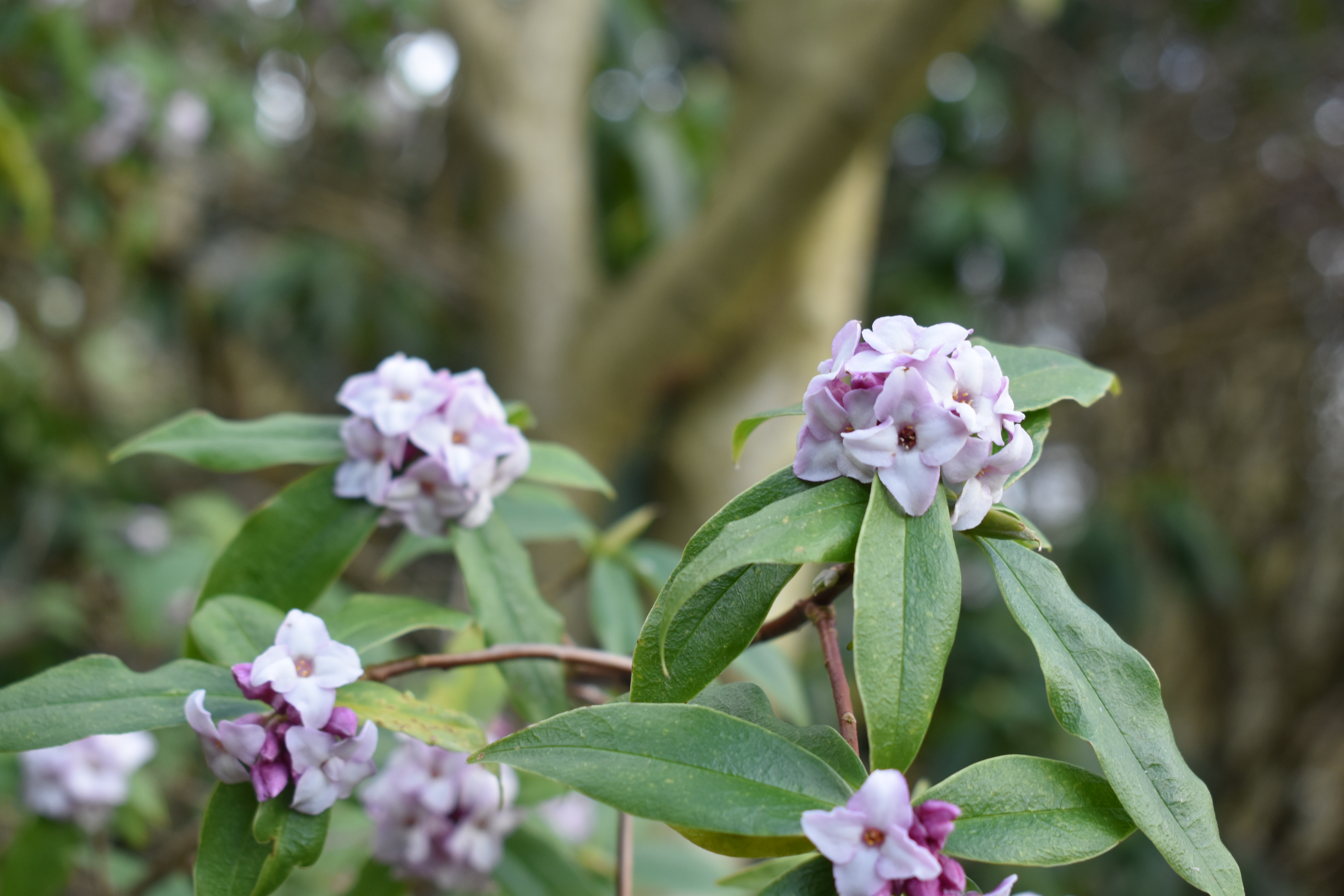 Returning to our original routeway, we enjoyed the rich sweet scent of Daphnes and low spring plantings. Below the photos show Daphne bholua ‘Spring Beauty’, the blossom of a prunus and the spring flowers of pulmonaria and snowdrops covering the ground below.