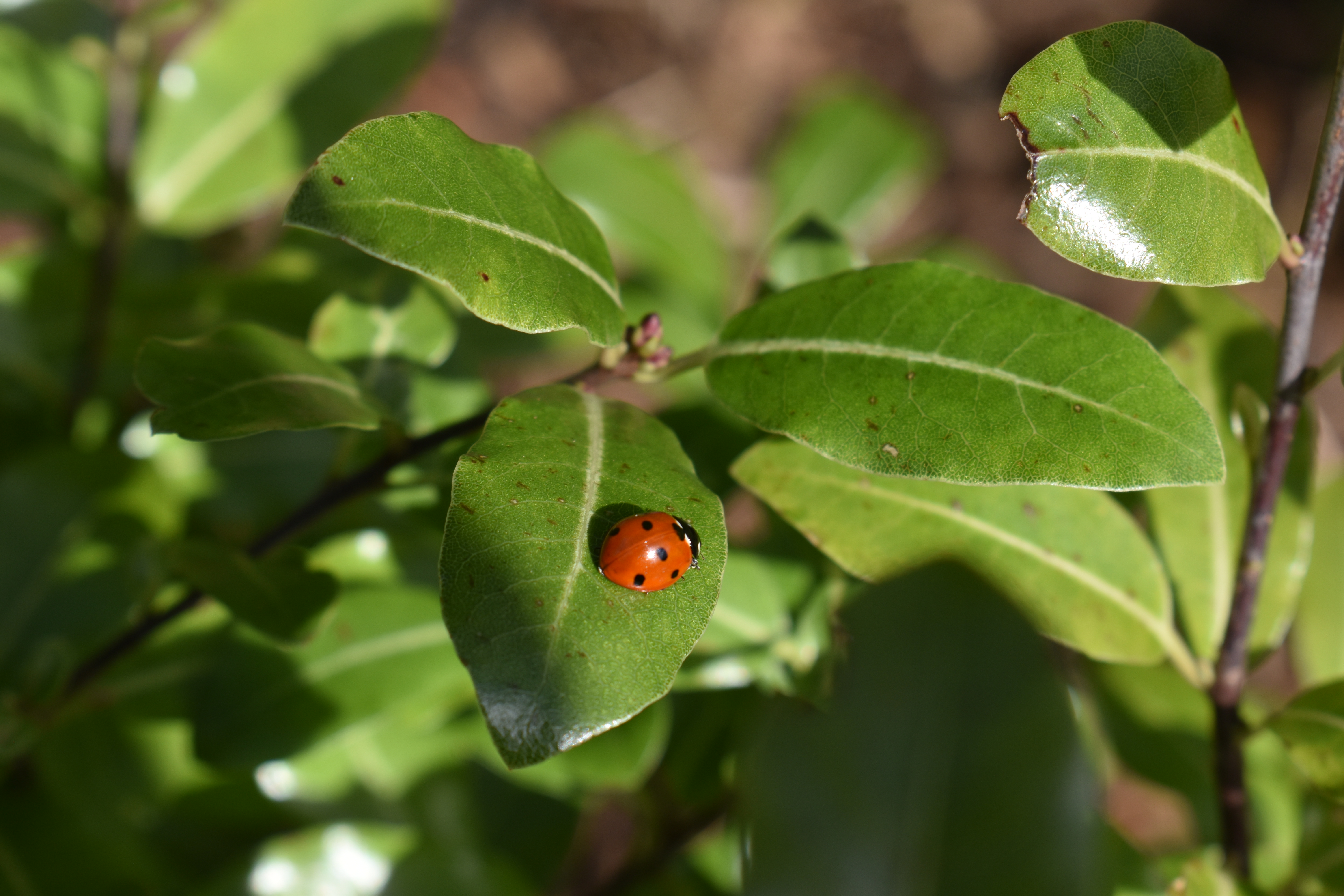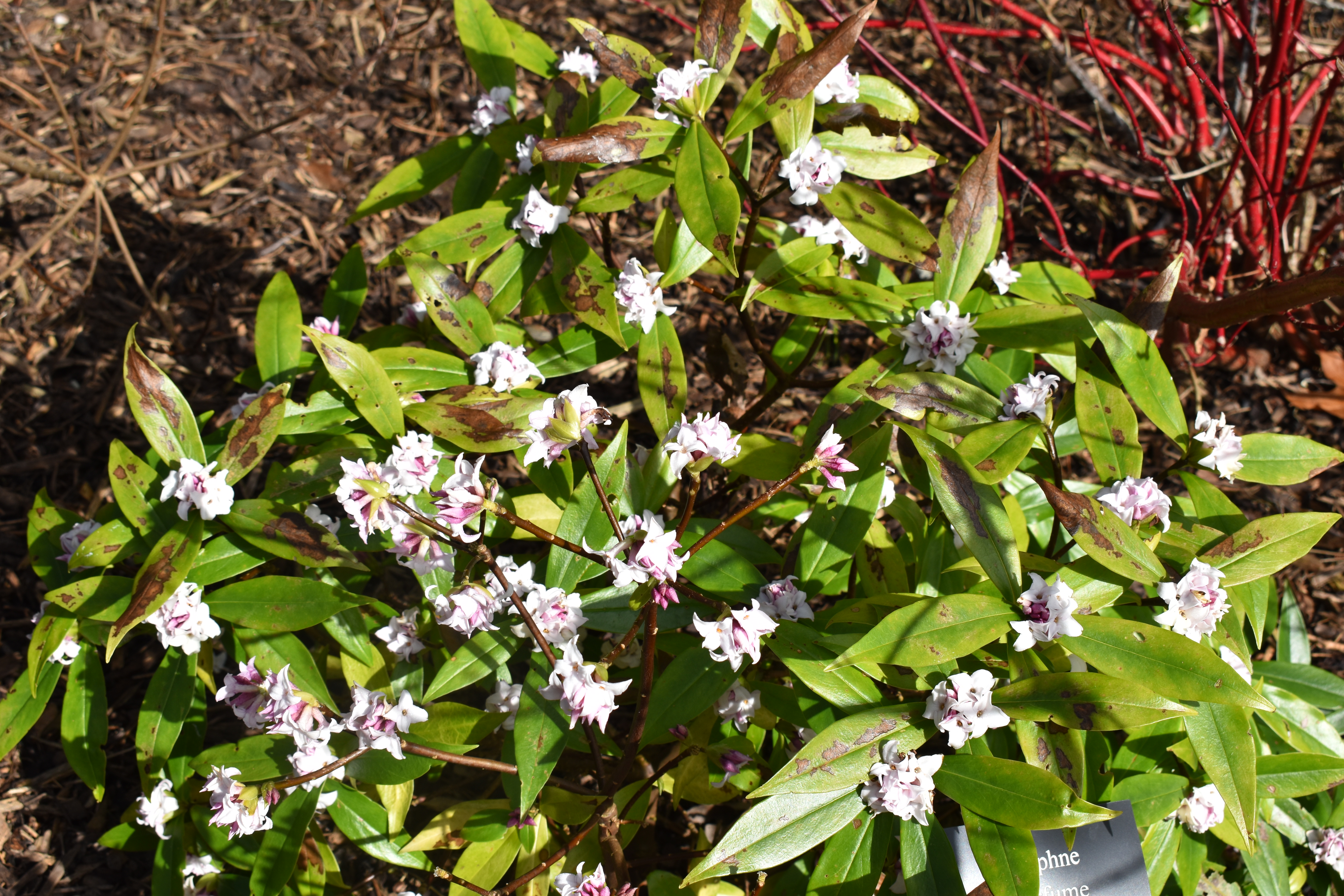 There were two more daphnes nearby for us to enjoy, Daphne bholua ‘Jaqueline Postill’ and Daphne bhuloa ‘Princess Perfume’, which had attracted a ladybird. The sun had brought out quite a few ladybirds.