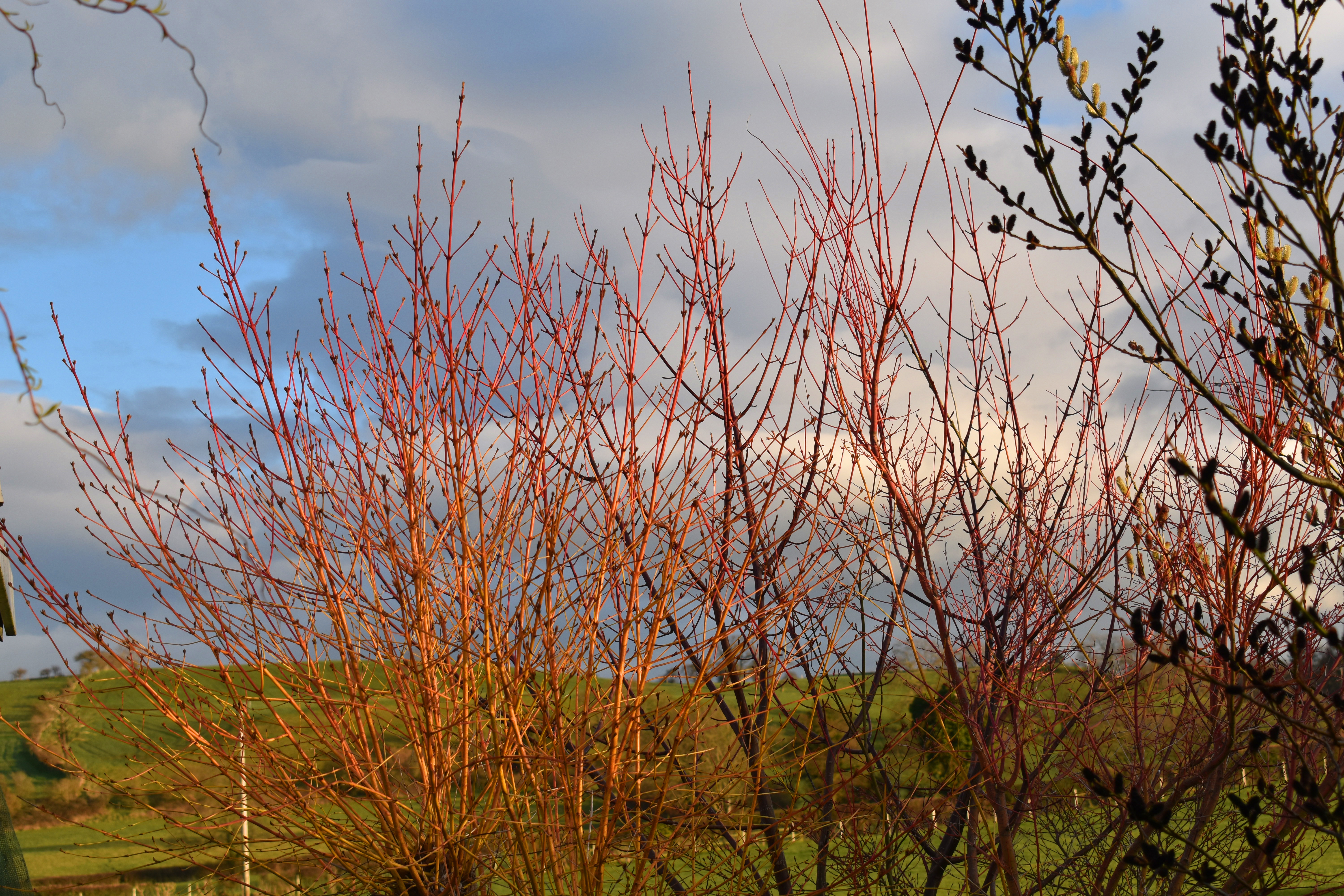 I began my March entries by writing, “According to the Met Office we are now in spring because March has arrived. Frosts come most nights though, so in reality it is still late winter. (They continued until mid-month.) Throughout the first half of March we enjoyed beautiful and dramatic sunrises and more gentle sunsets. The sunsets emphasised the coloured stems of acers and salix.”