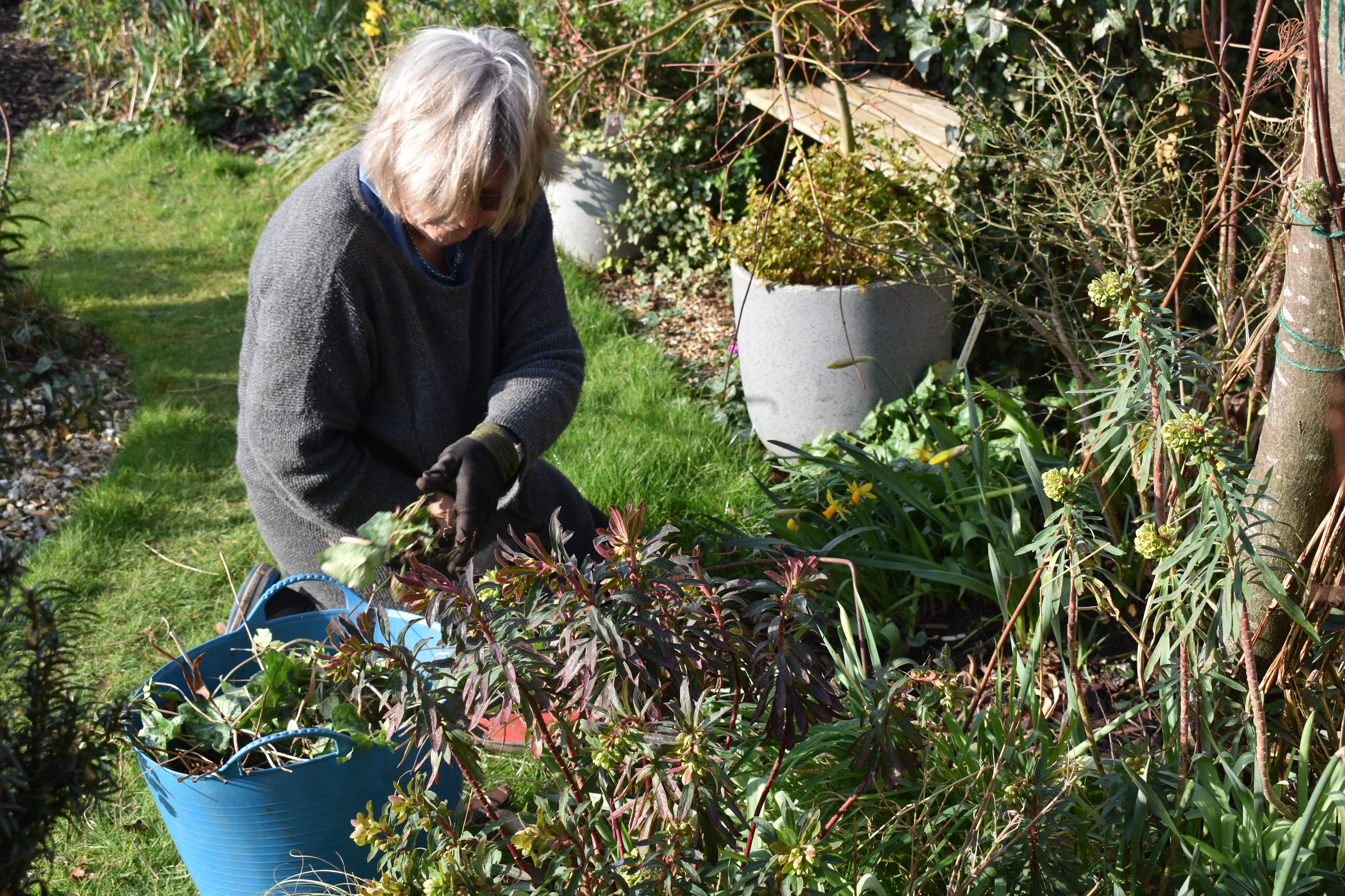 “We have been tidying up plants and weeding each border. We clipped the ivy over the arch over the seat. It is so important to get this done before birds start to nest.”