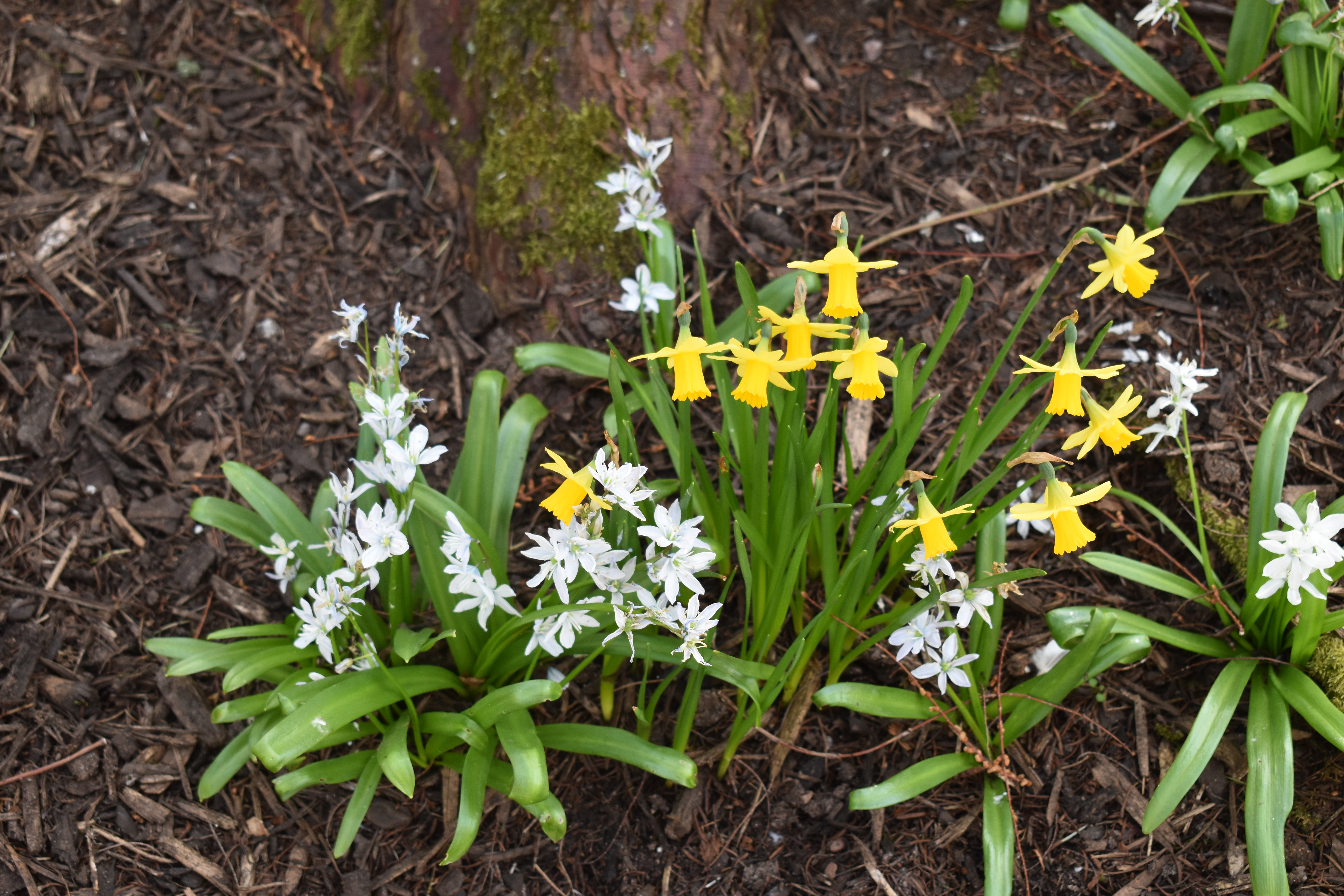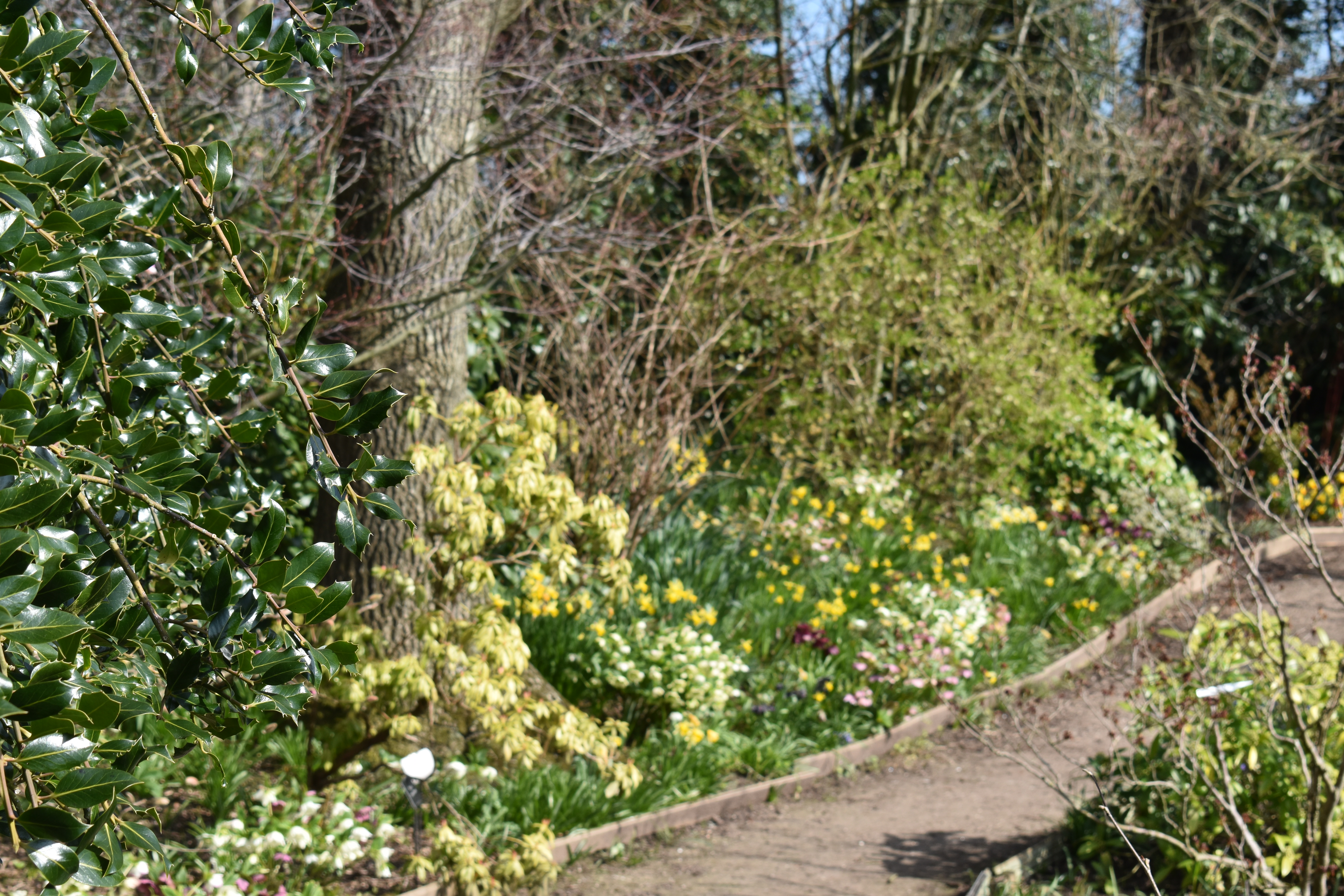 A triangular border lit up by golden daffodils welcomed us into the garden. The air here is so clean and the microclimate so damp that beautifully coloured lichen grow on any available twig.