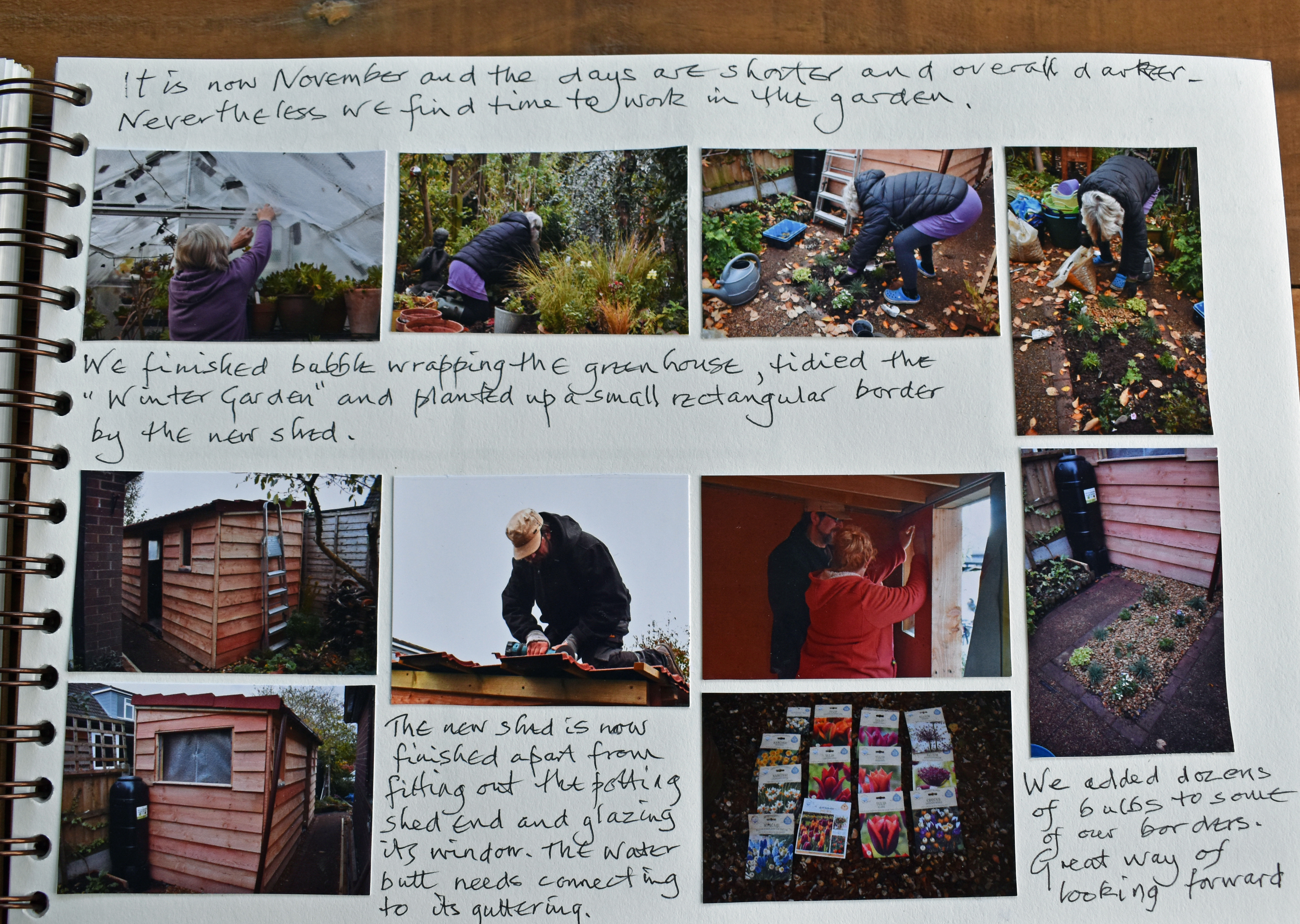 On my first page of November notes I began by saying, “It is now November and the days are getting shorter and overall darker. Nevertheless we find time to work in the garden.”