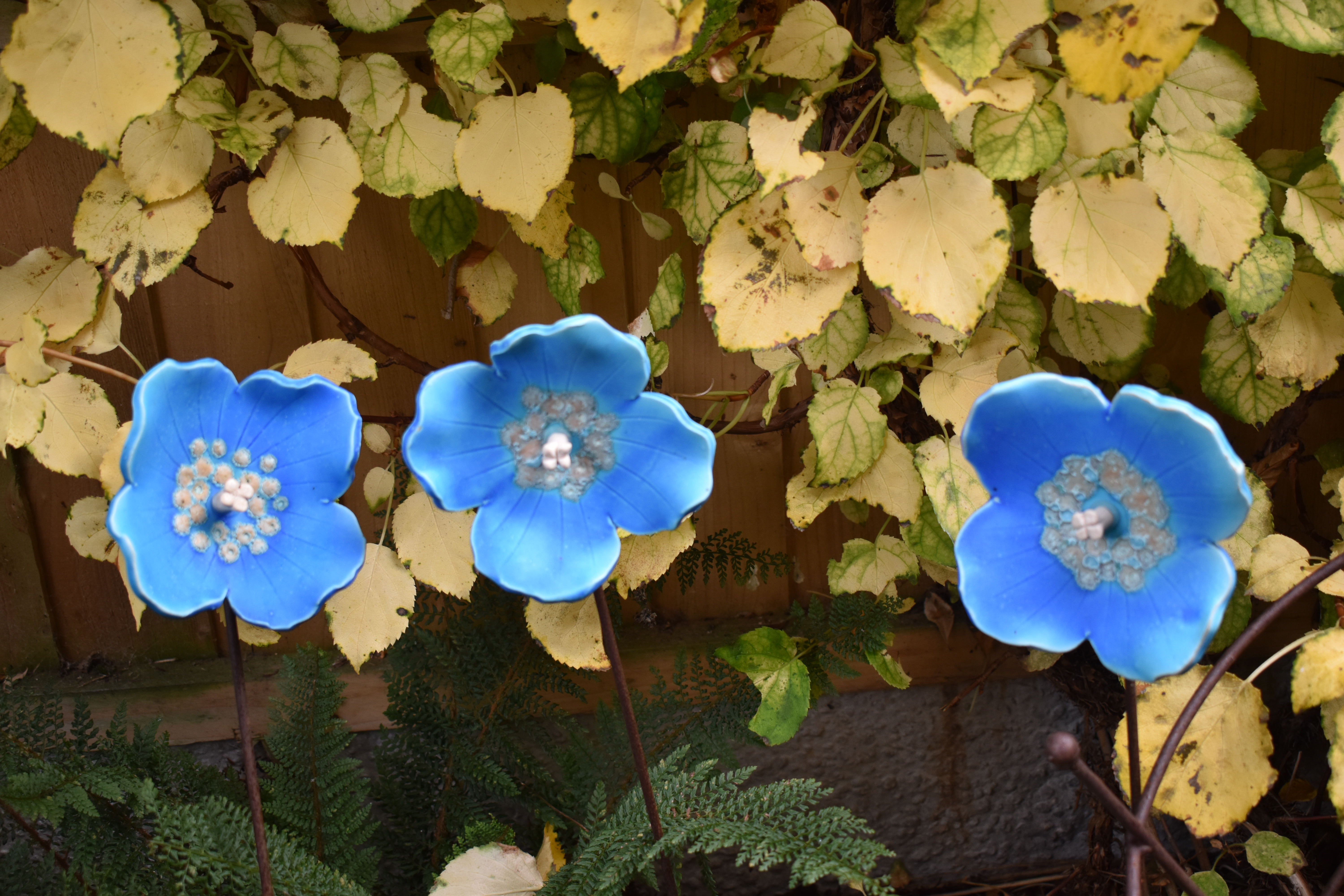 The ‘Shade Garden’ plants continue onto the page opposite. I noted that, “Blue ceramic meconopsis contrast beautifully with the autumnal yellow foliage of the climbing hydrangea. These ceramic meconopsis poppies were made by artist Anna Whitehouse. Clematis look so good at the end of their season and honeysuckle give colour in their berries and flowers.”