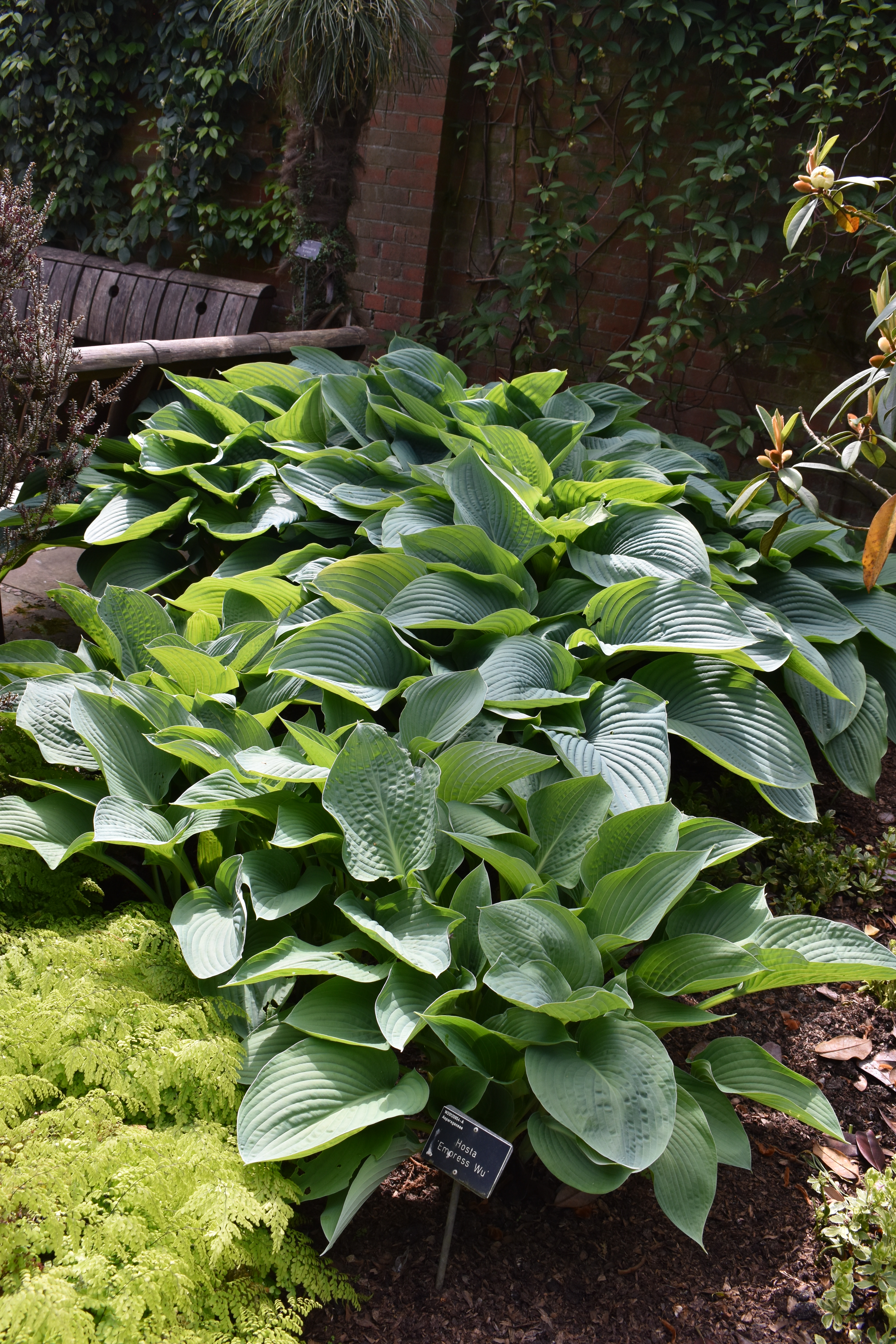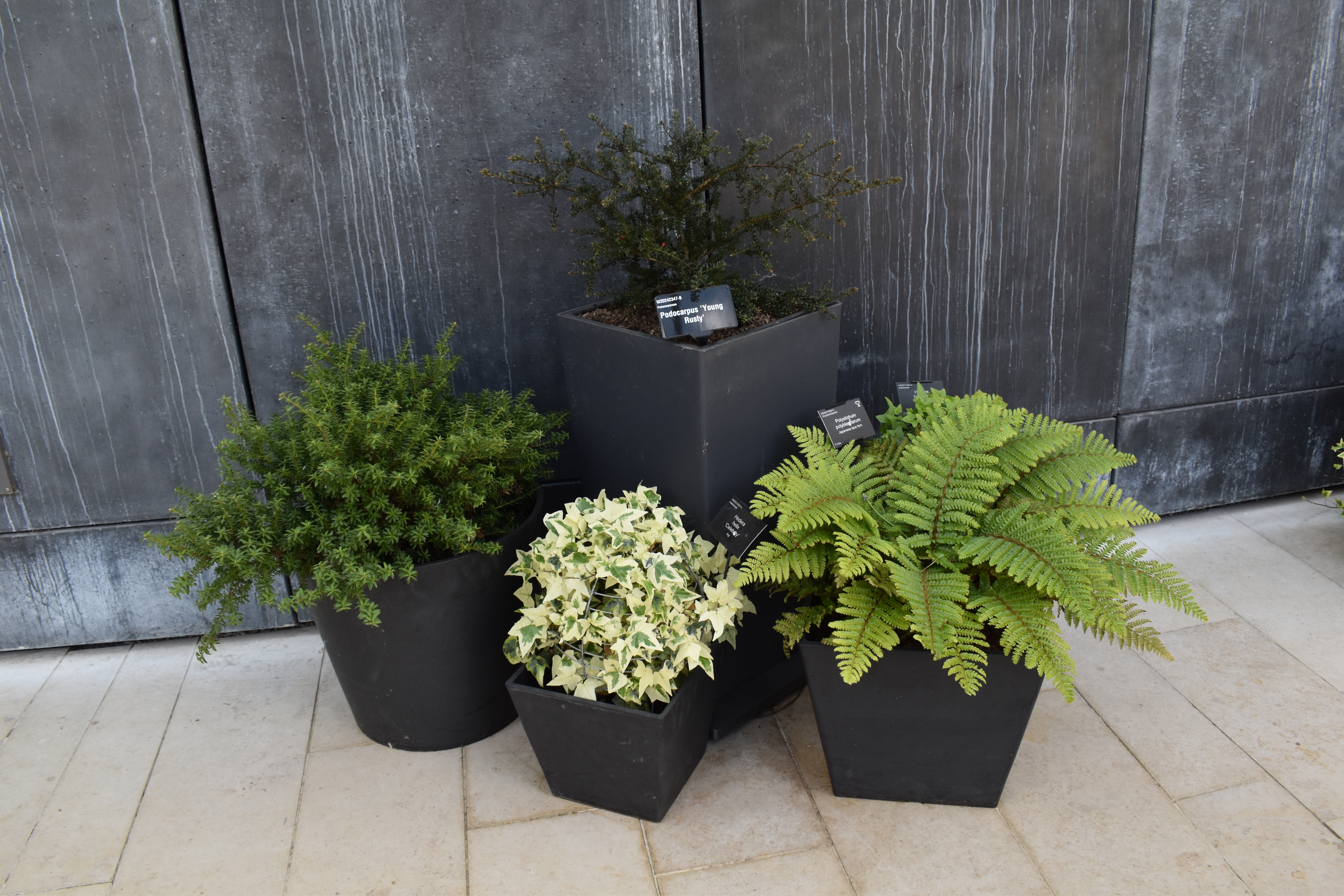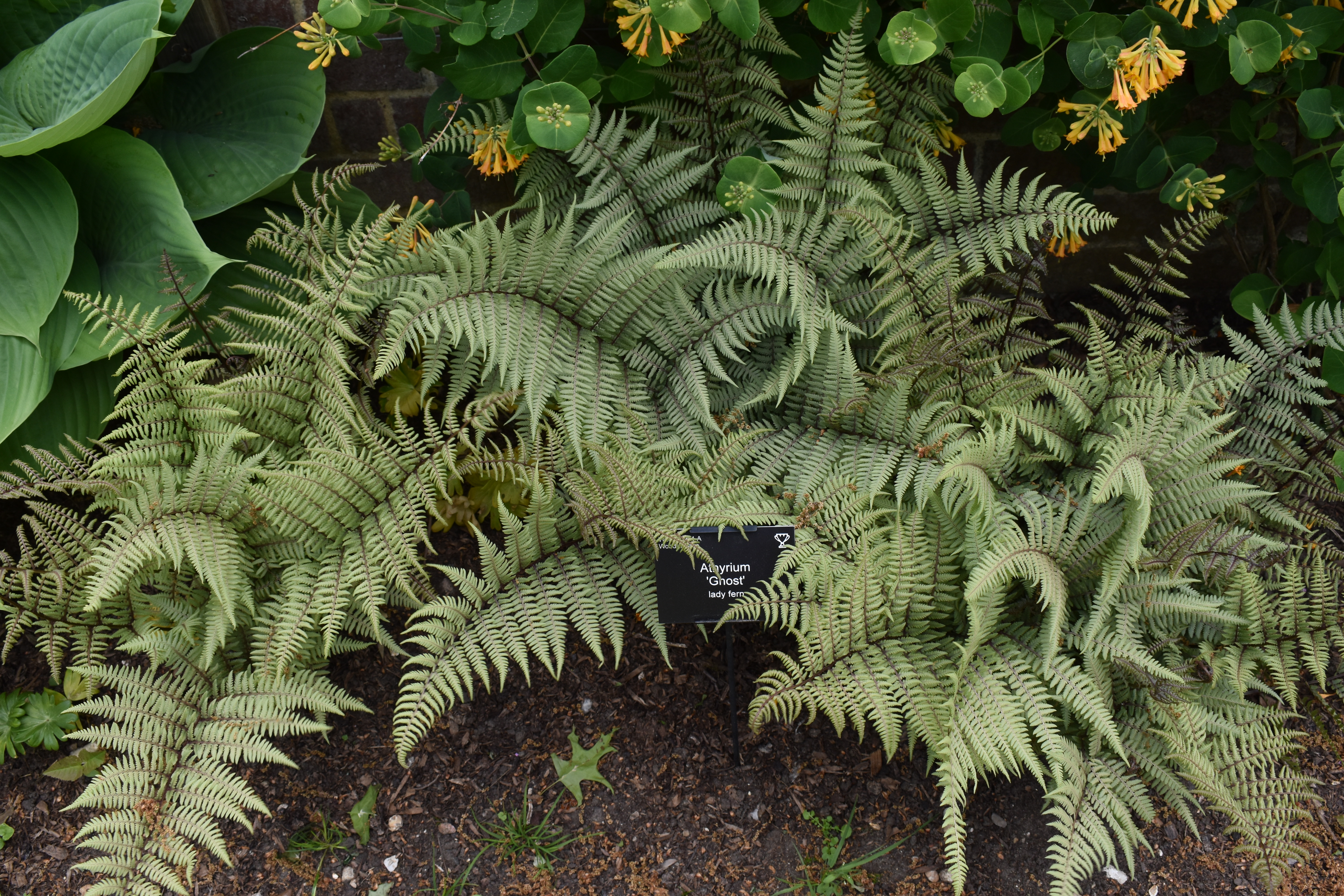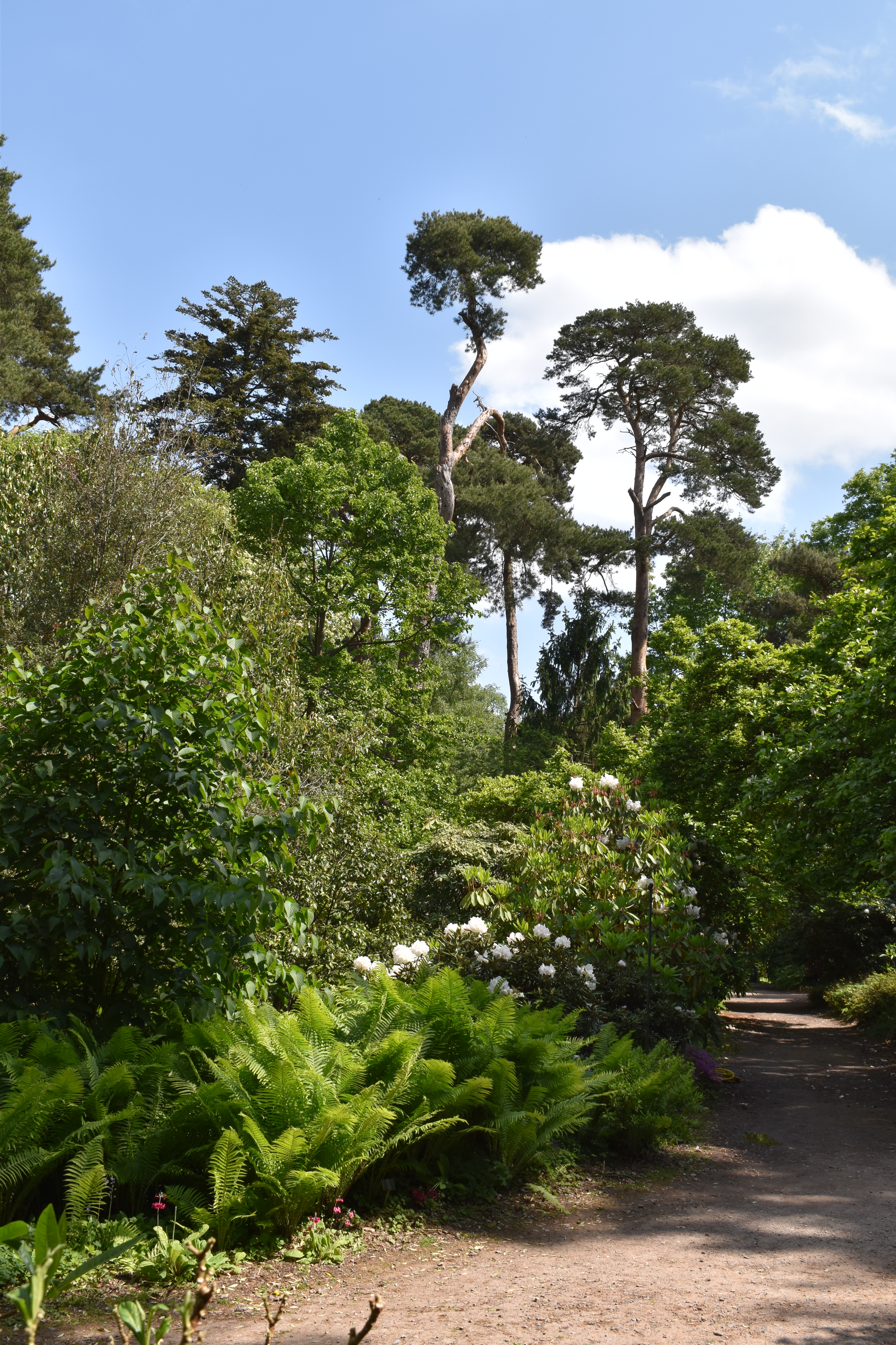 Neither of us are great fans of wisteria but the way Wisley had grown a selection up and over this long pergola was so impressive, in fact impressing almost every visitor passing by. Topiary pieces looked good alongside the arch too. But before arriving at the wisteria feature we encountered an impressive collection of low growing foliage plants including an especially impressive selction of ferns.