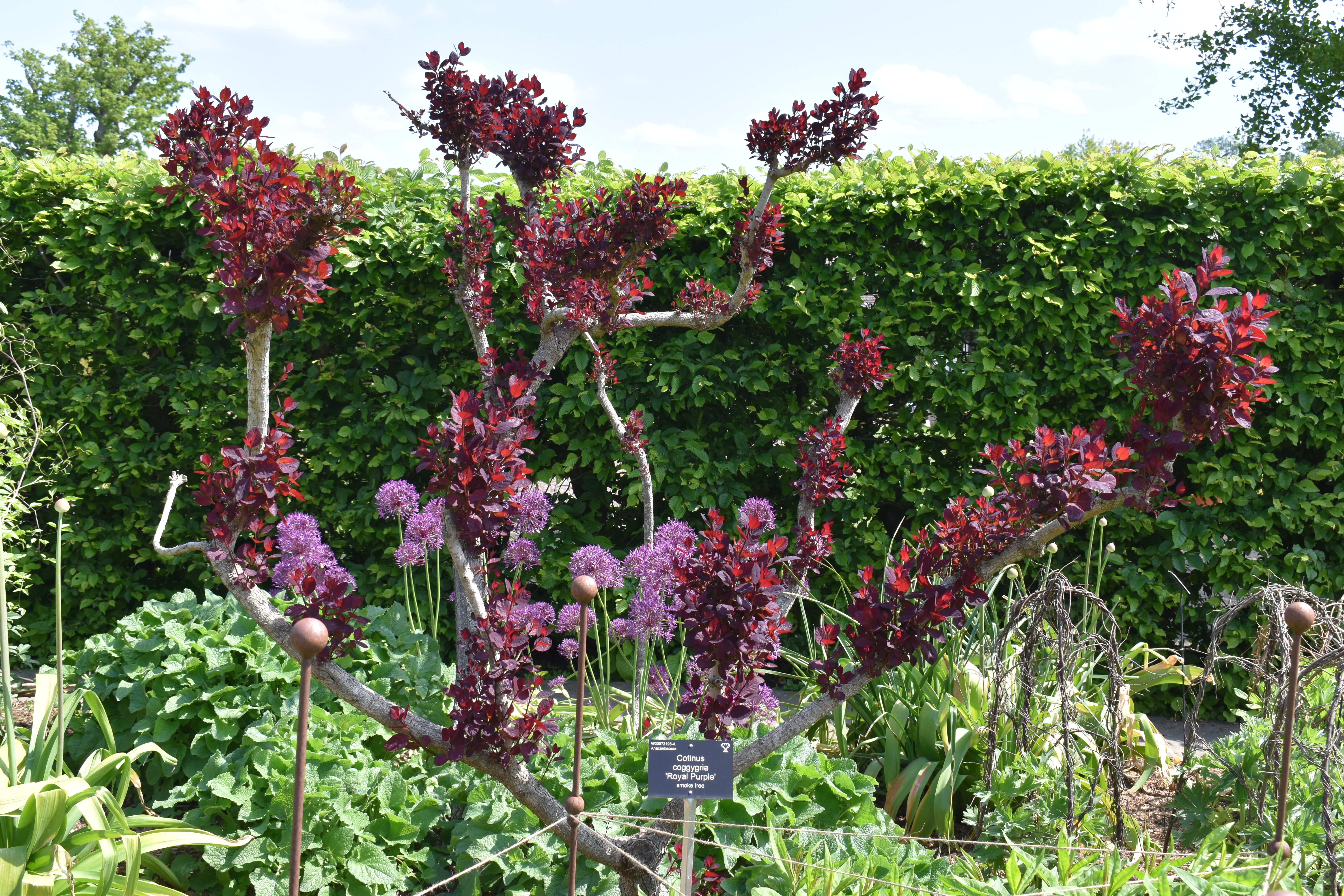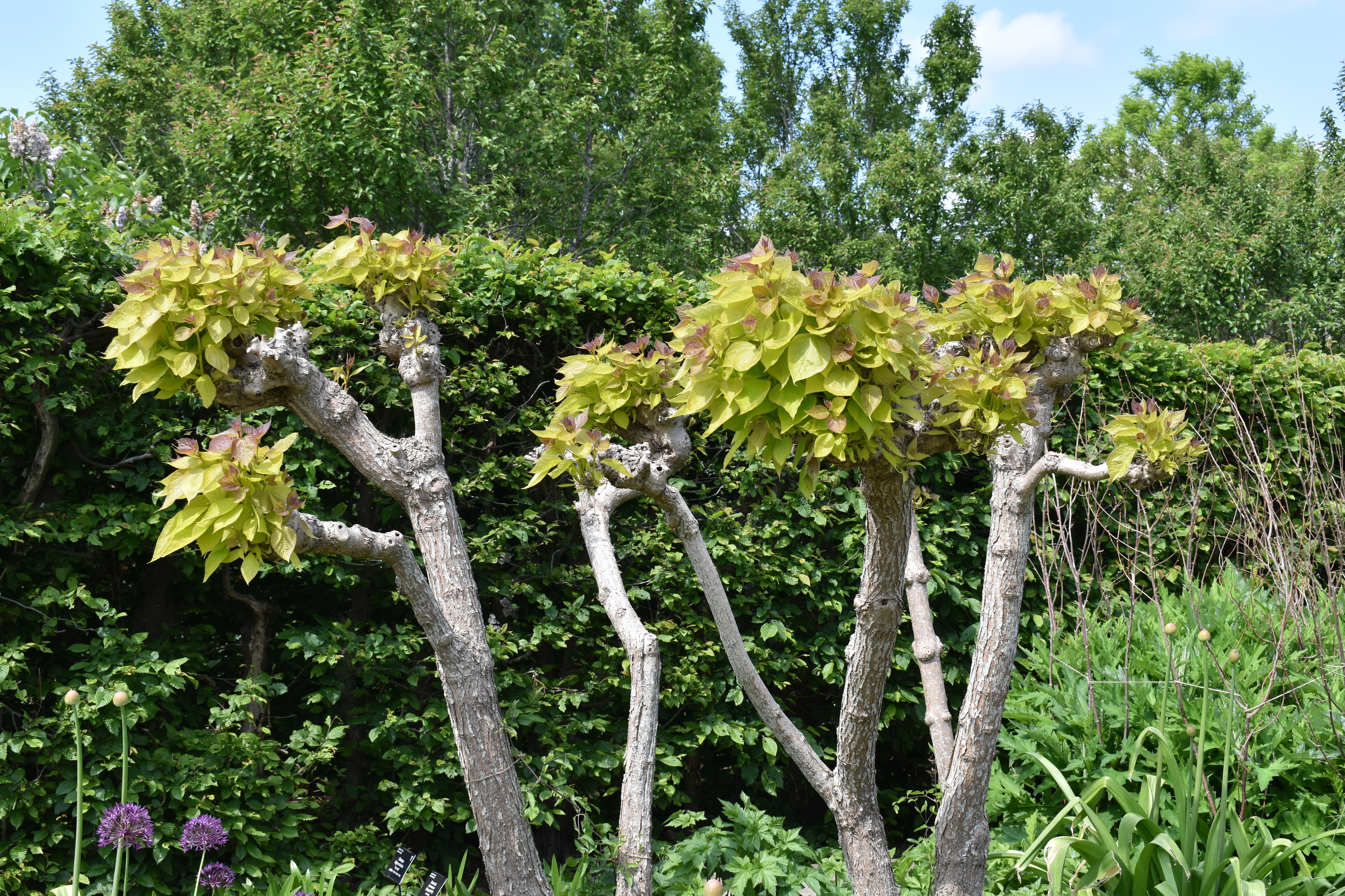 Suitably refreshed we set off around the Jellicoe Canal towards the Wisteria arch and the walled garden illustrating the many alternatives to box which really is not suitable for our gardens in the UK. Across the canal I had to photograph some wonderful cloud pruning.